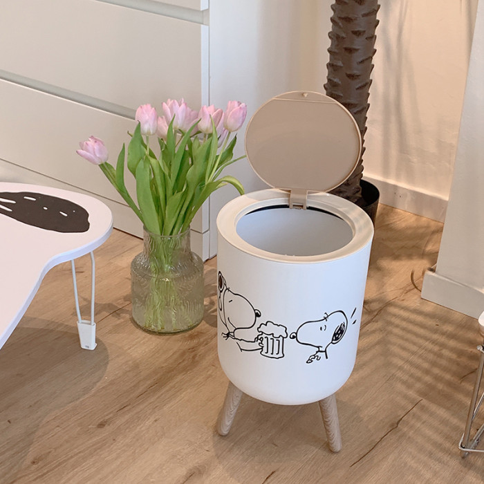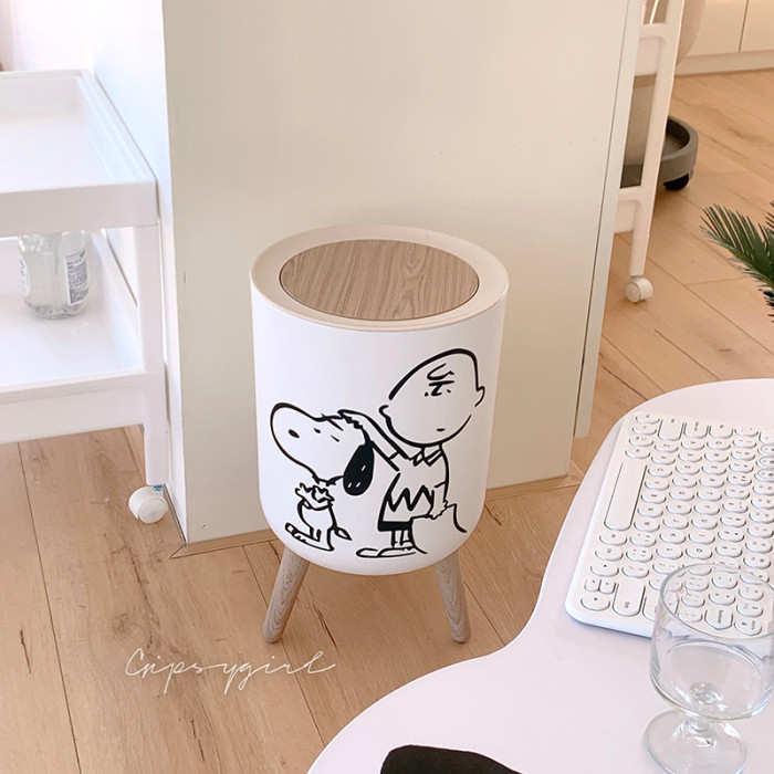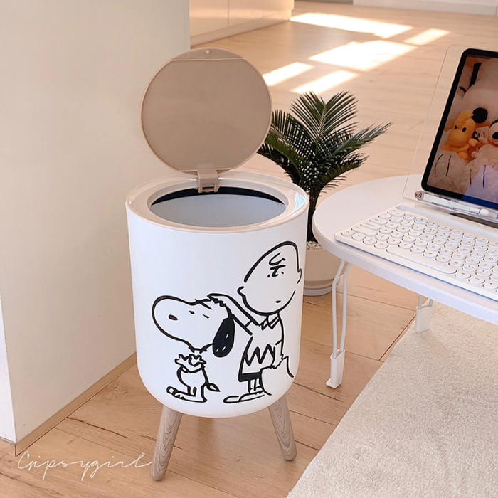 尤物少女*ins日式原木風垃圾桶彈蓋可愛家用高腳落地垃圾筒廢紙簍