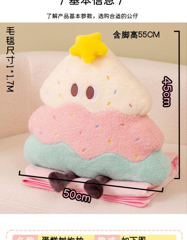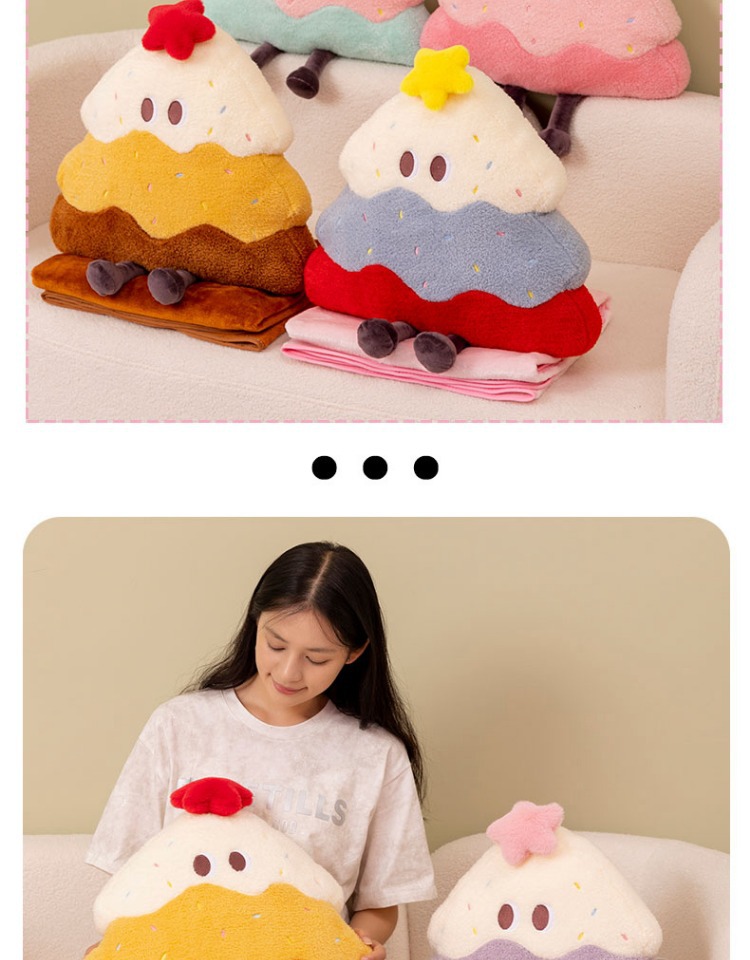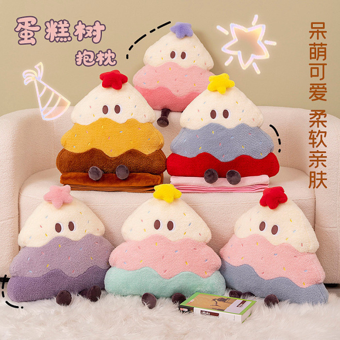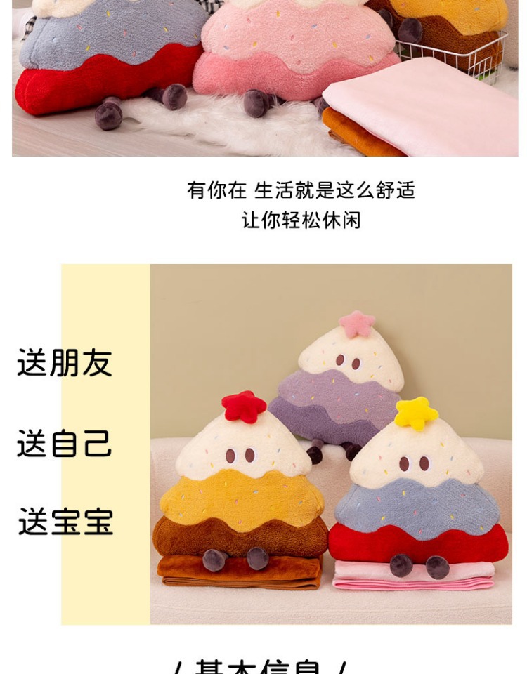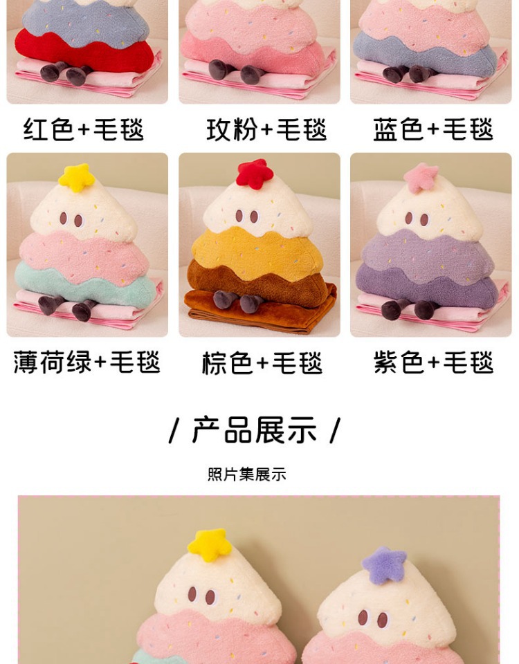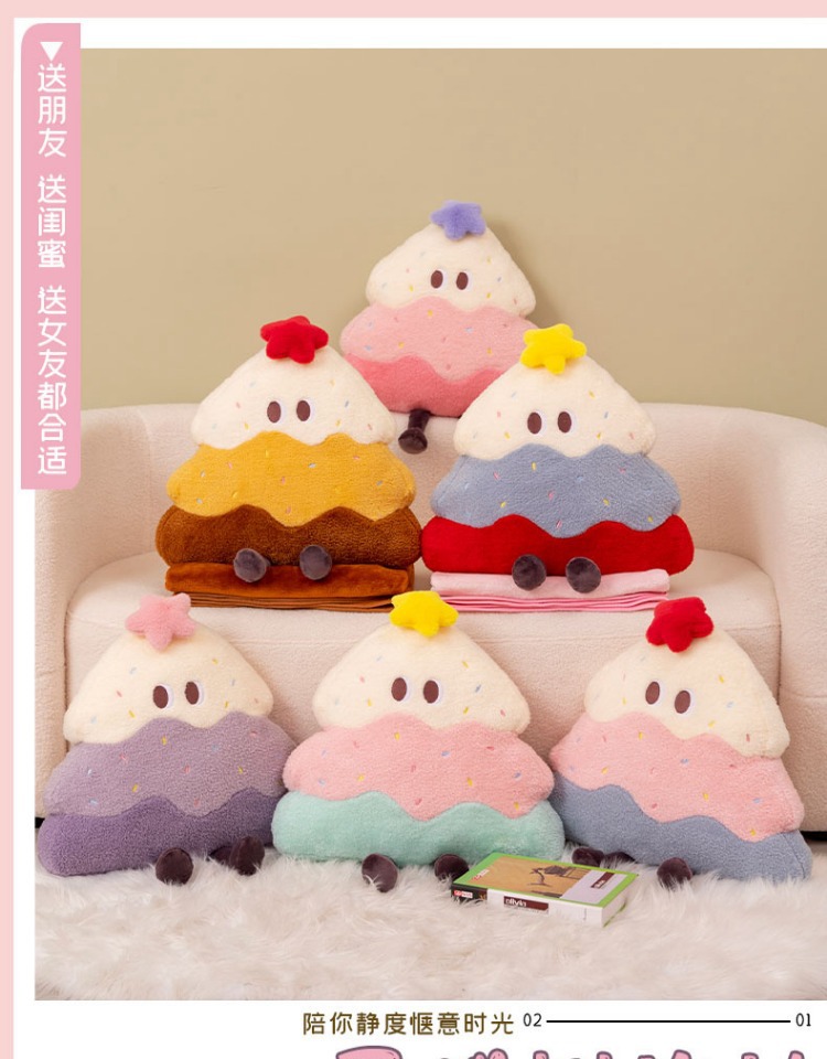 聖誕蛋糕樹抱枕二合一空調毯空調被辦公室靠墊車用午睡毯子靠背