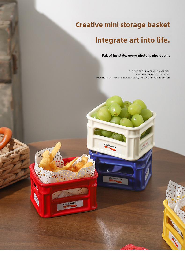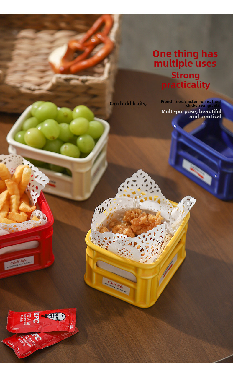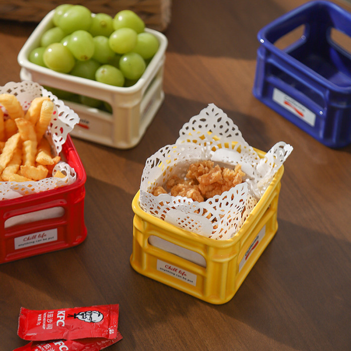 創意陶瓷高顔值零食碗客廳家用水果碗咖啡廳小吃籃爆米花薯條碗