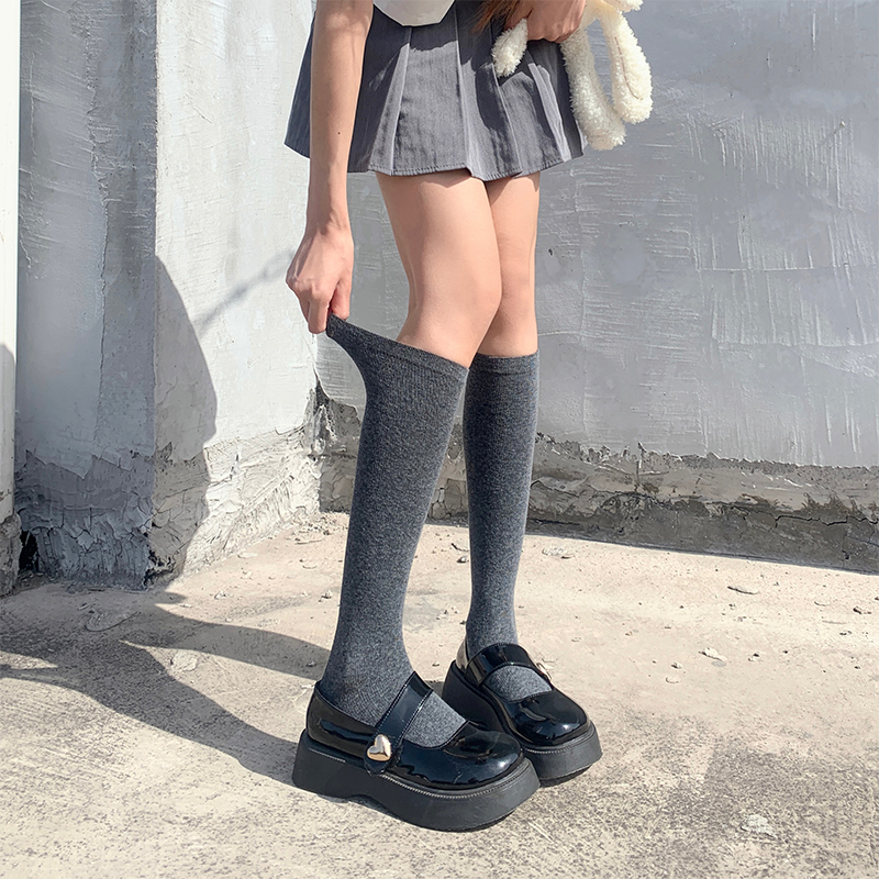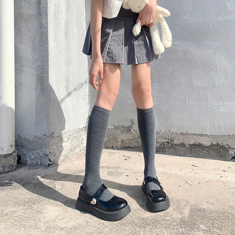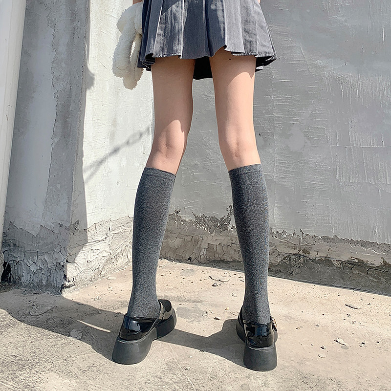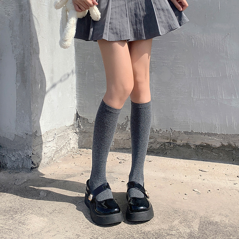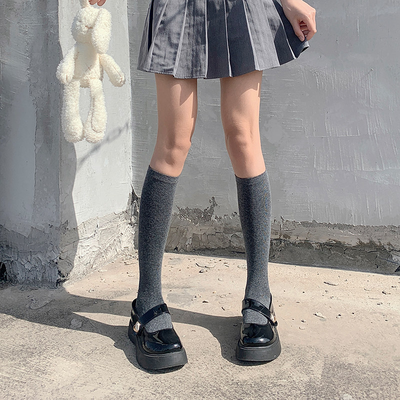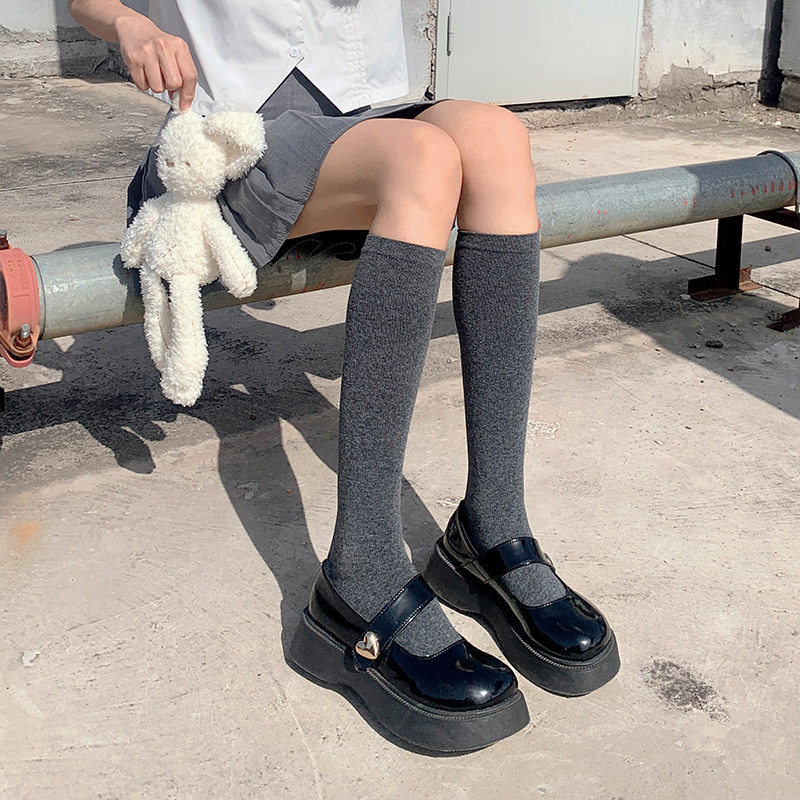 夜間教習室jk襪子女秋款日系灰色中筒小腿襪學院風長筒顯瘦壓力襪