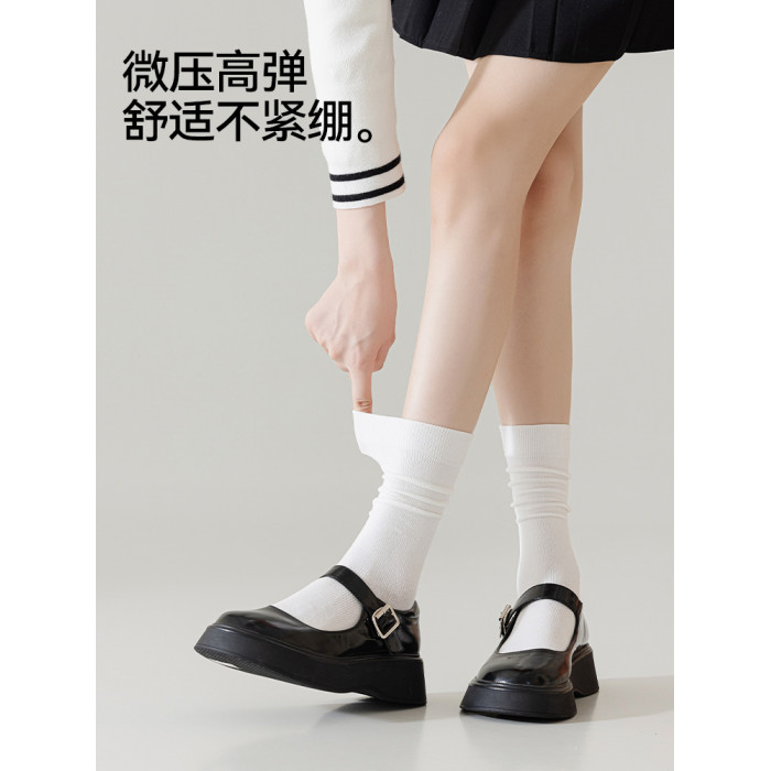 貓人新款女士小腿襪過膝中筒黑白學生襪女生JK小皮鞋穿搭