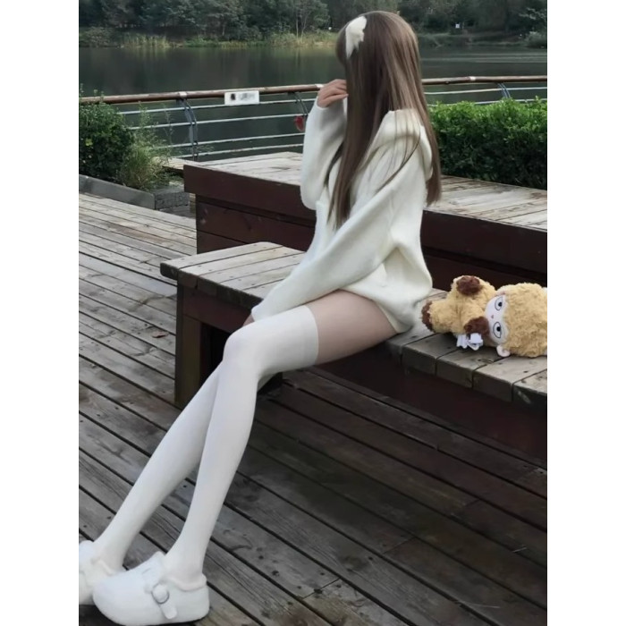 FLGG【日系】襪子白絲女春秋棉質矽膠防滑白色JK襪過膝長筒壓力襪
