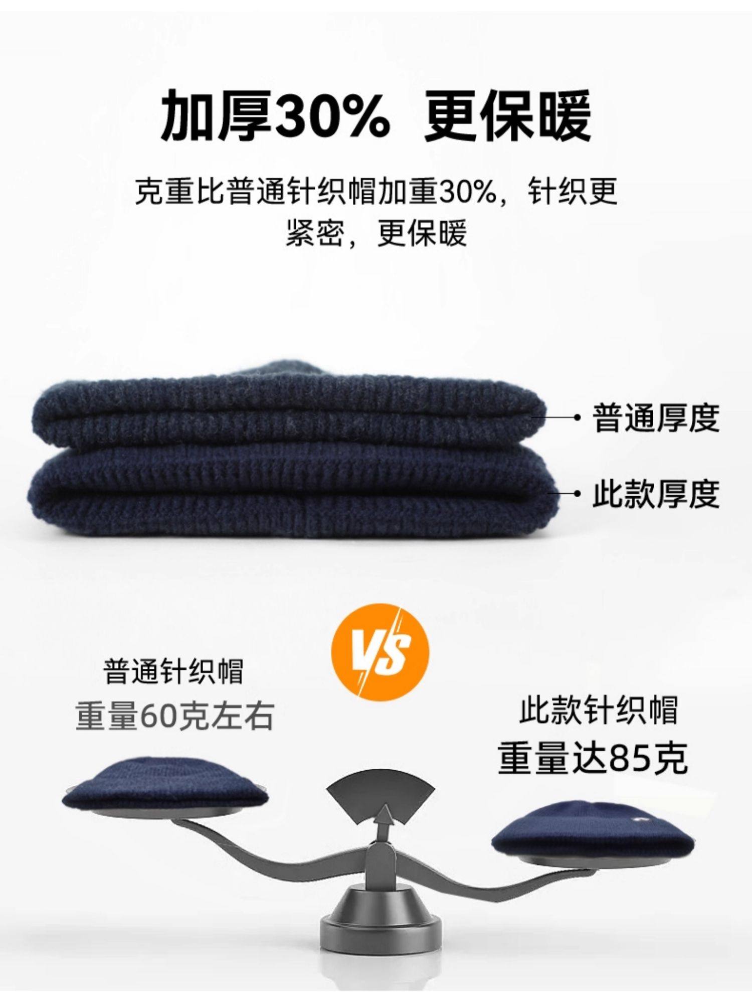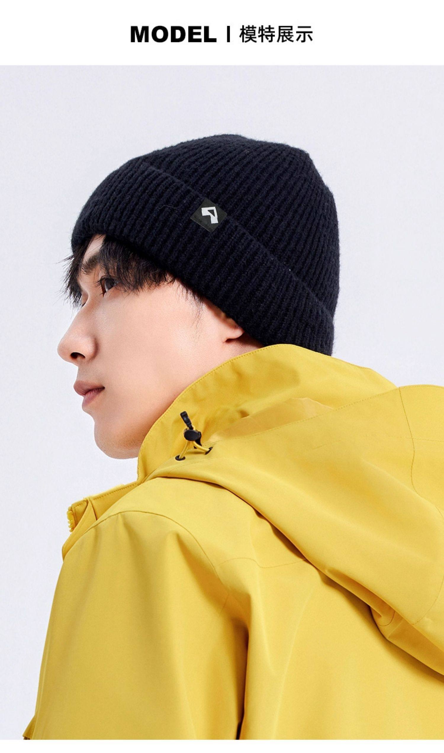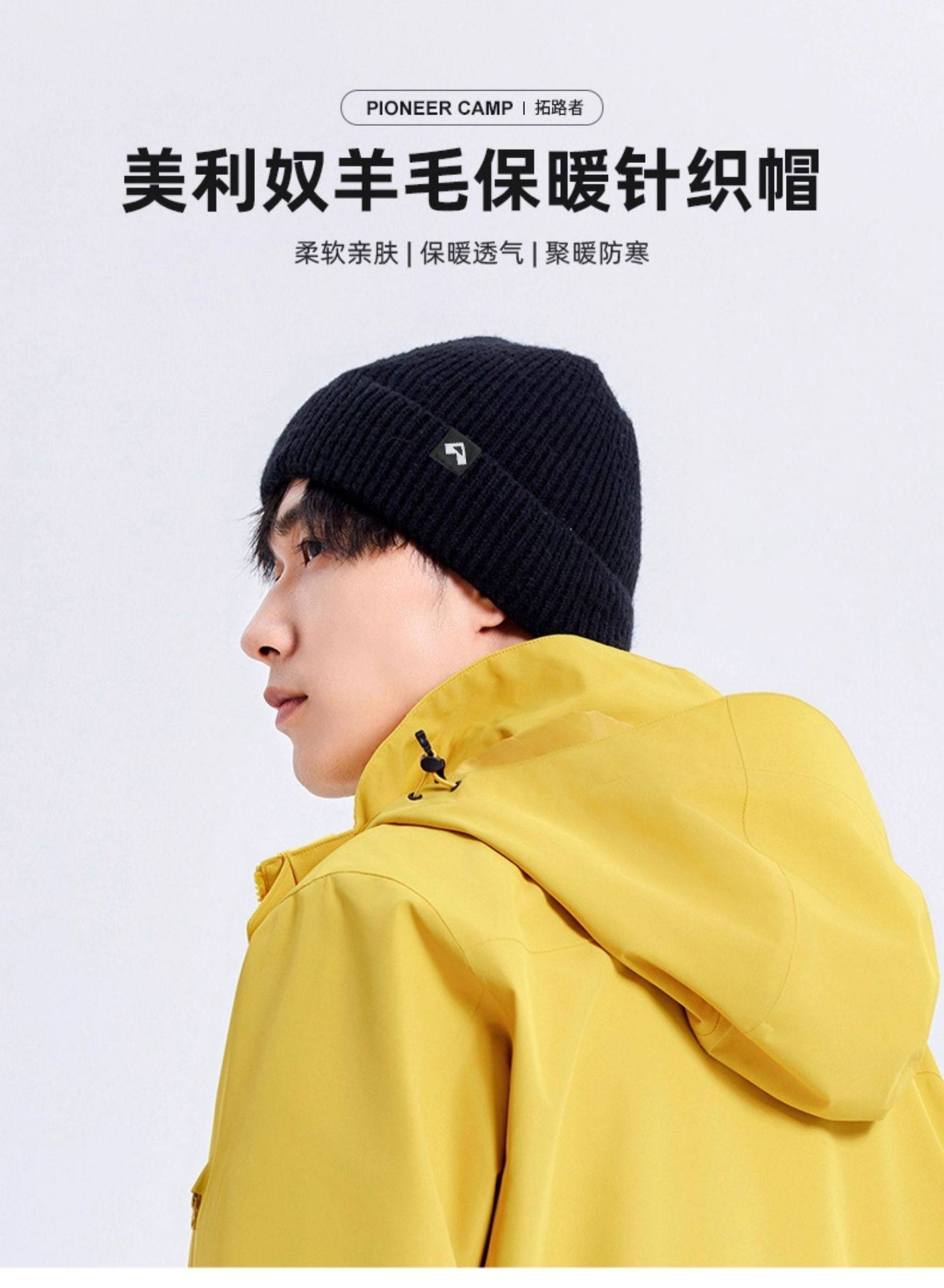 拓路者美利奴羊毛帽男女冬季帽子加厚黑色冷帽保暖護耳針織毛線帽