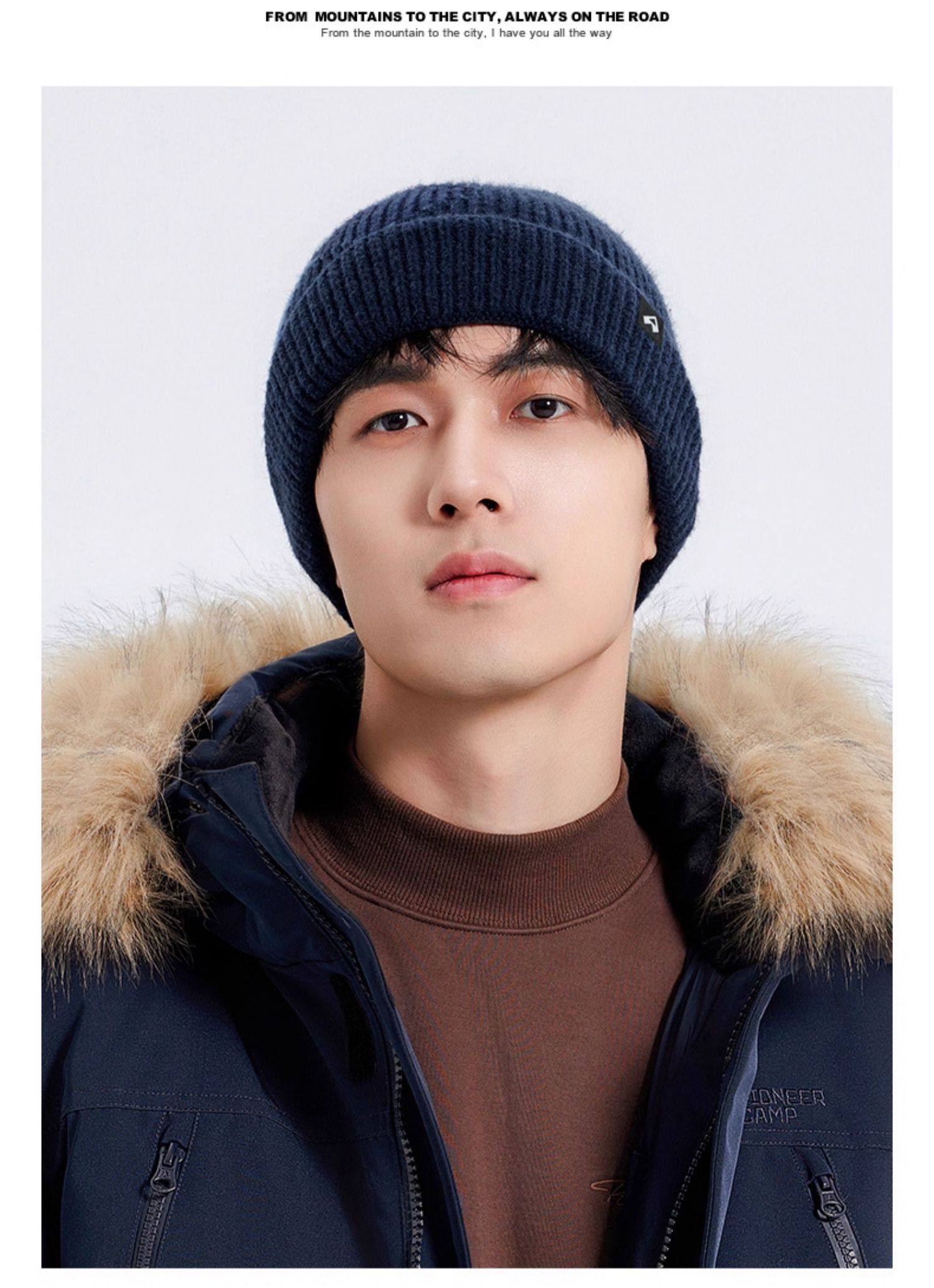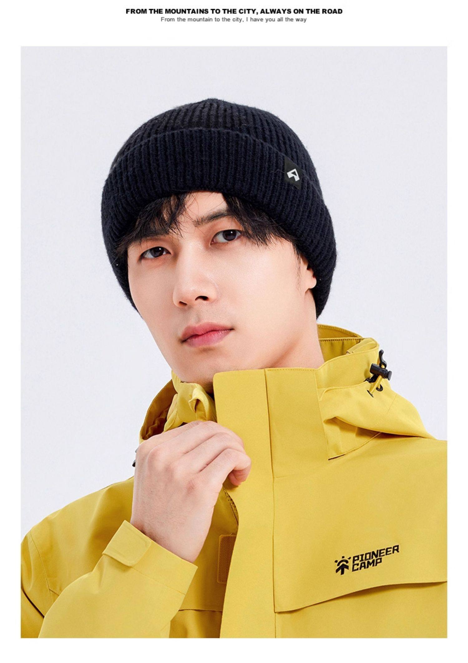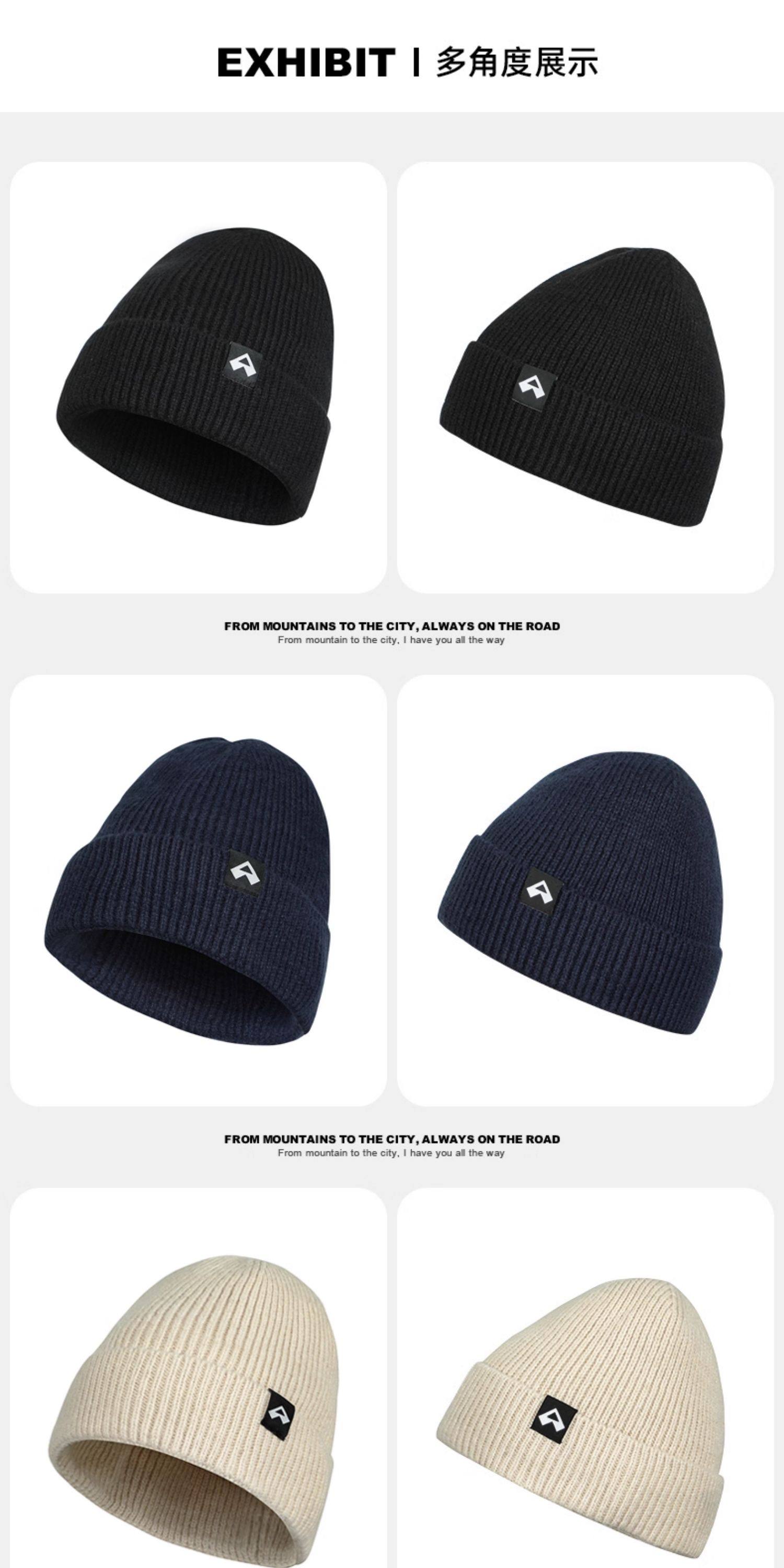 拓路者美利奴羊毛帽男女冬季帽子加厚黑色冷帽保暖護耳針織毛線帽