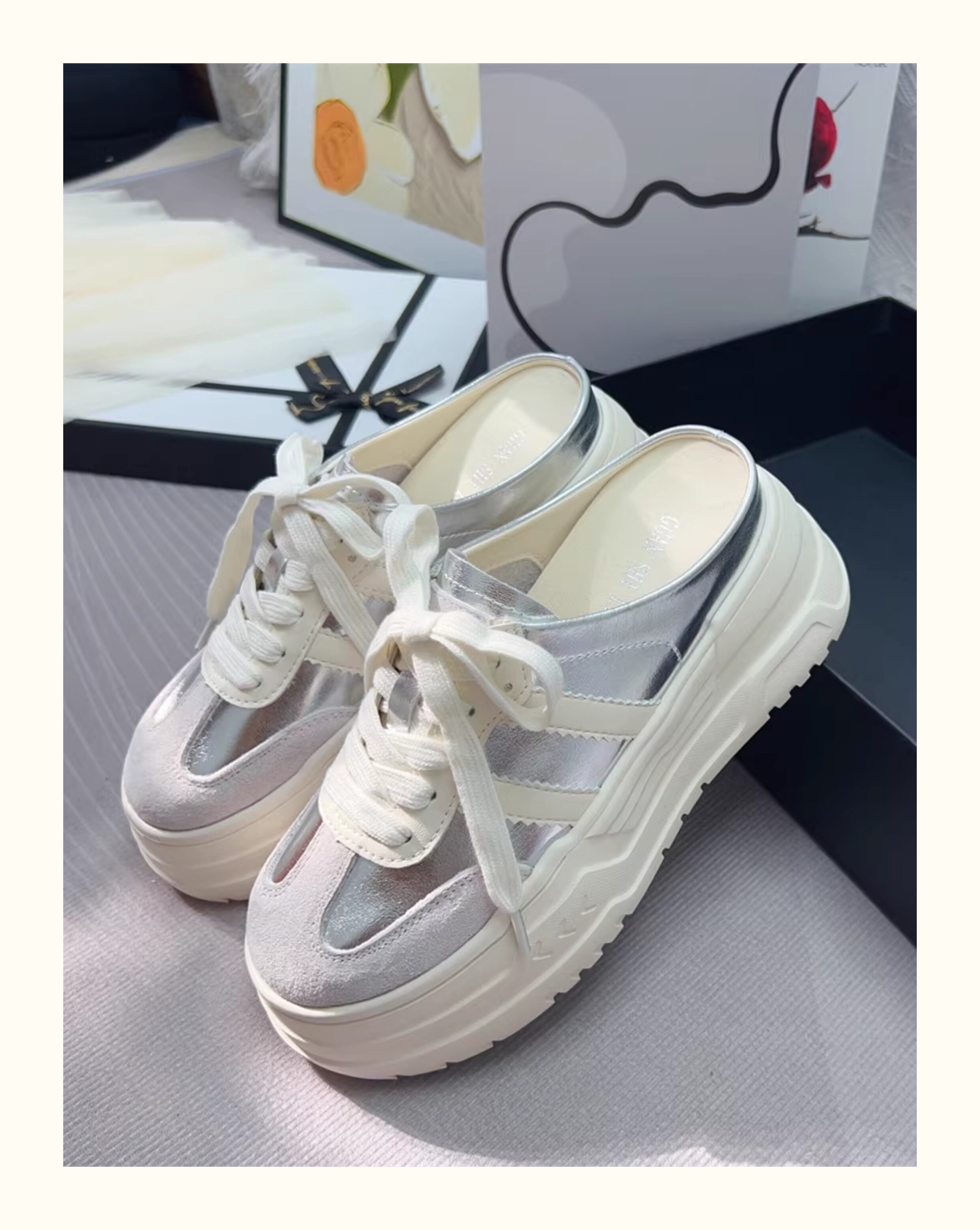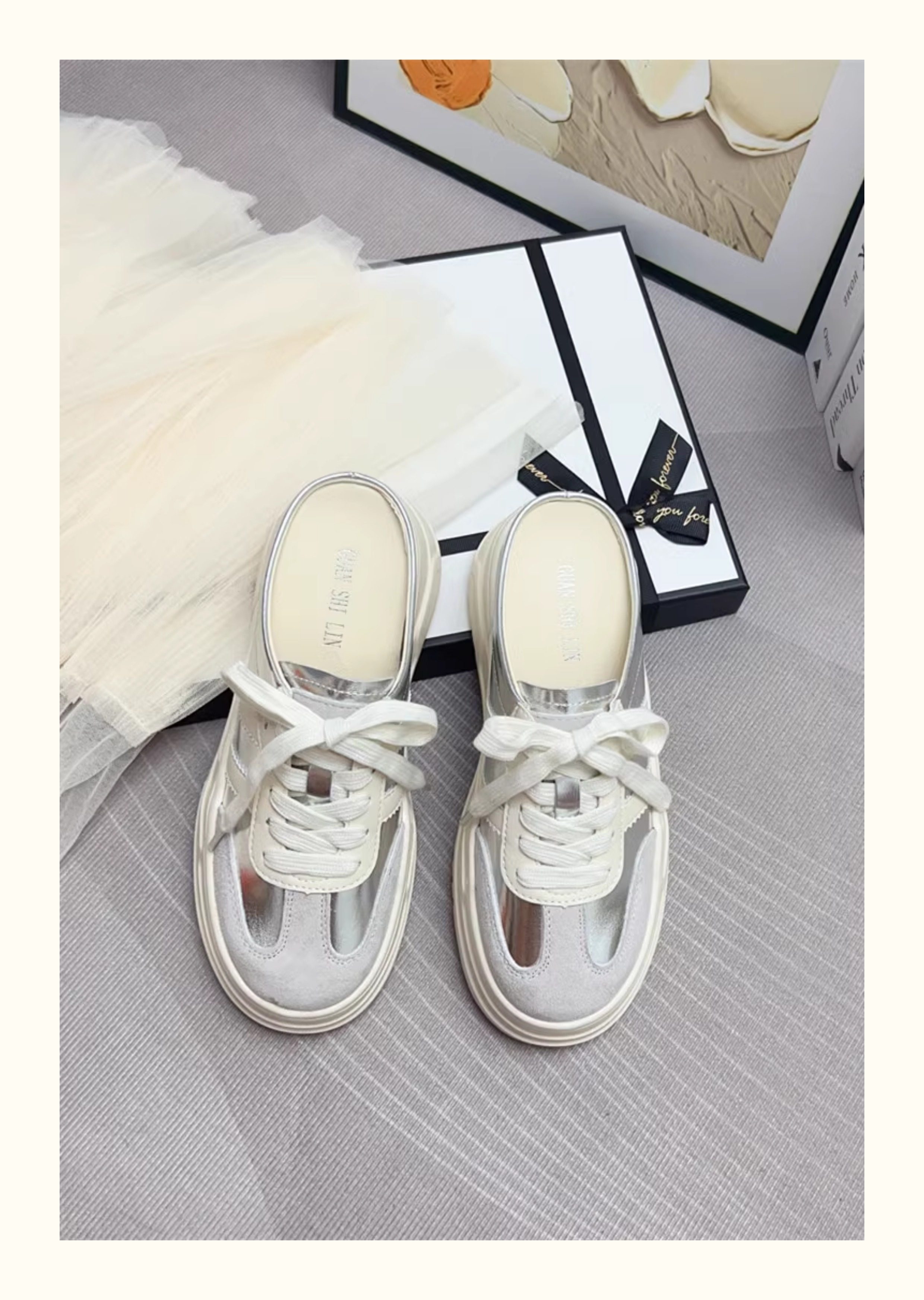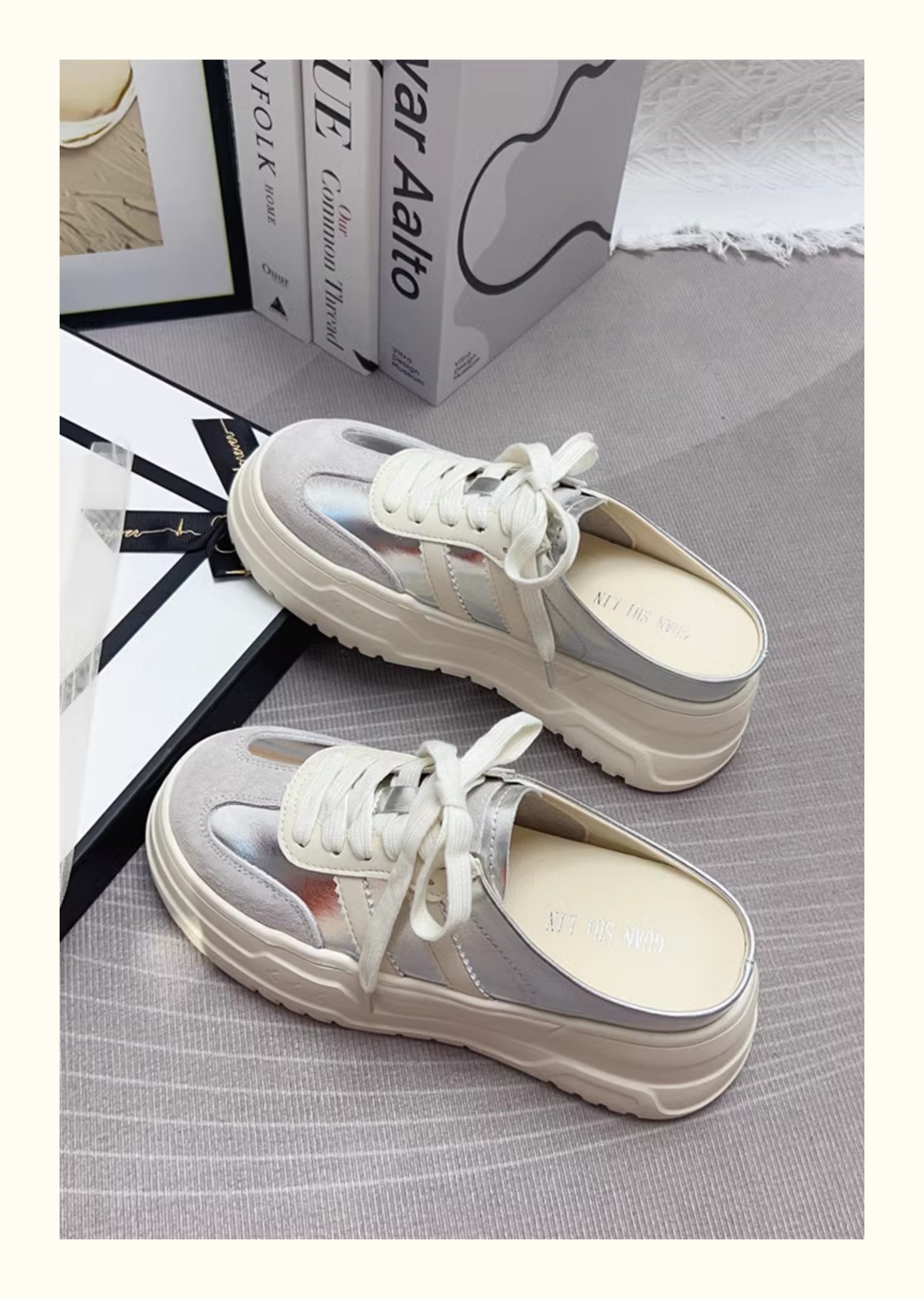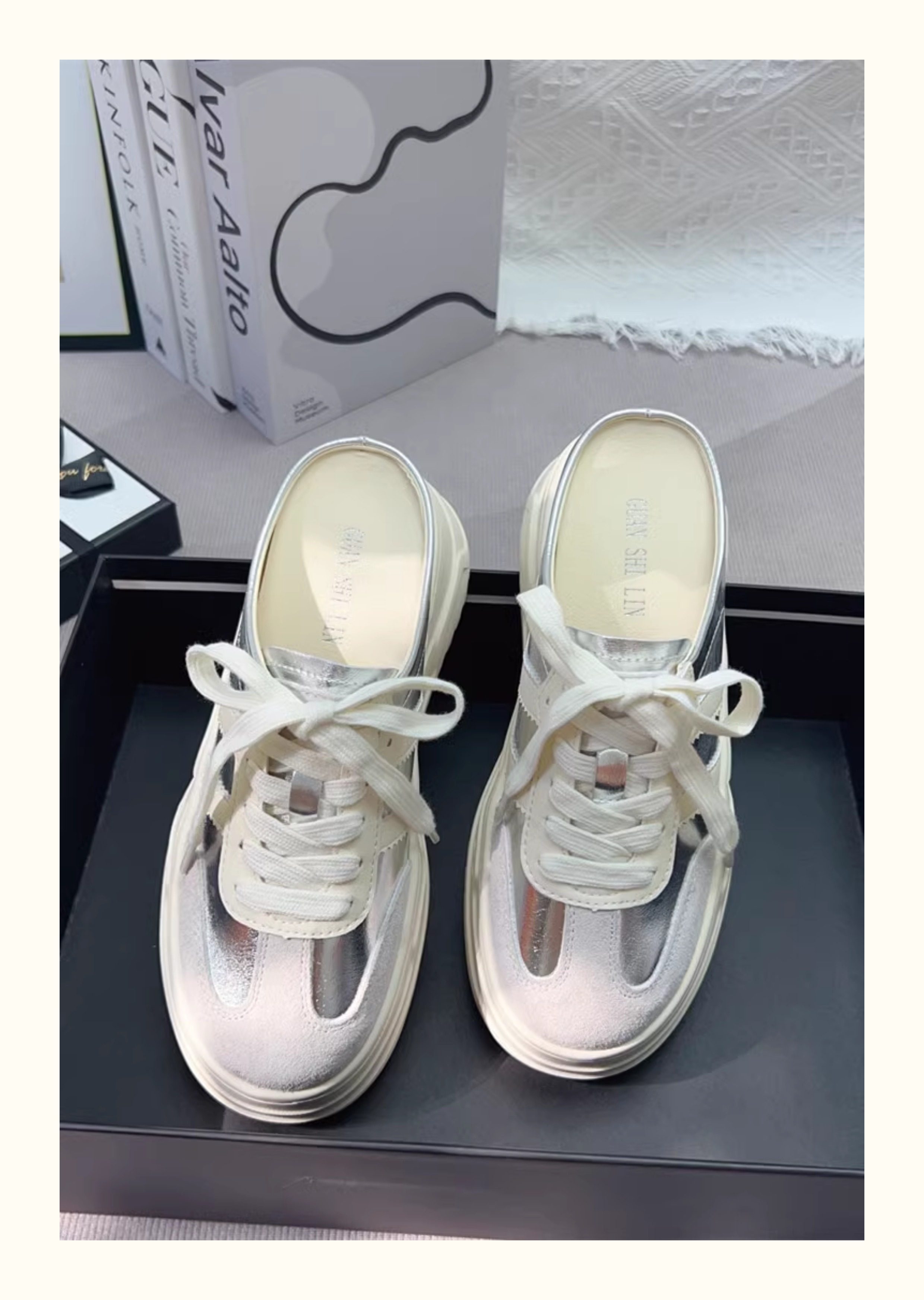 小個子內增高包頭半拖鞋女厚底休閒德訓鞋無後跟銀色穆勒鞋ins潮