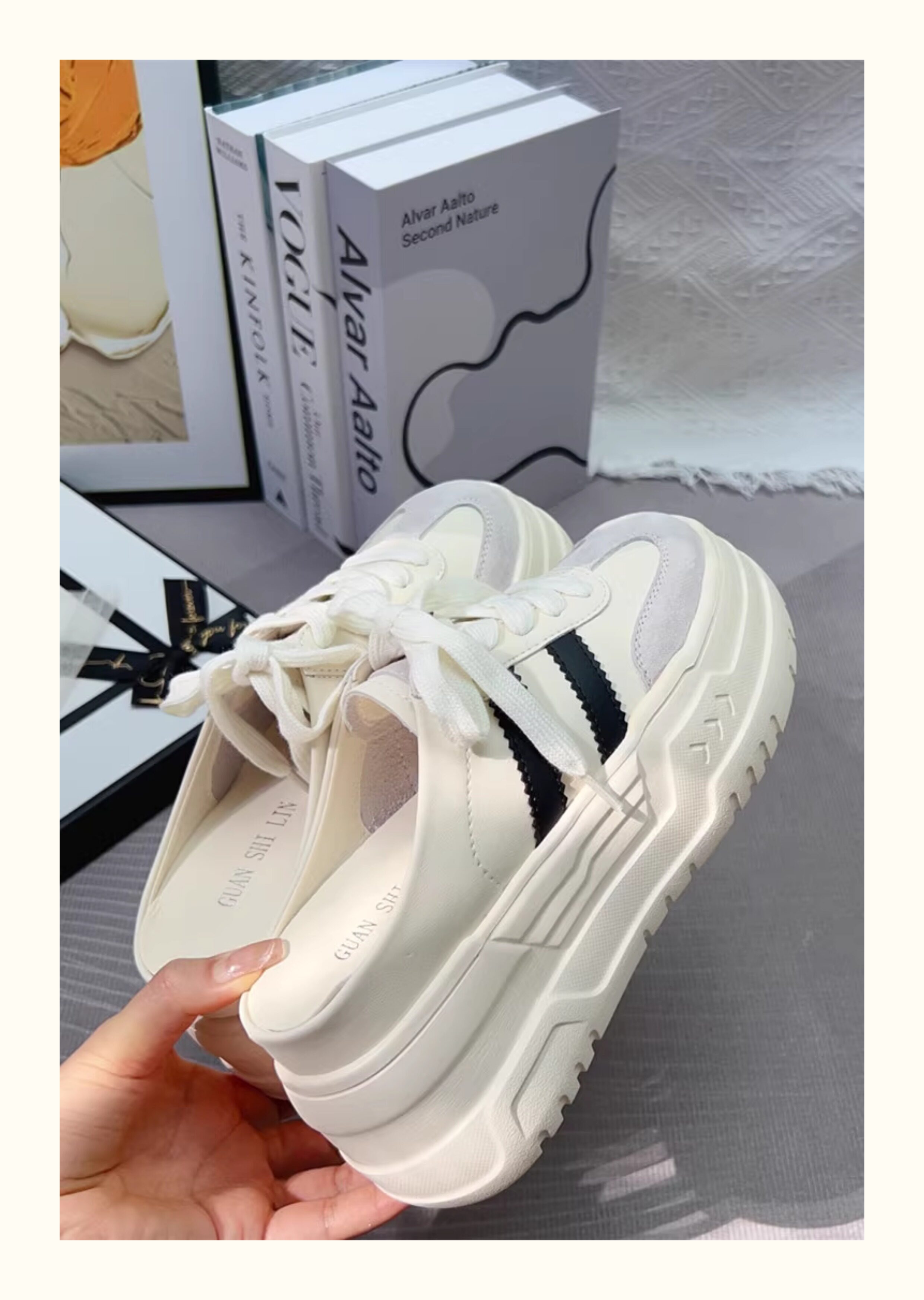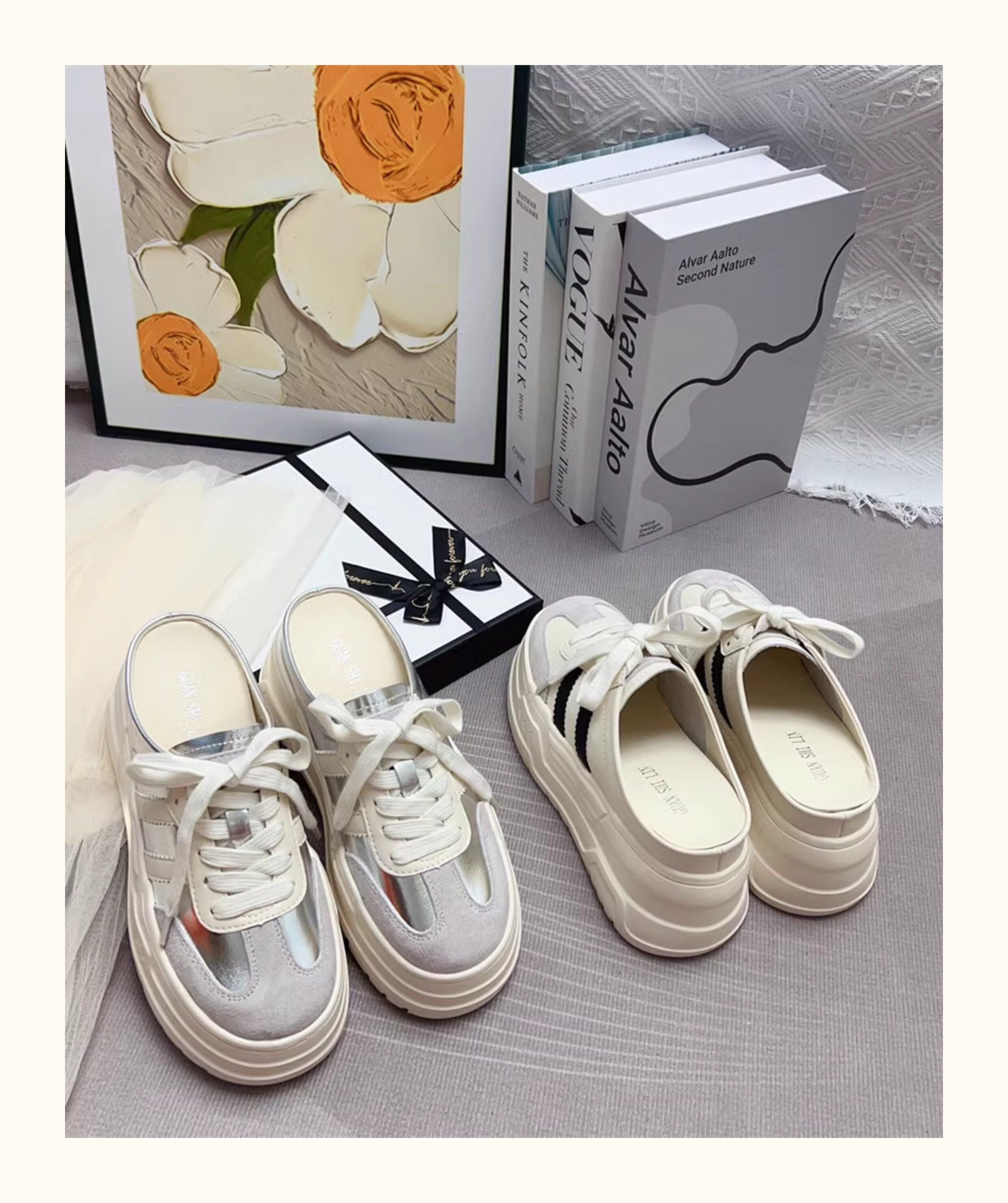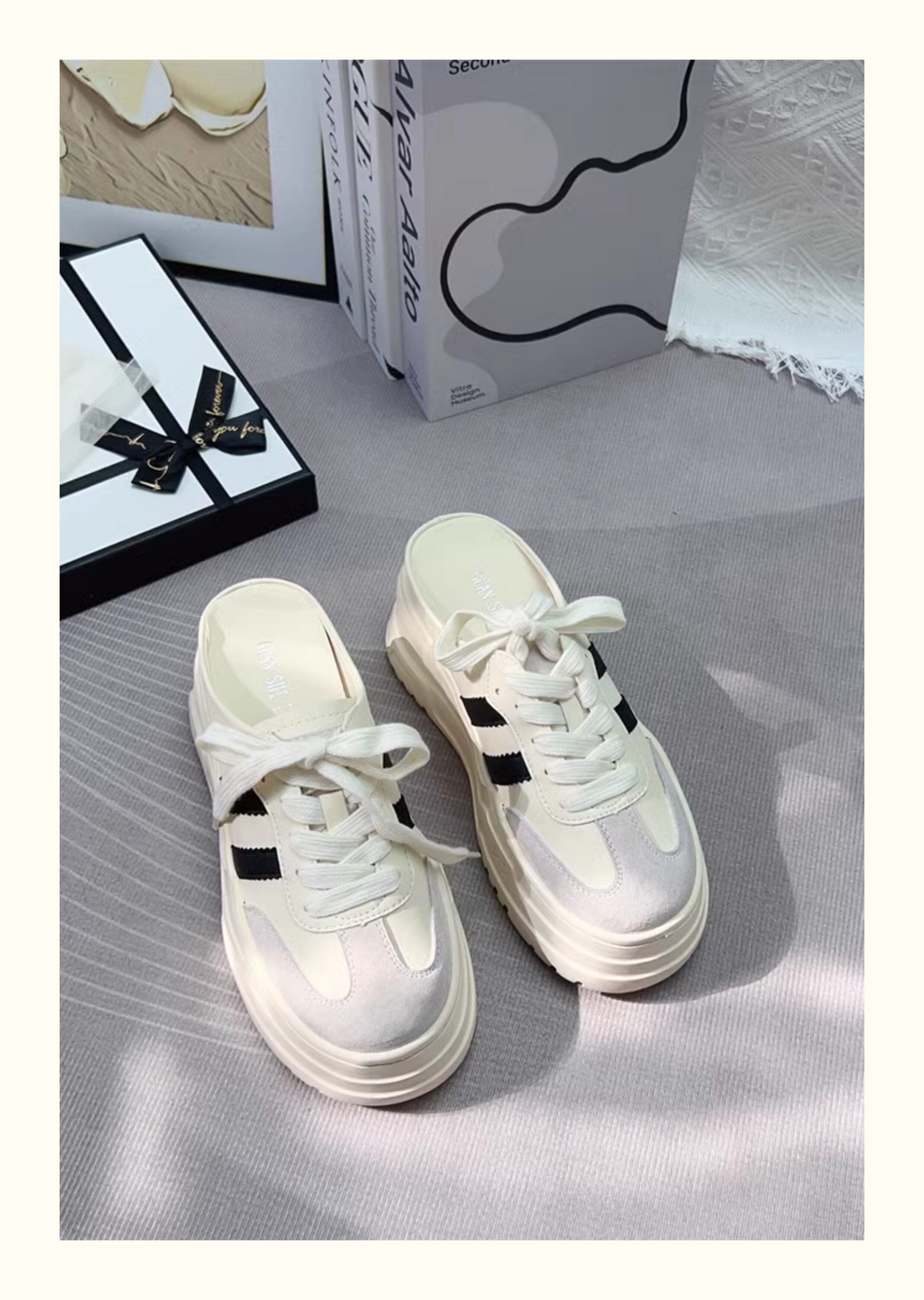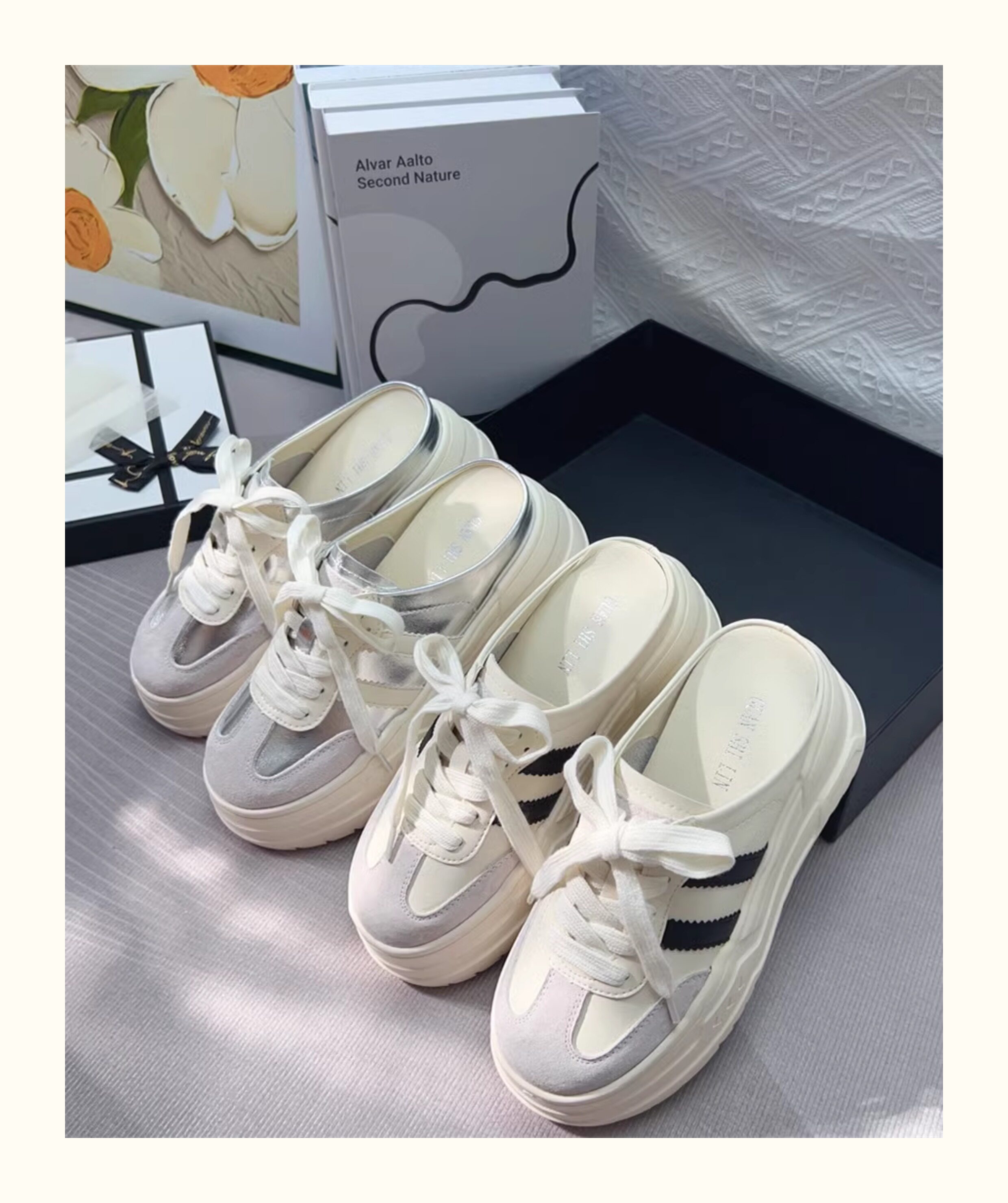 小個子內增高包頭半拖鞋女厚底休閒德訓鞋無後跟銀色穆勒鞋ins潮