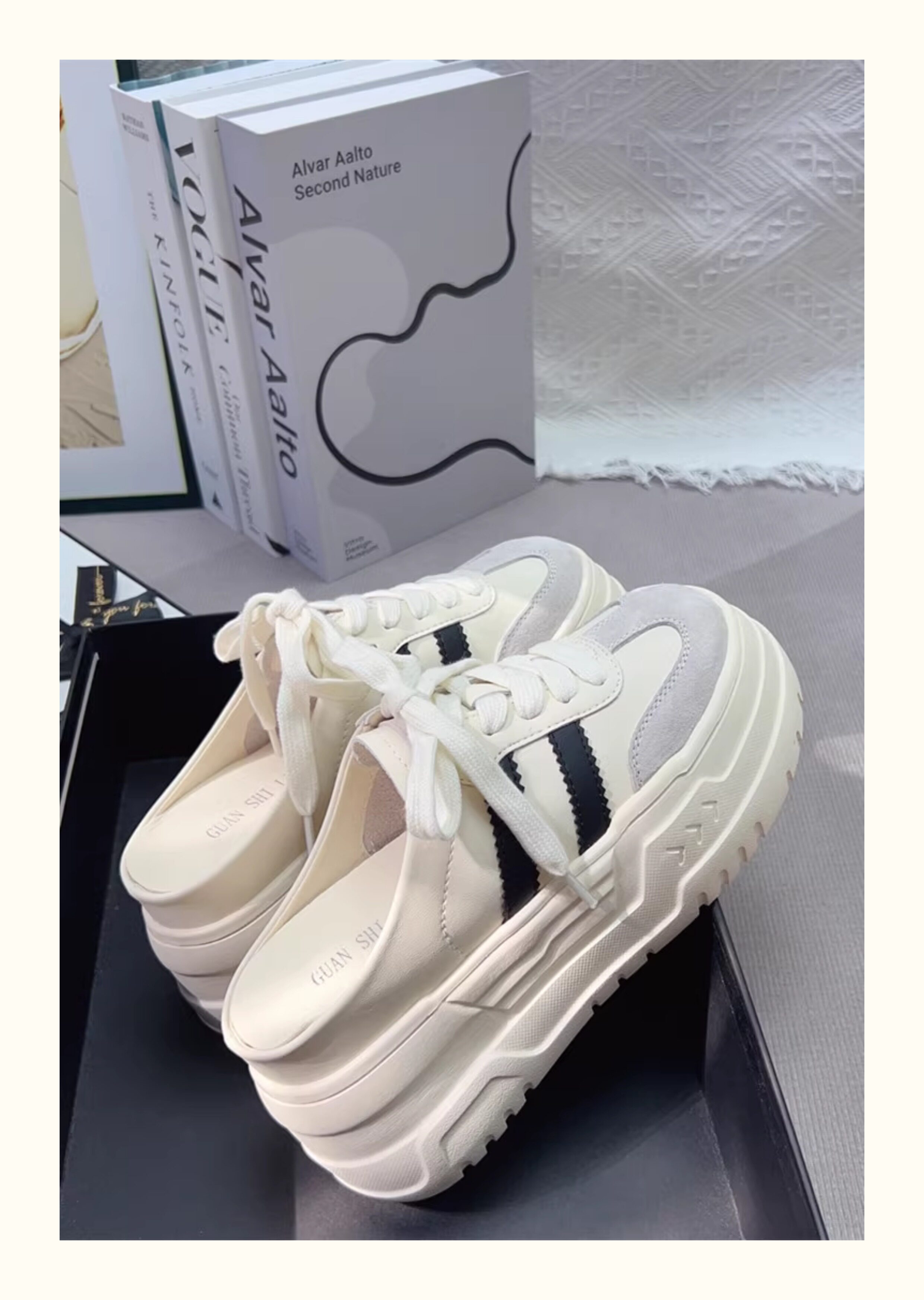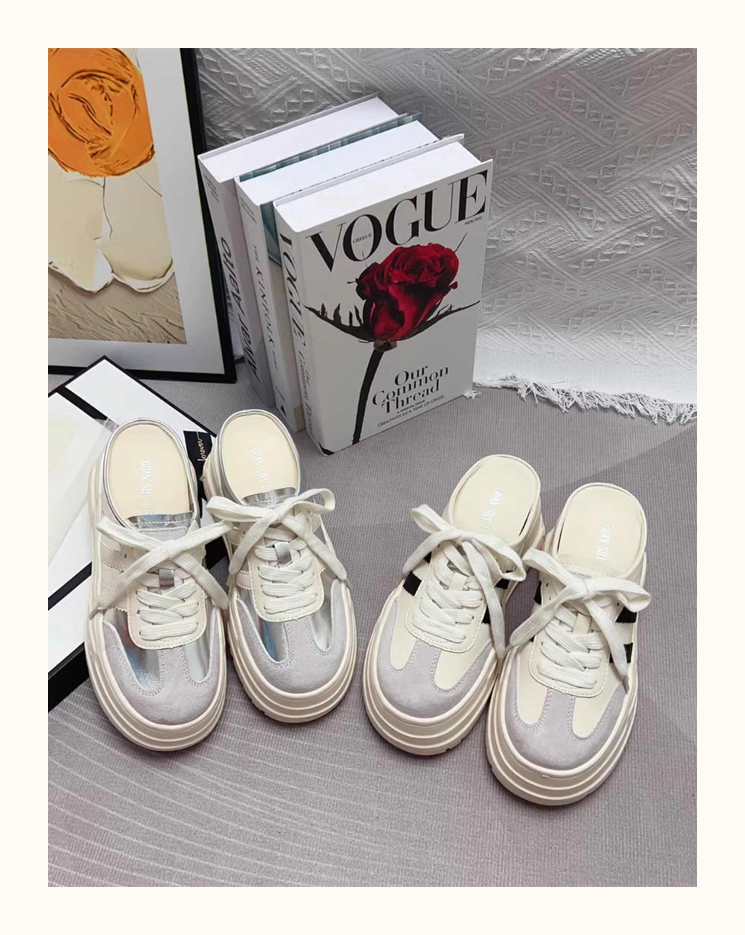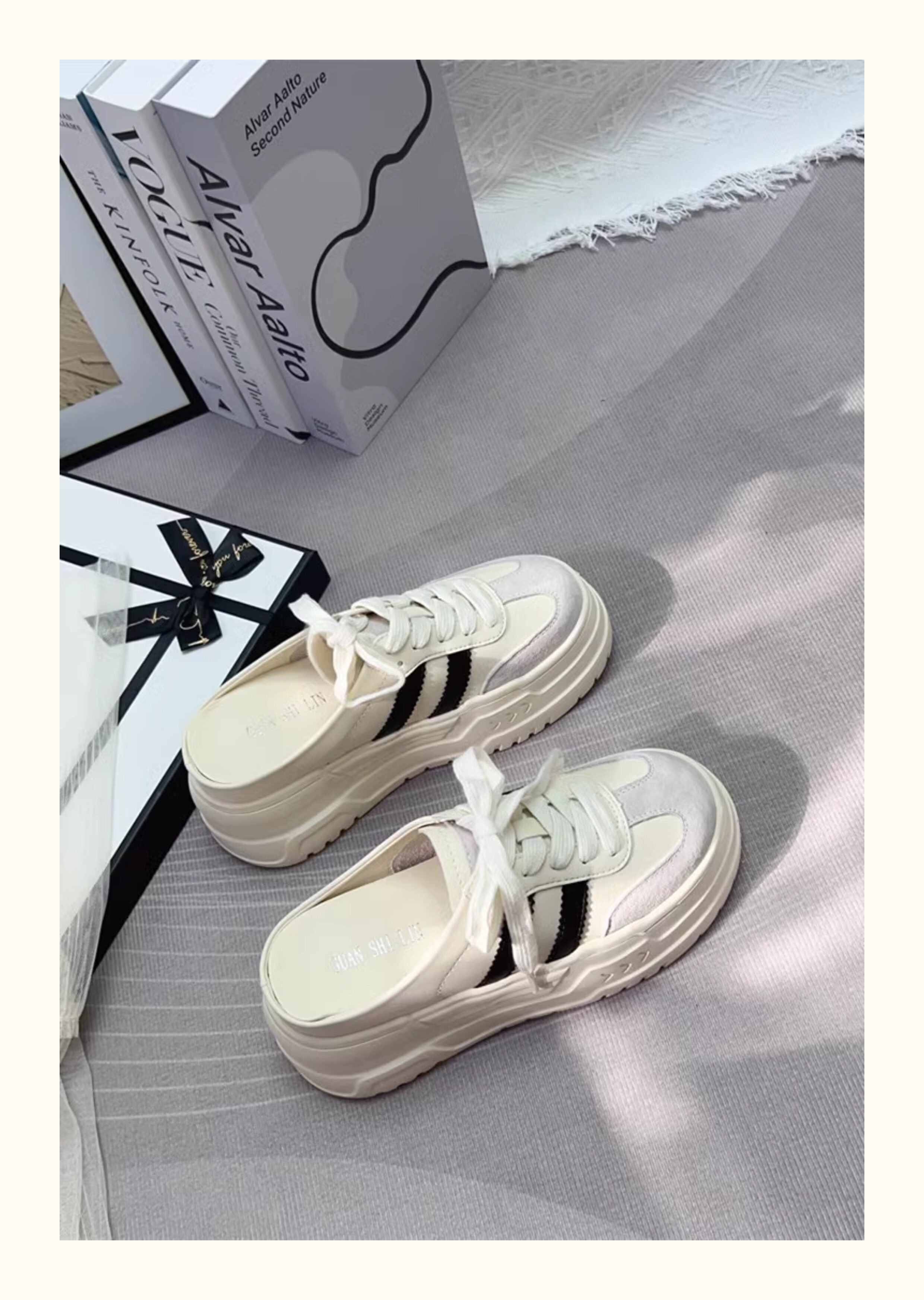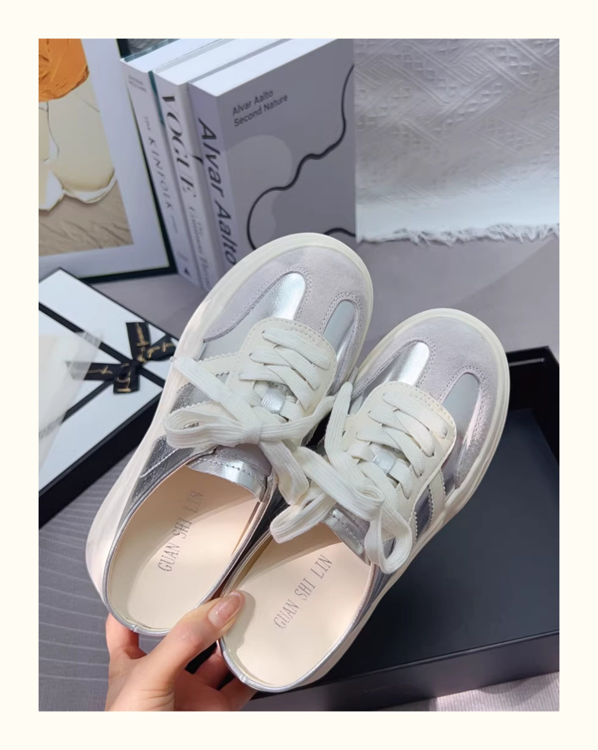 小個子內增高包頭半拖鞋女厚底休閒德訓鞋無後跟銀色穆勒鞋ins潮