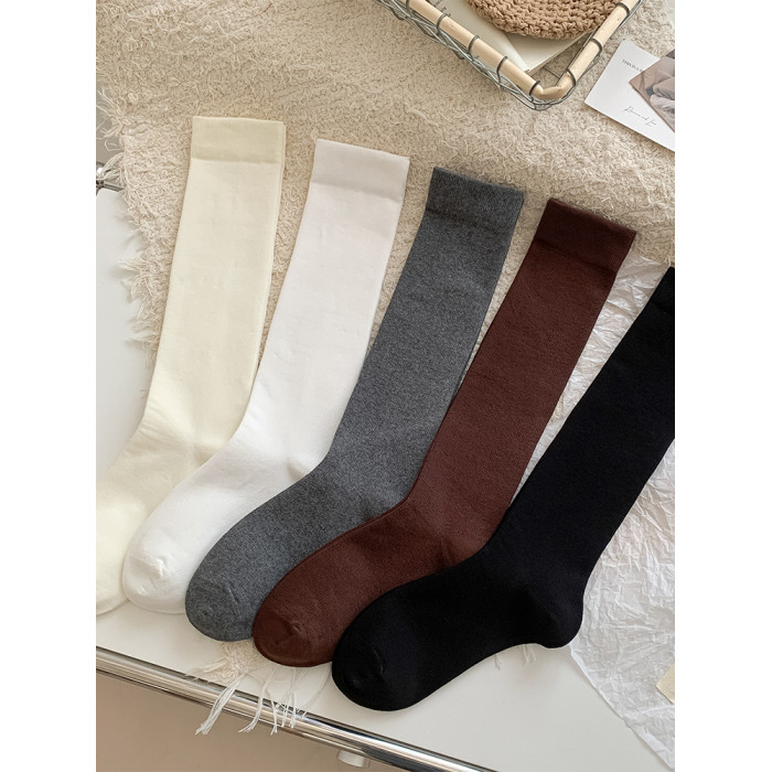 咖啡色小腿襪壓力襪顯瘦高筒及膝襪棉襪襪子女長筒襪秋冬款純色棉