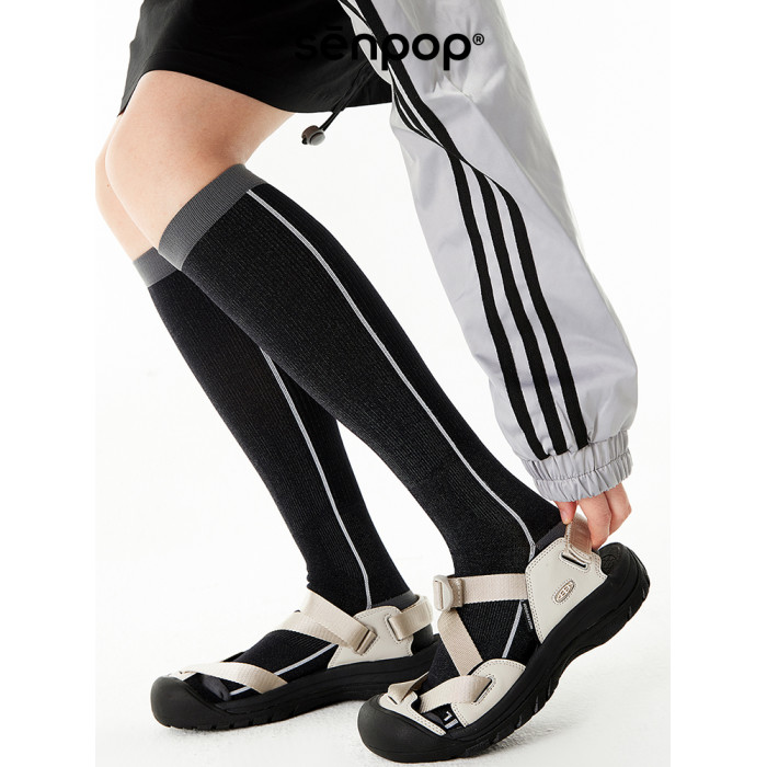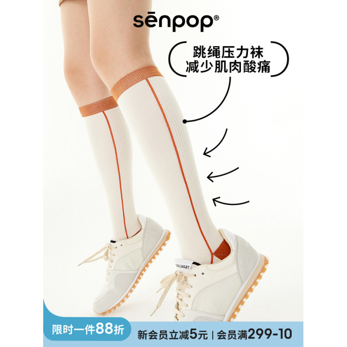 上森紅色壓力運動襪跑步小腿壓力襪緩解腫脹秋透氣高筒襪顯瘦長襪