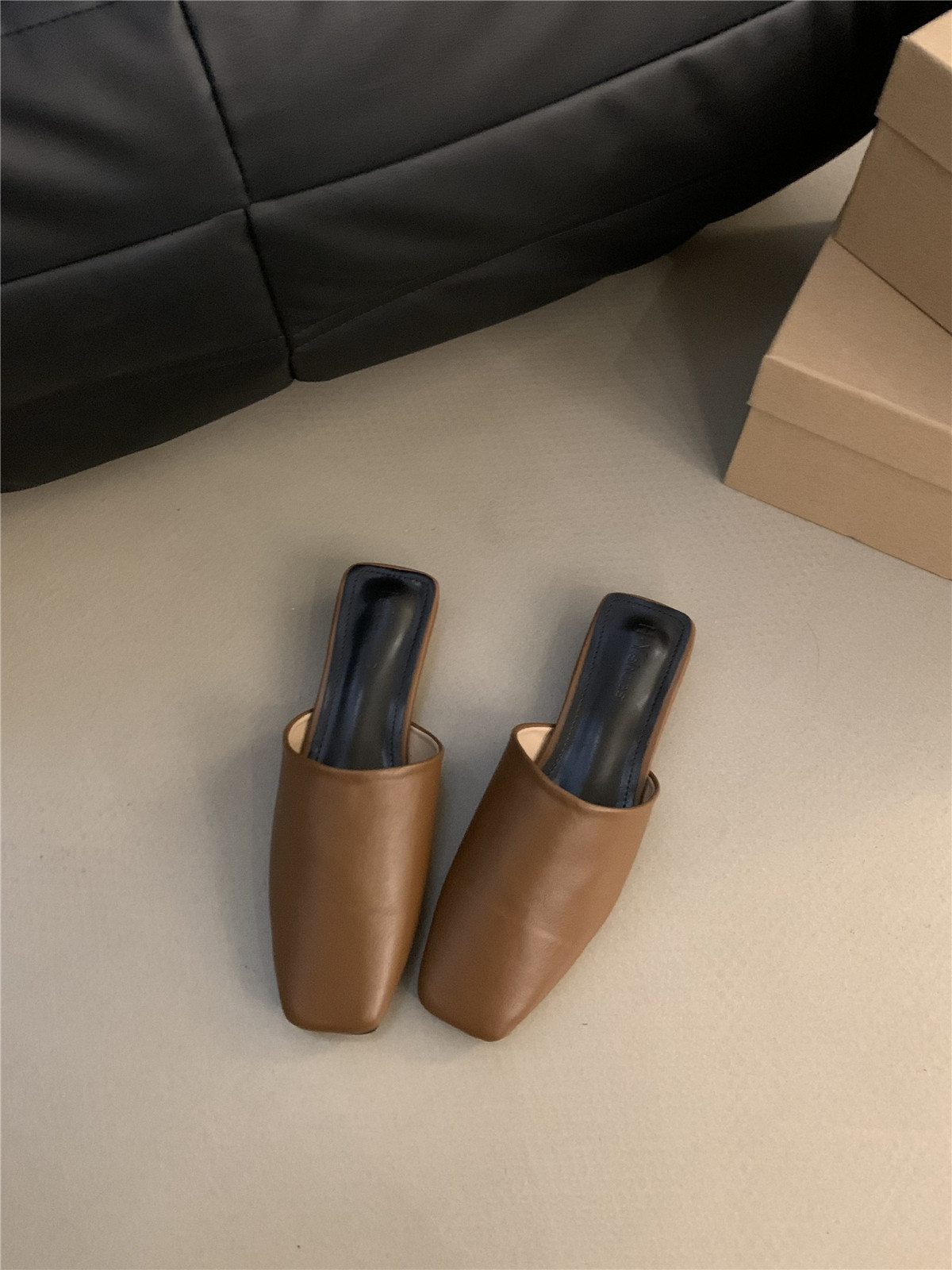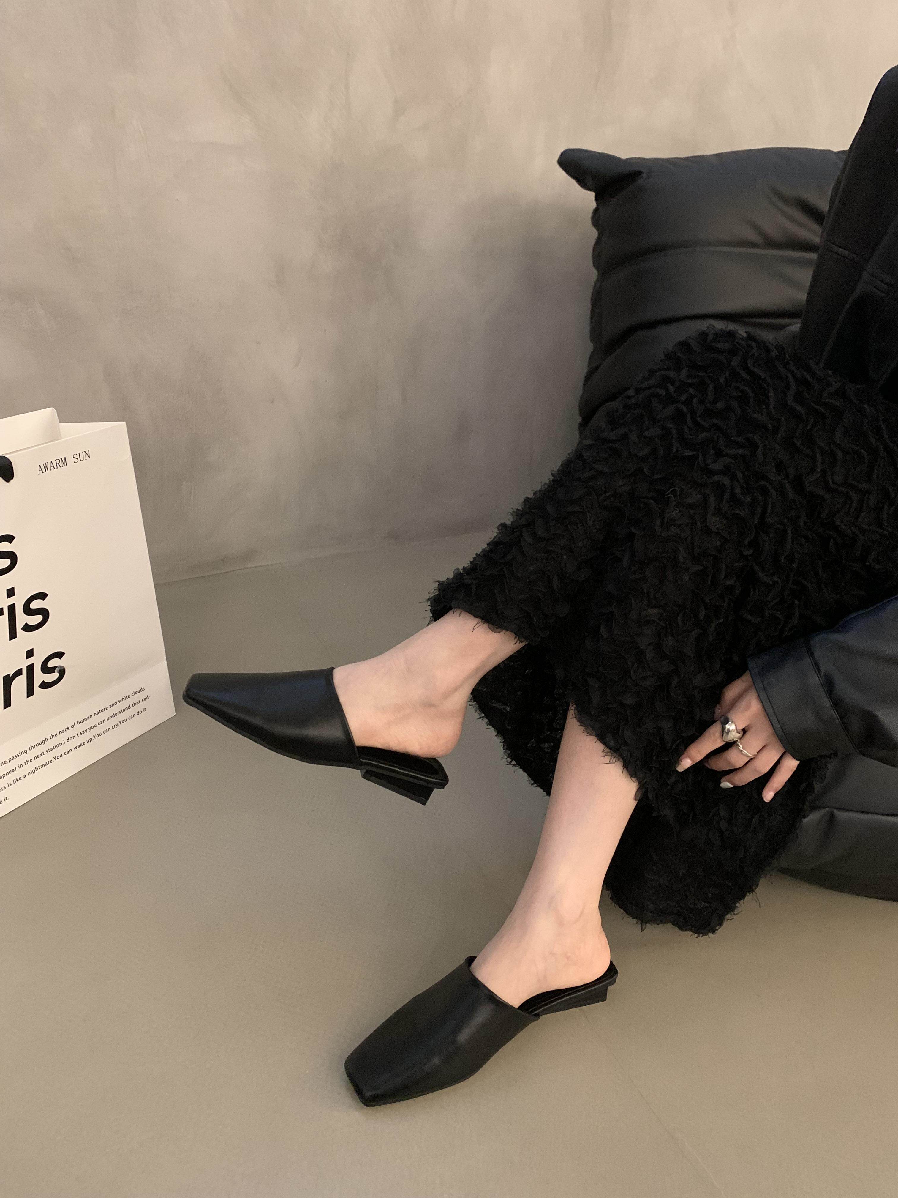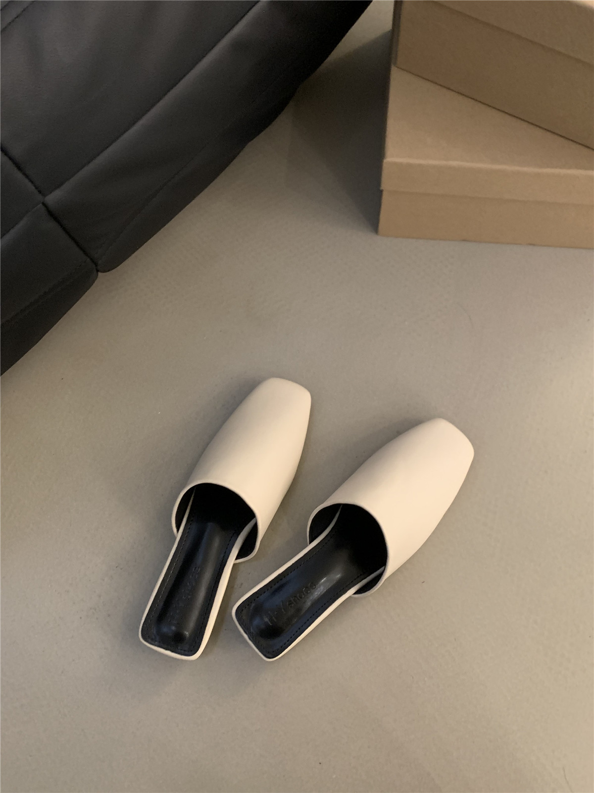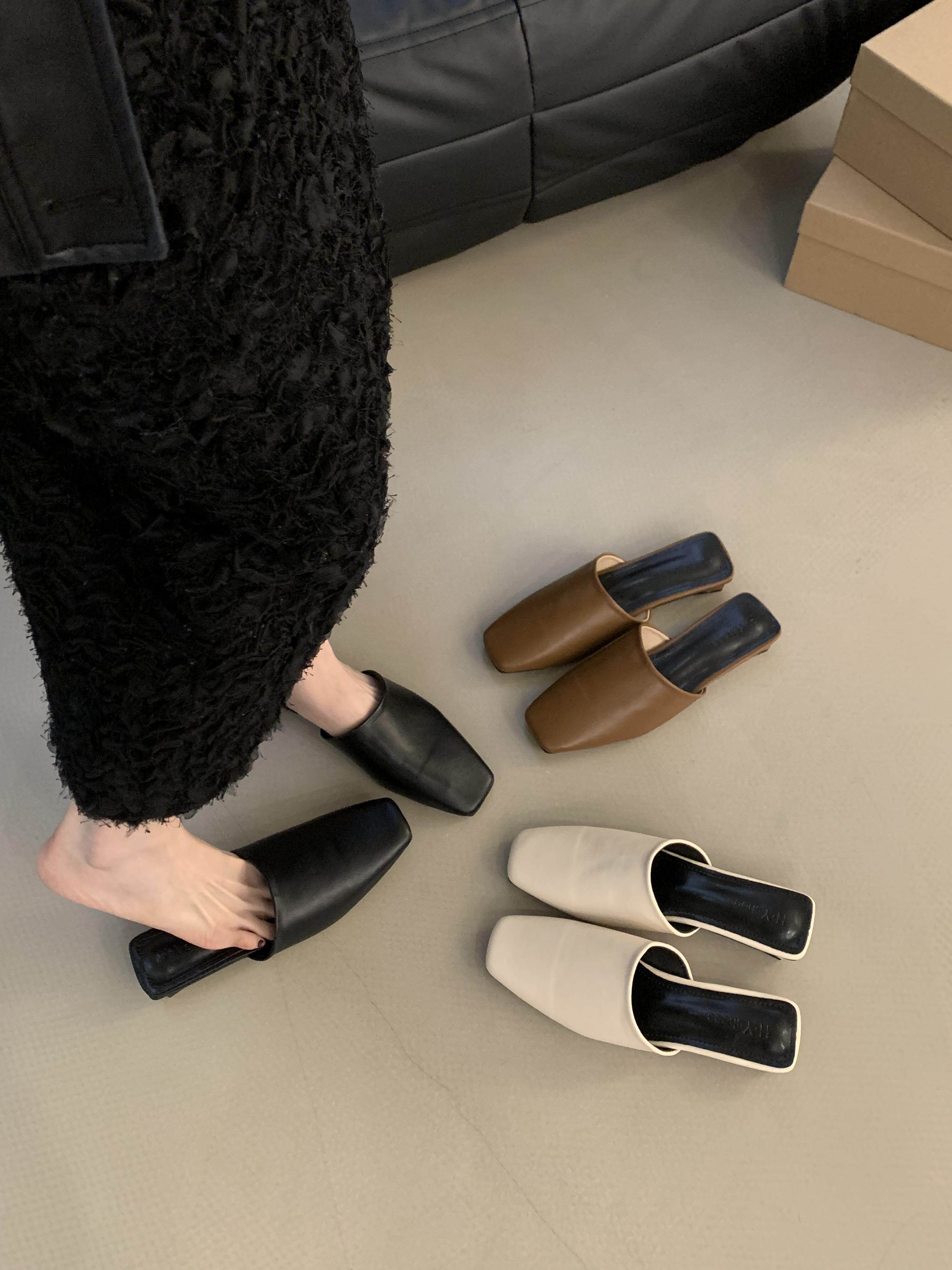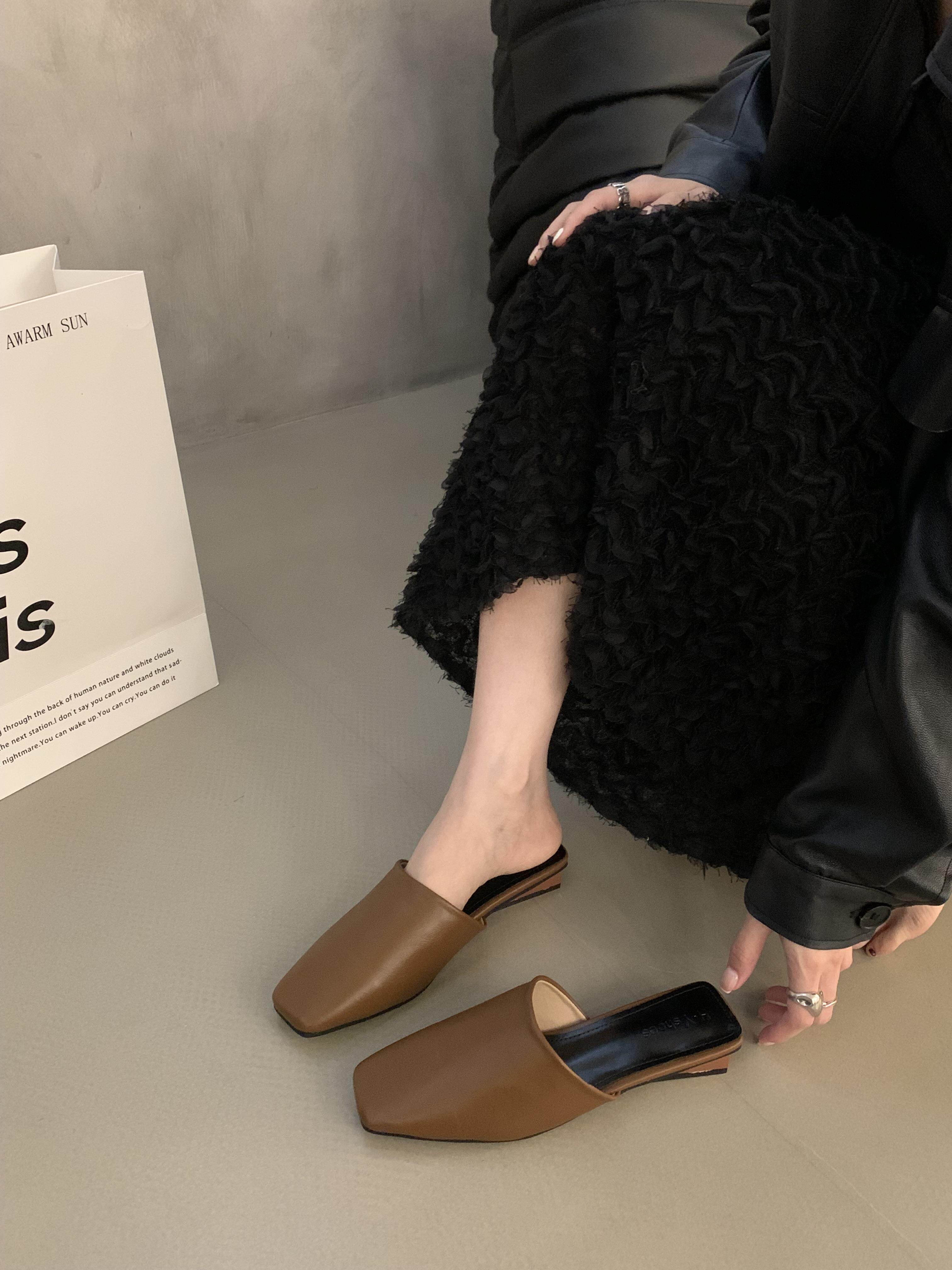 2024新款方頭軟皮單鞋涼拖鞋女夏季外穿涼鞋懶人穆勒包頭半拖鞋子