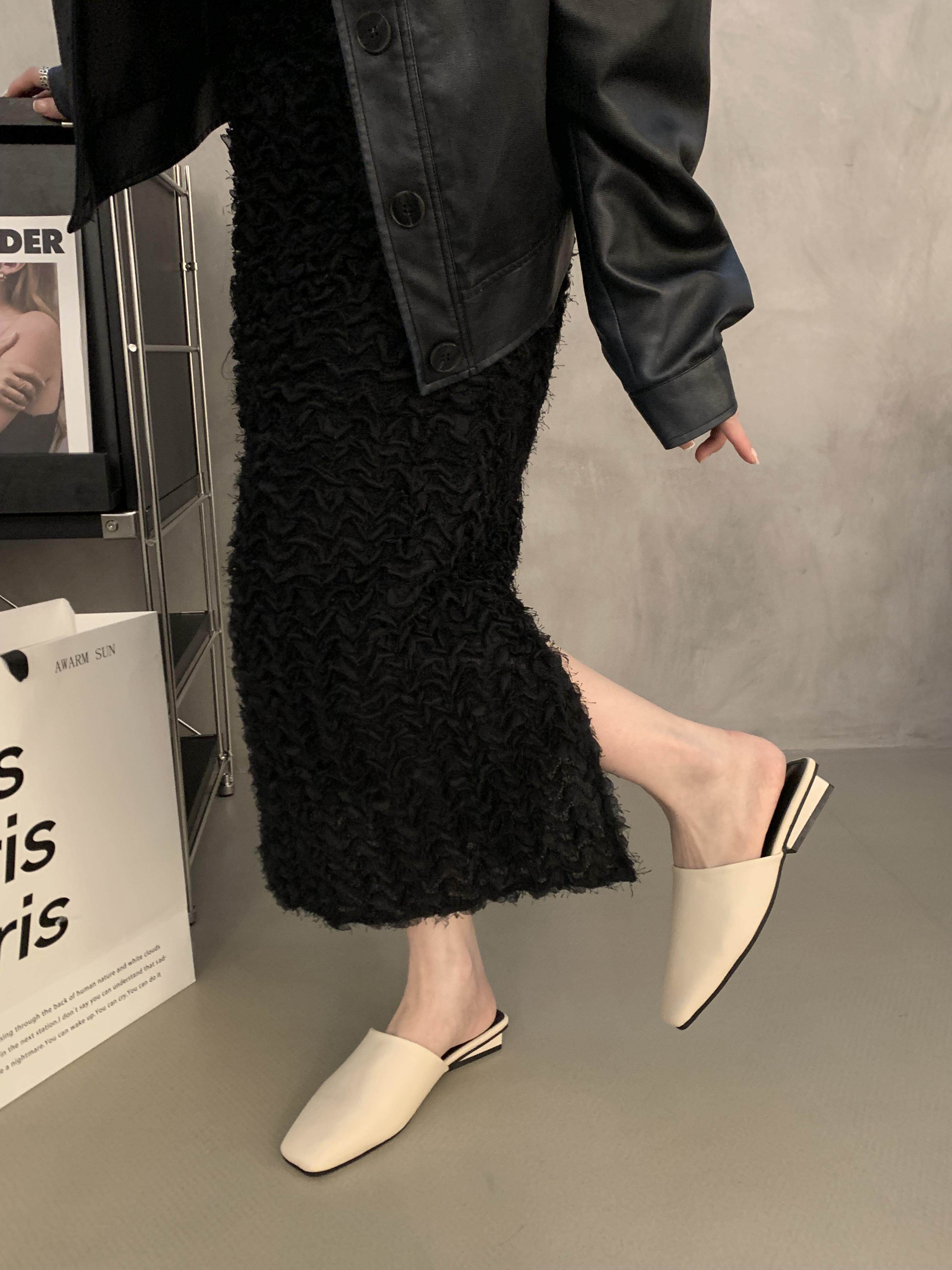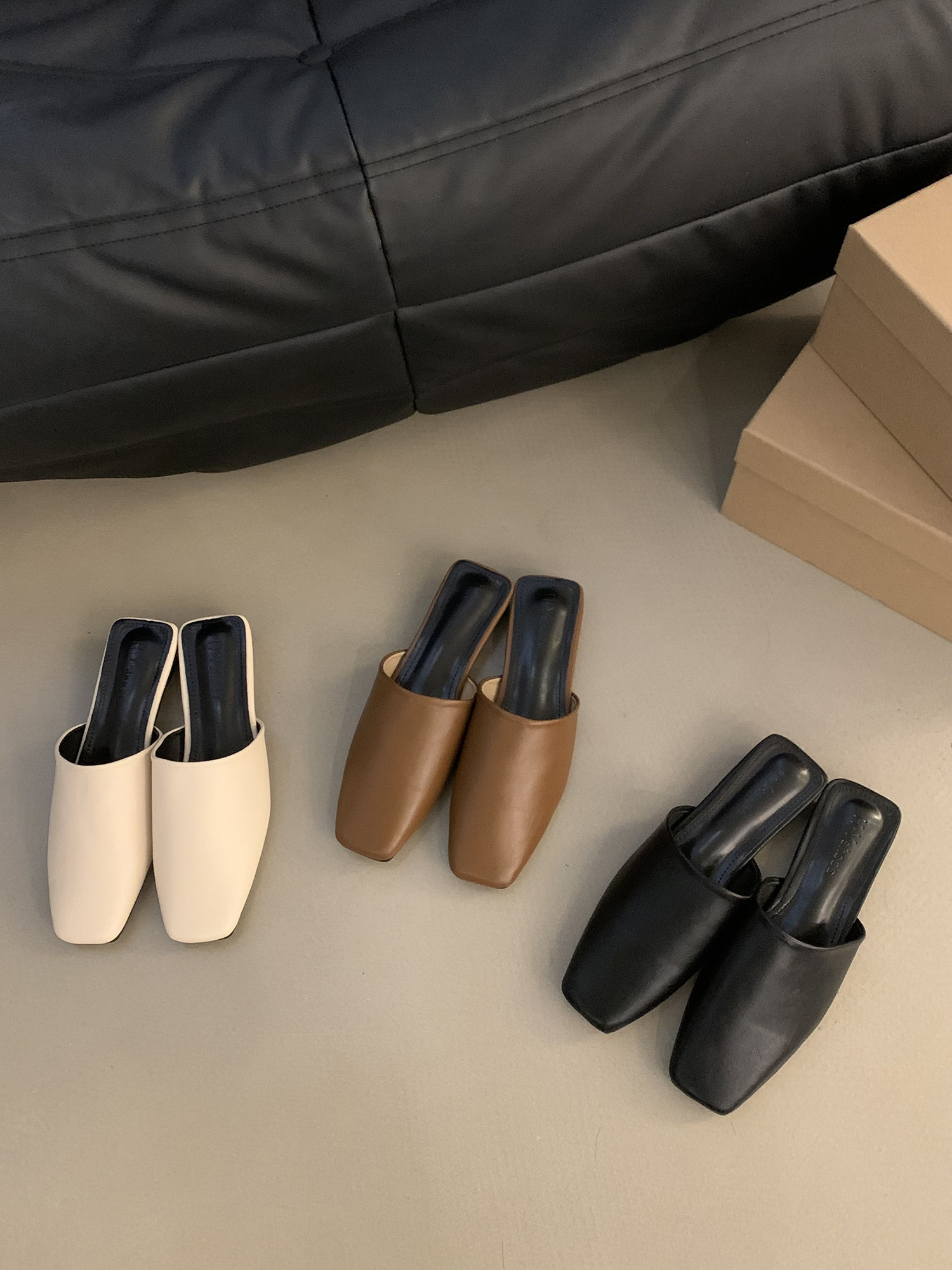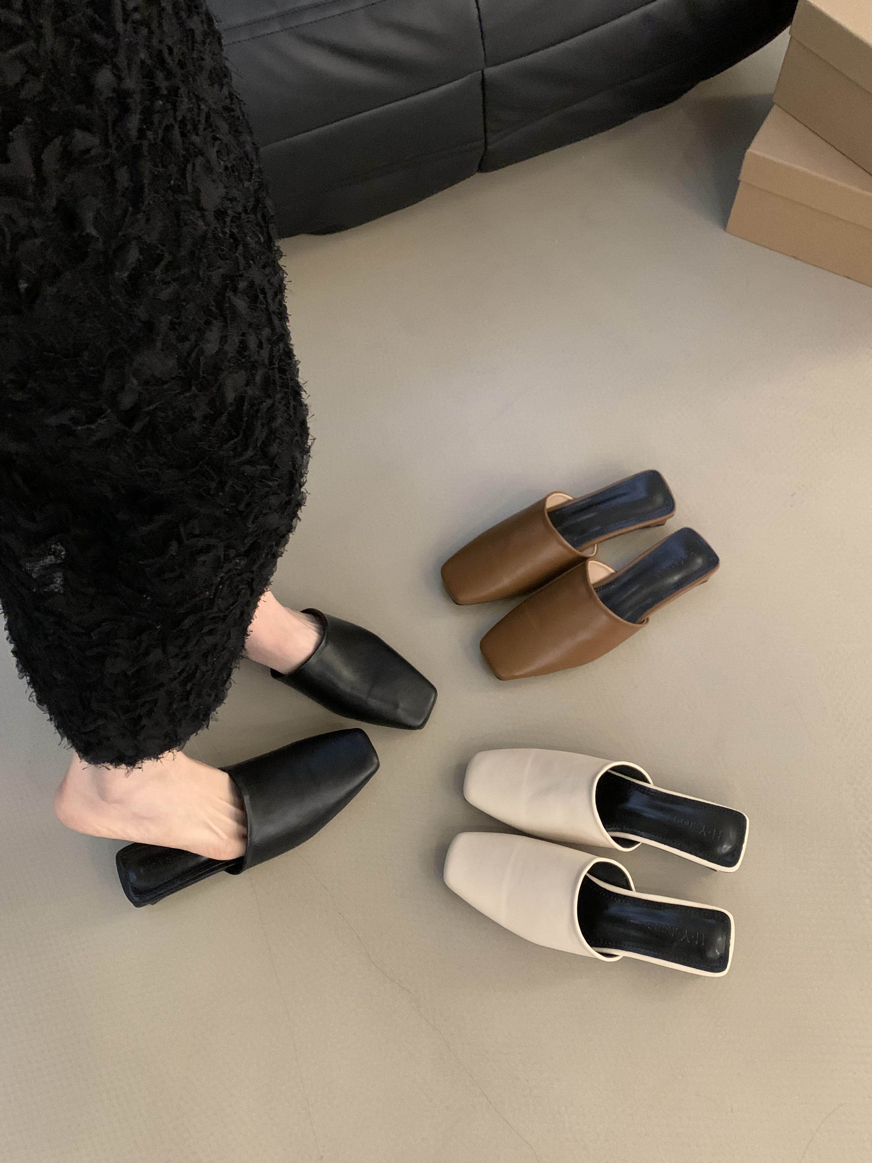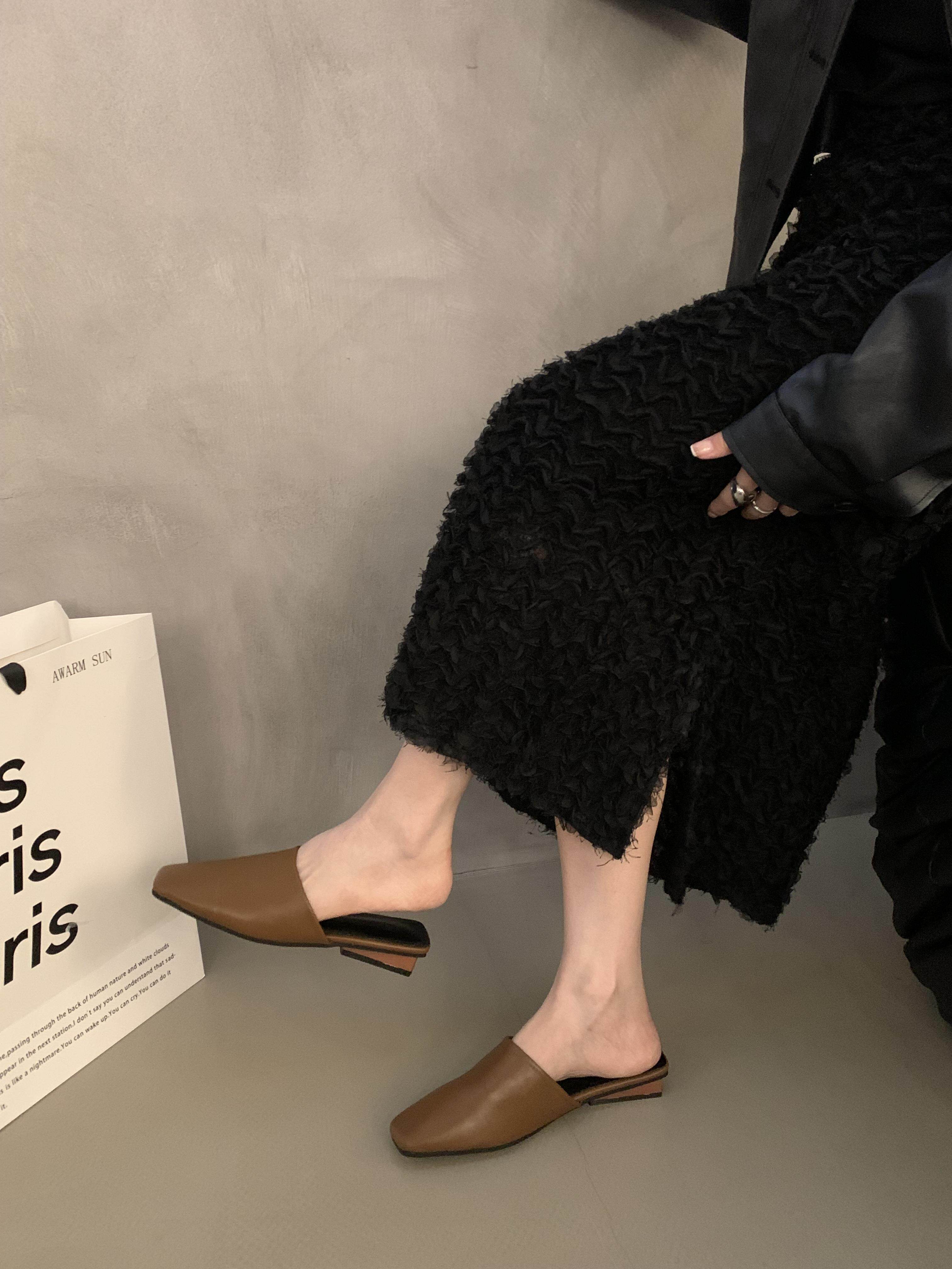 2024新款方頭軟皮單鞋涼拖鞋女夏季外穿涼鞋懶人穆勒包頭半拖鞋子
