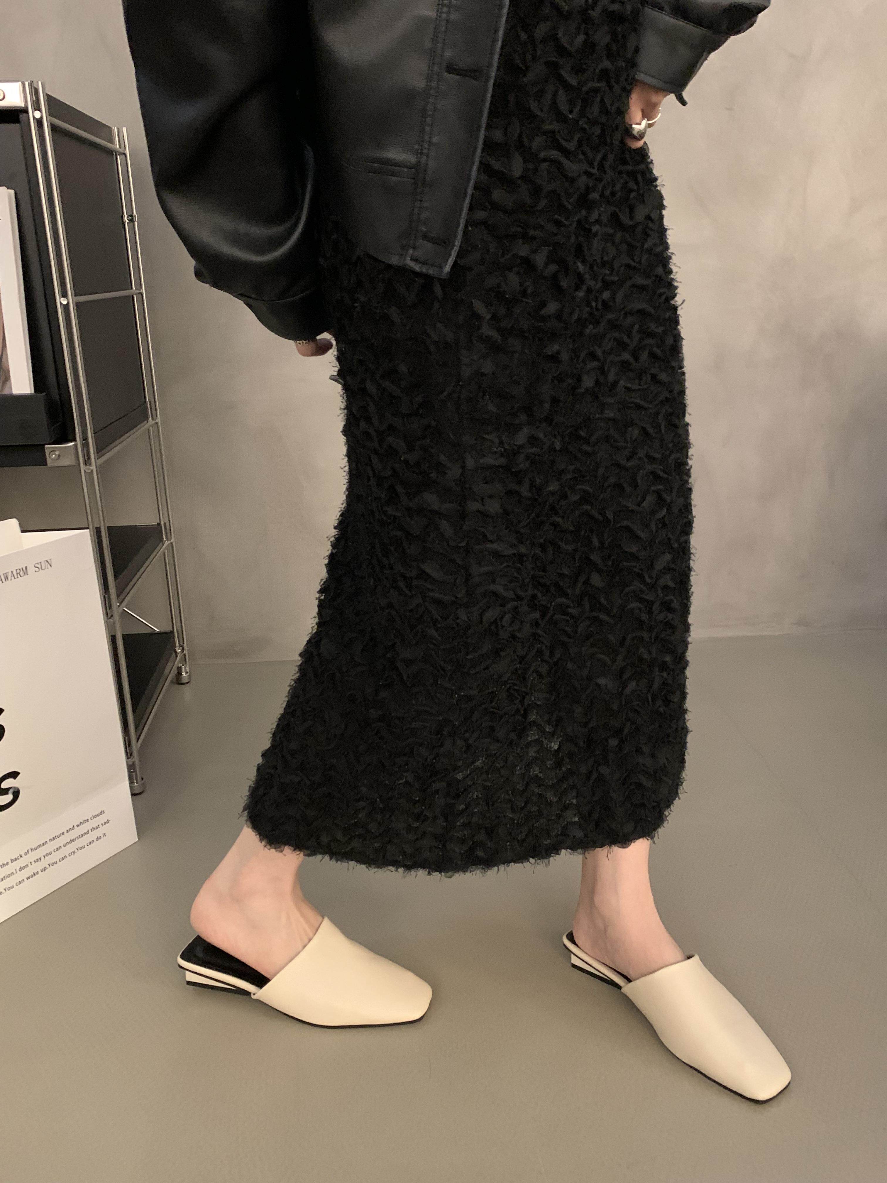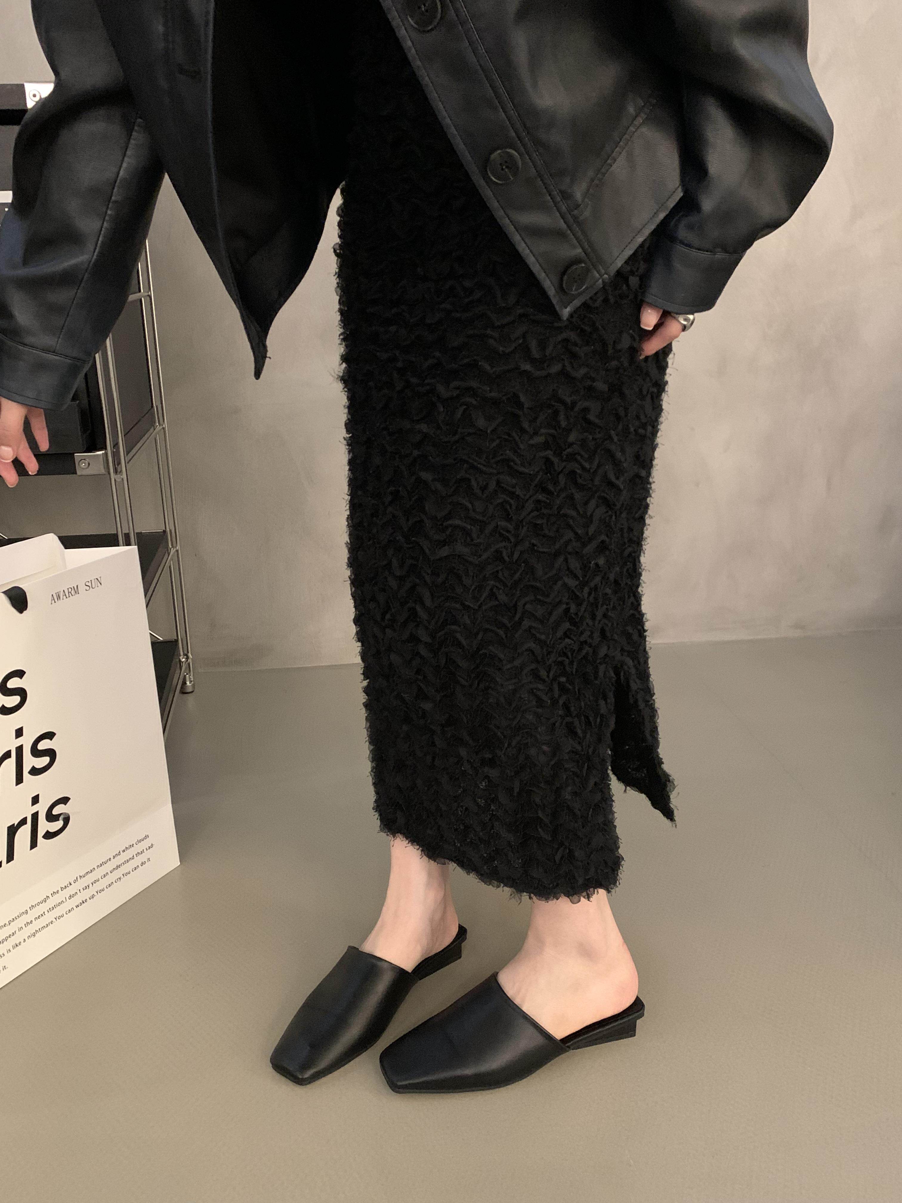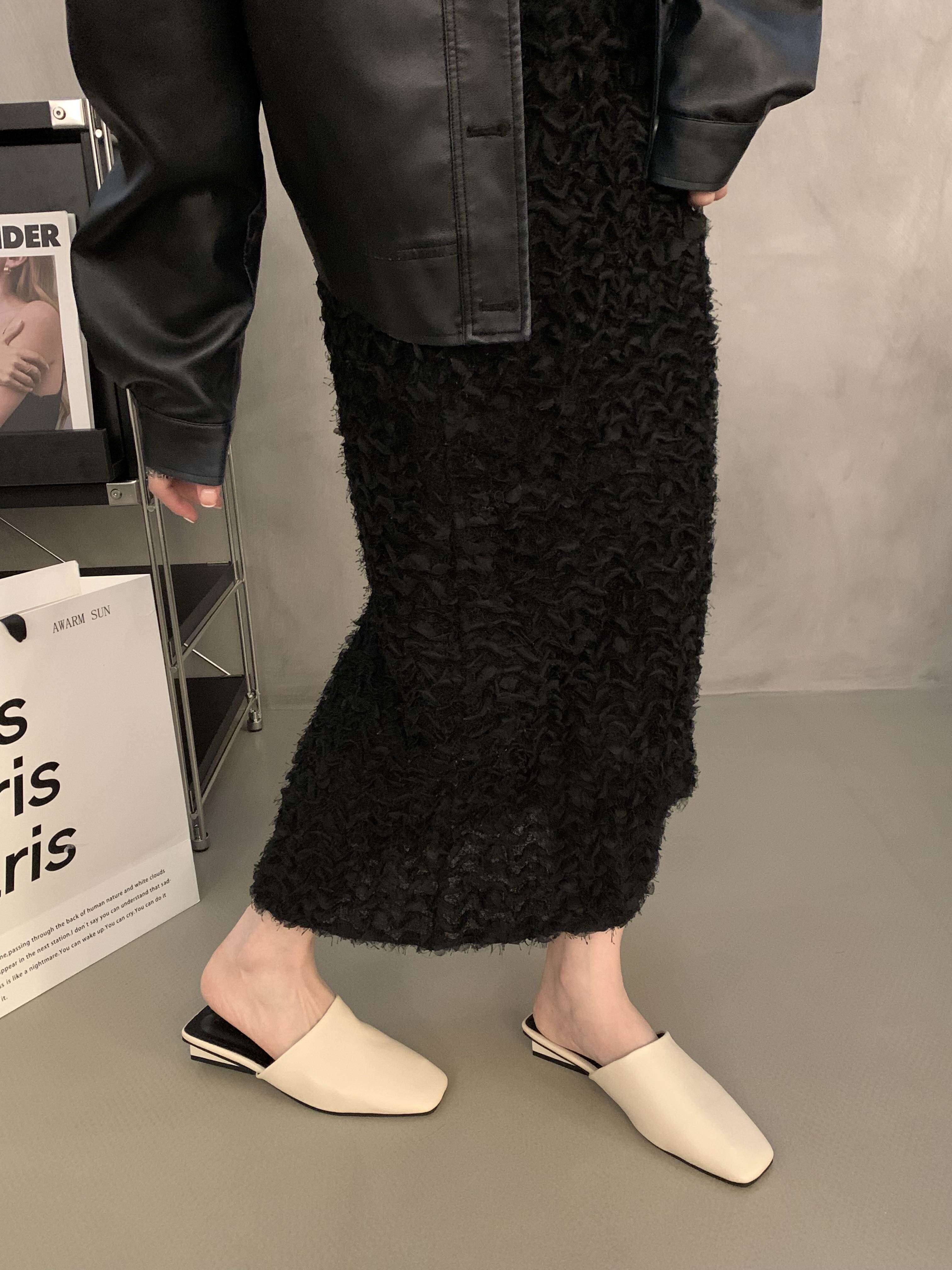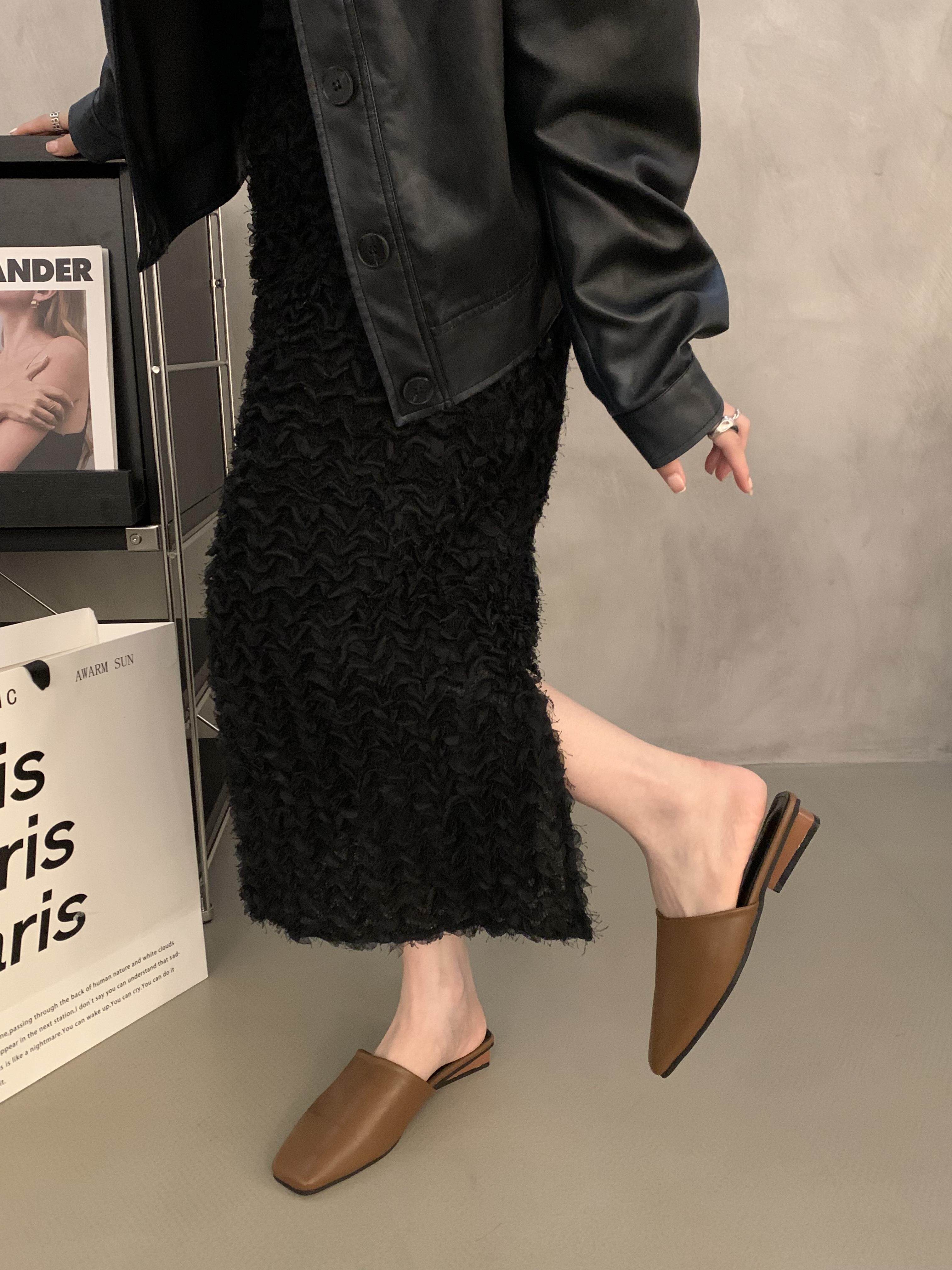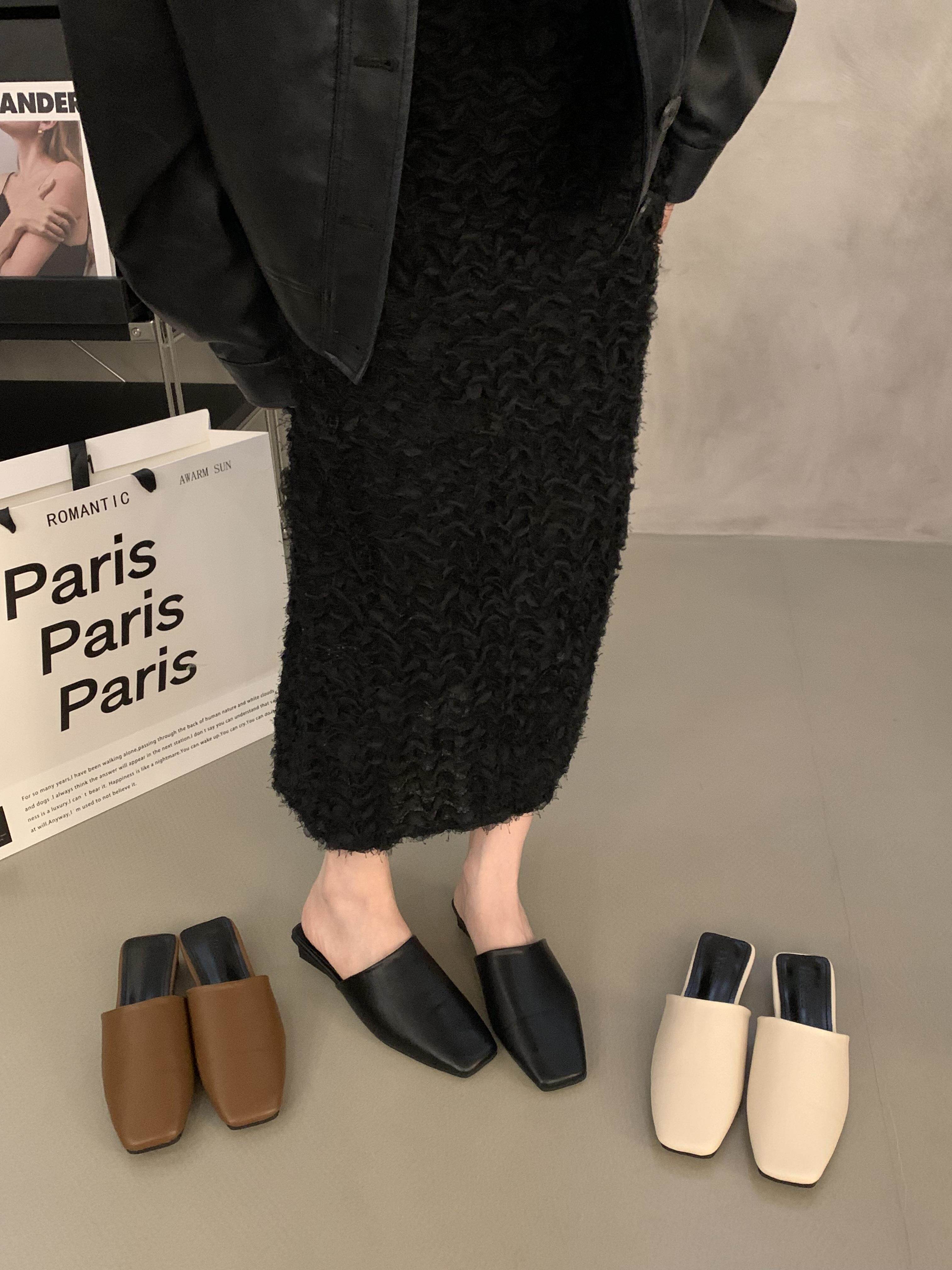 2024新款方頭軟皮單鞋涼拖鞋女夏季外穿涼鞋懶人穆勒包頭半拖鞋子