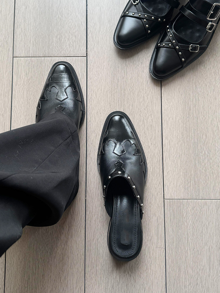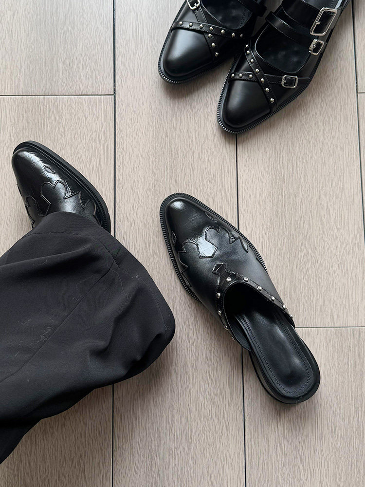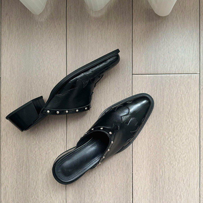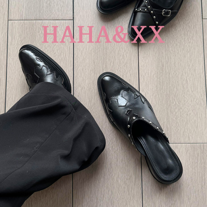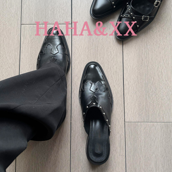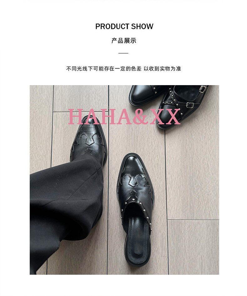 羊皮版~2025新款法式尖頭火焰拖鞋涼鞋外穿半拖鞋一腳蹬穆勒拖鞋