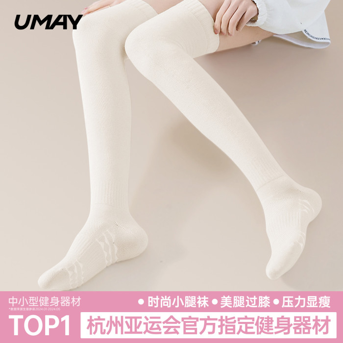 UMAY瑜珈襪女過膝長筒防滑壓力襪美腿瘦腿專業運動襪