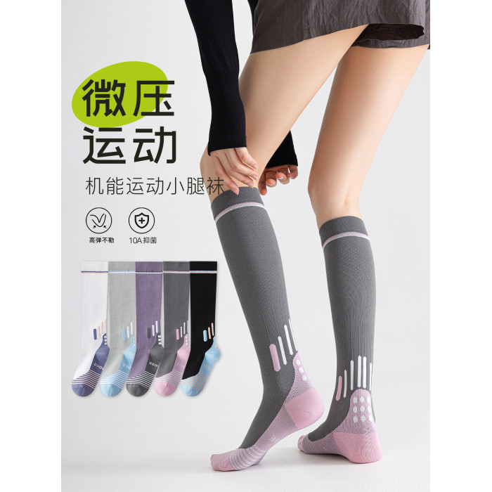 運動壓力襪子女長筒襪健身跑步跳繩瑜珈襪壓縮肌能顯瘦美腿小腿襪