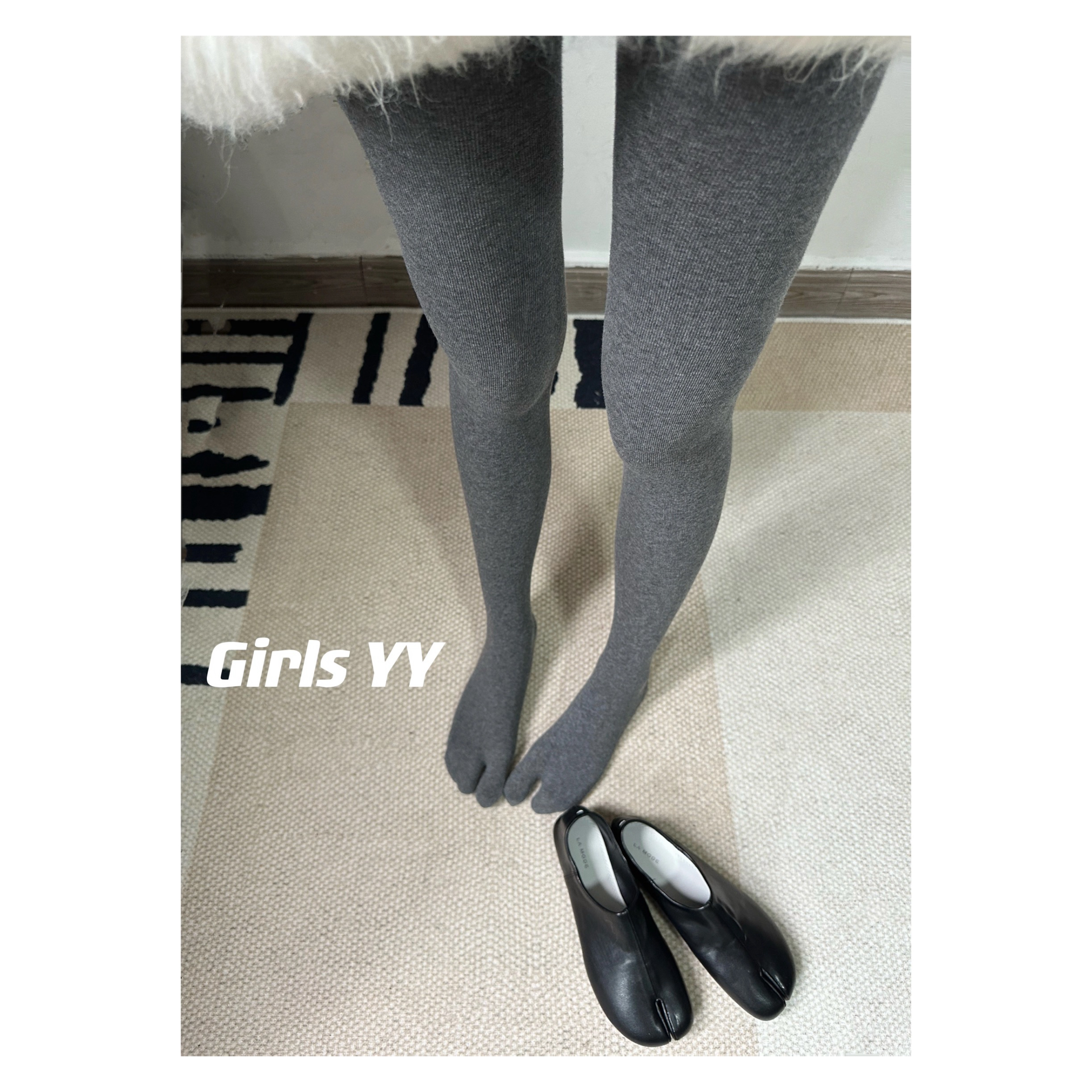 GirlsYY分趾連褲襪純棉菸灰色百搭顯瘦壓力襪二趾襪純黑打底褲襪