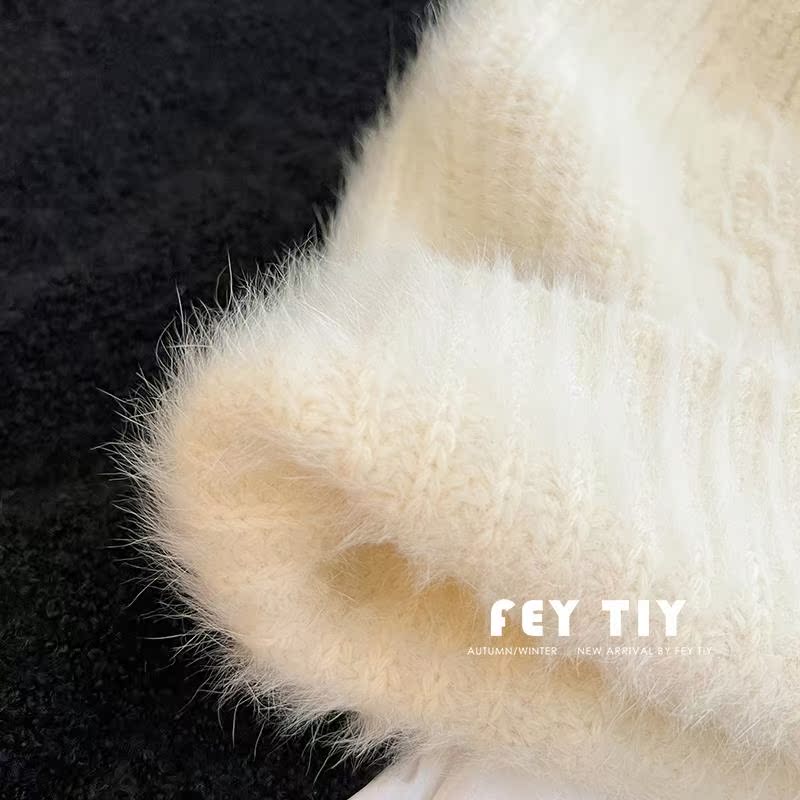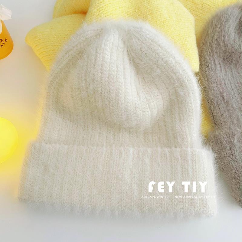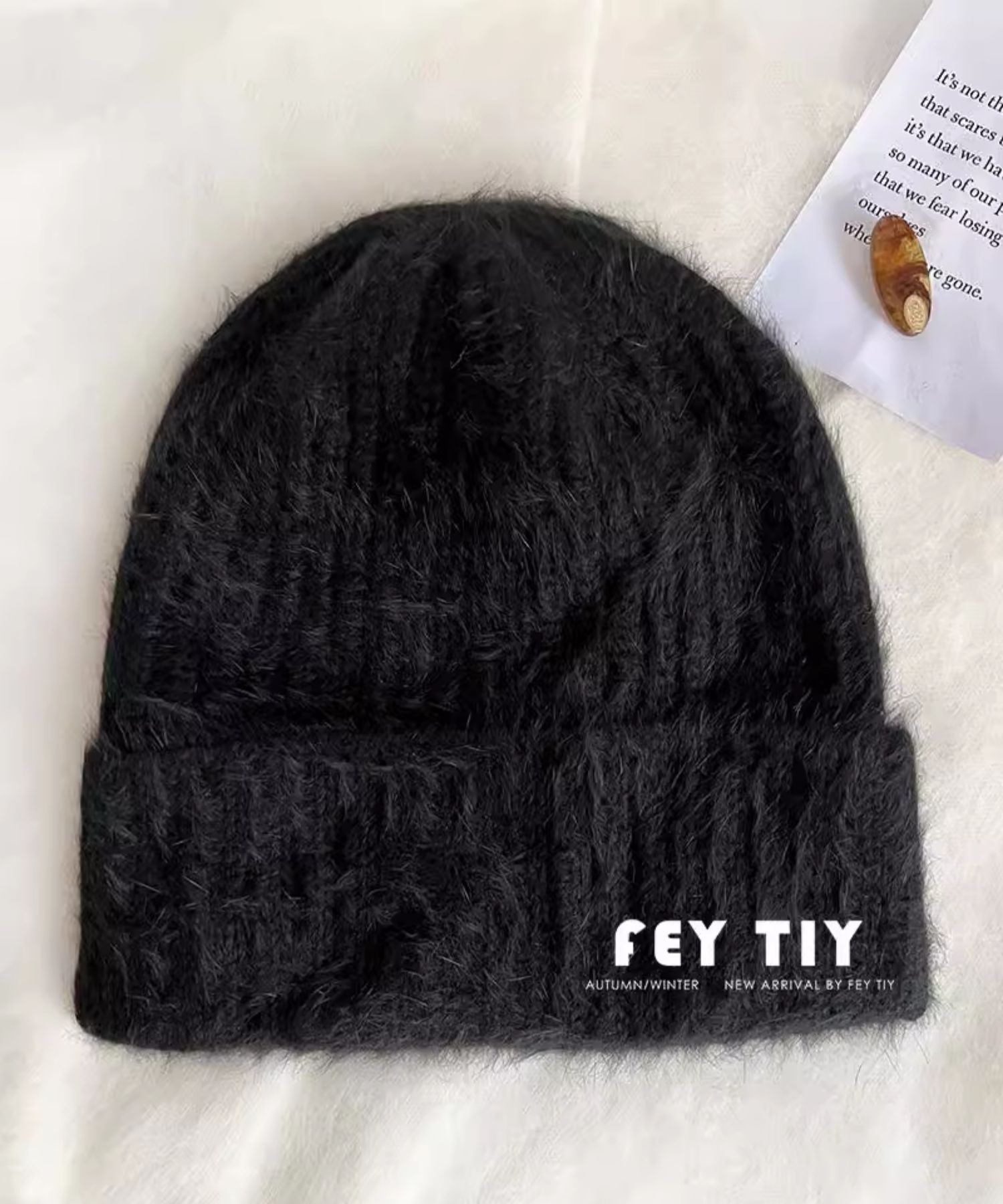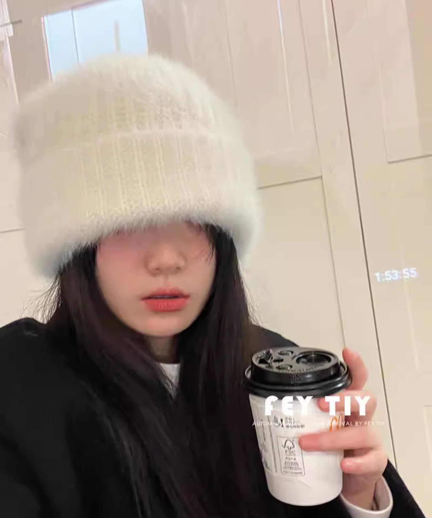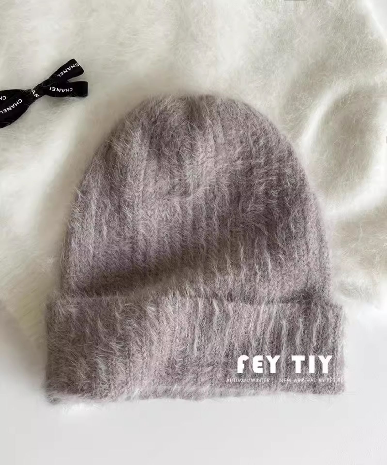 毛茸茸的兔毛帽子大頭圍毛線帽女秋冬保暖粗線針織帽白色冷帽帽子