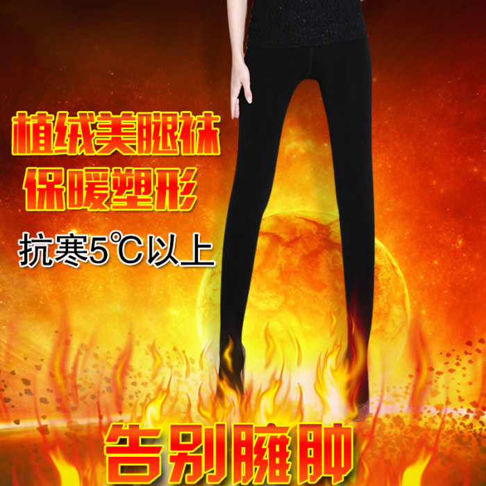 婷爾媄強壓力襪美腿塑形秋冬植絨壓力打底褲連褲襪顯瘦外穿女