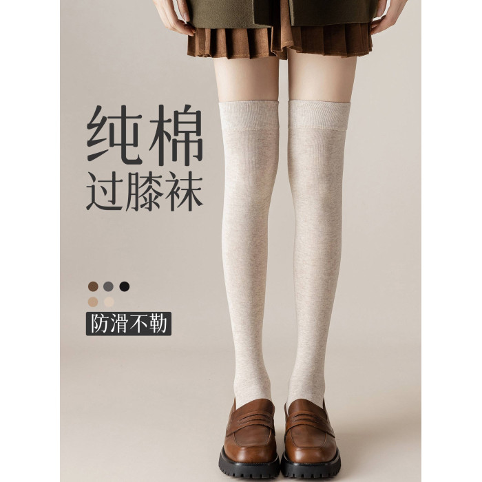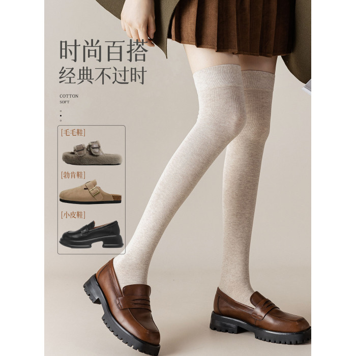純棉過膝襪子女春秋款大腿襪搭配皮鞋秋冬壓力襪黑色防下滑高筒襪
