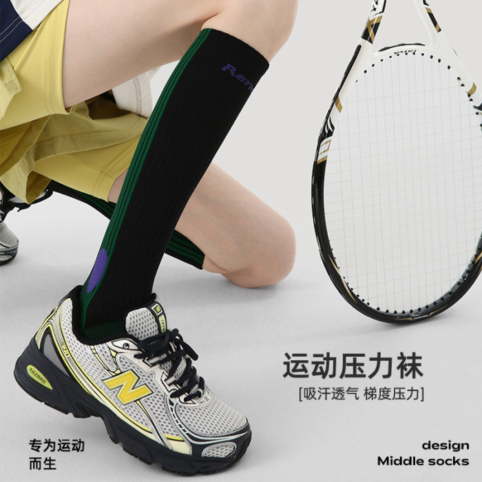 Renaissance女襪運動壓力襪跑步健身小腿黑色登山襪健身長襪子女