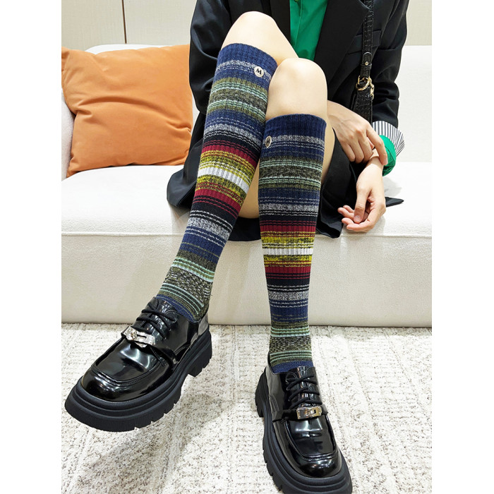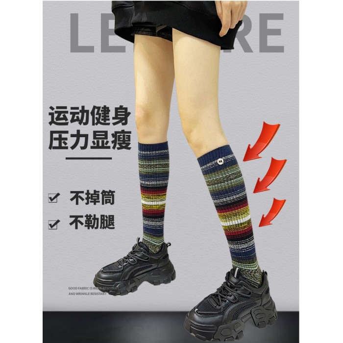 跑步運動護腿壓力襪顯瘦復古時尚小腿襪秋冬加厚保暖毛巾底中長筒