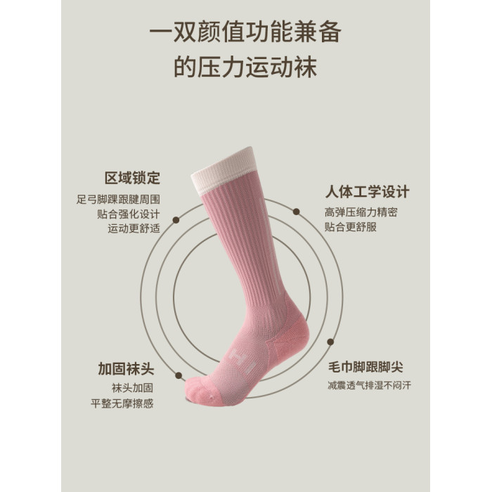 壓力襪子女士專業健身跳繩跑步運動壓縮肌能防滑高筒瑜珈小腿襪長