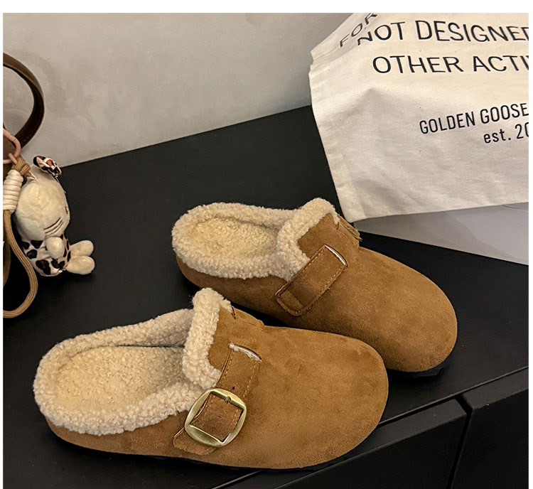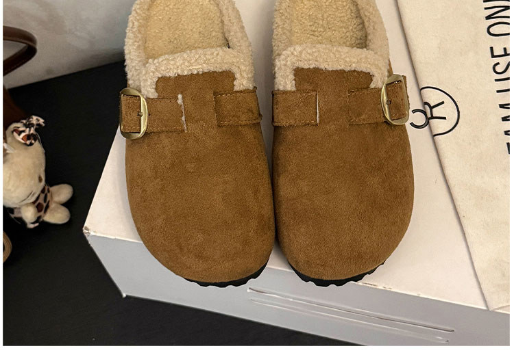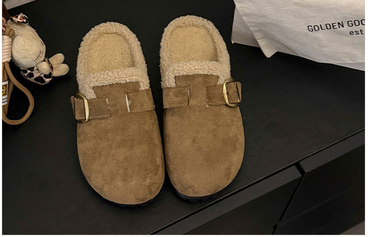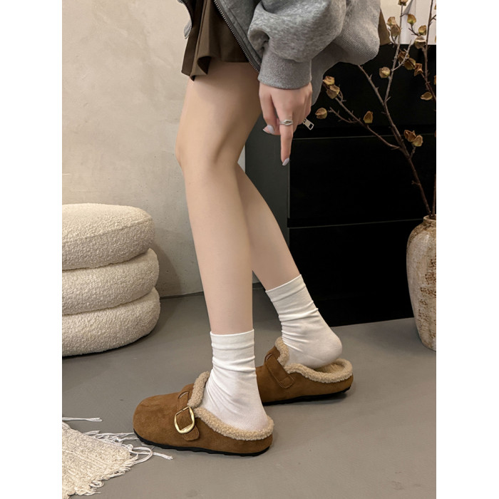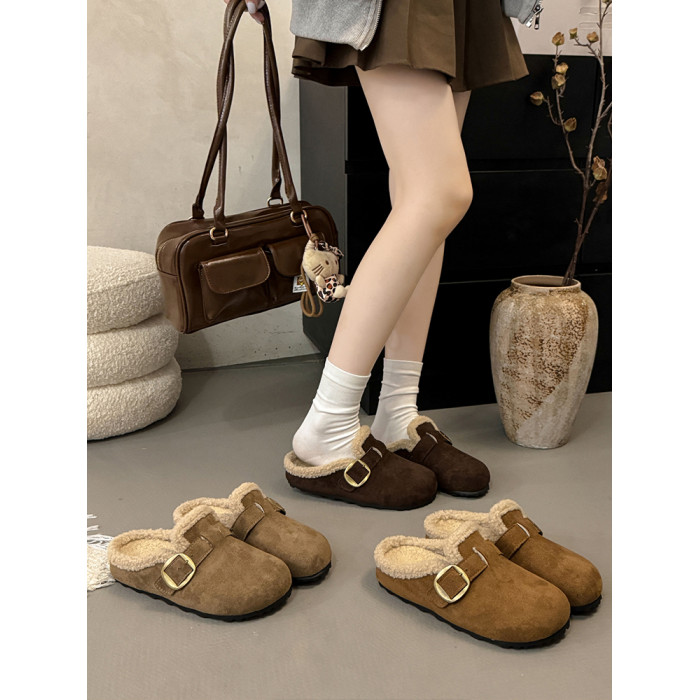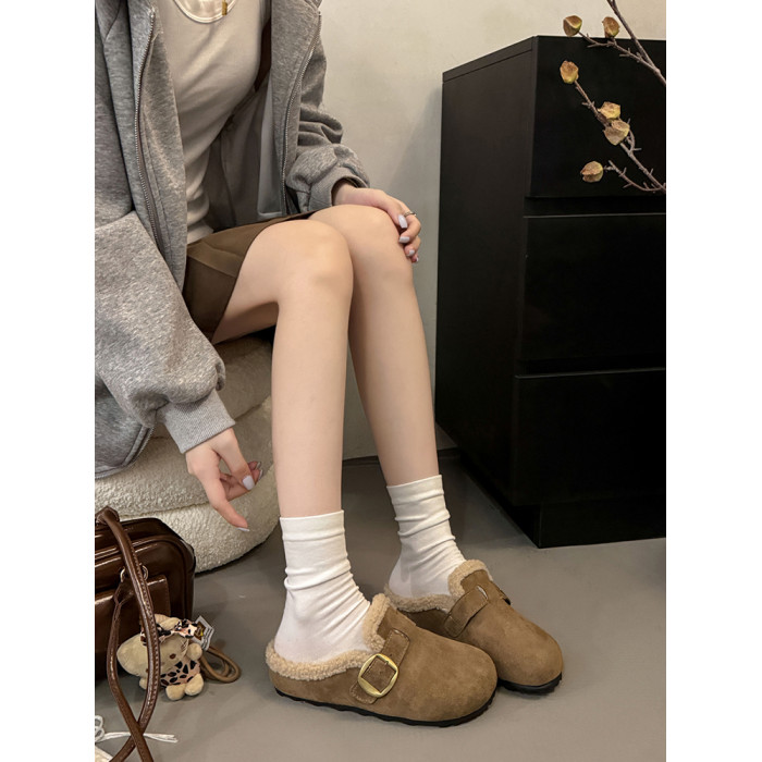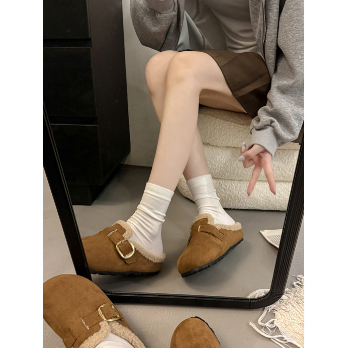 加絨勃肯鞋毛毛鞋女外穿2025新款秋冬季一腳蹬包頭半拖鞋博肯棉鞋