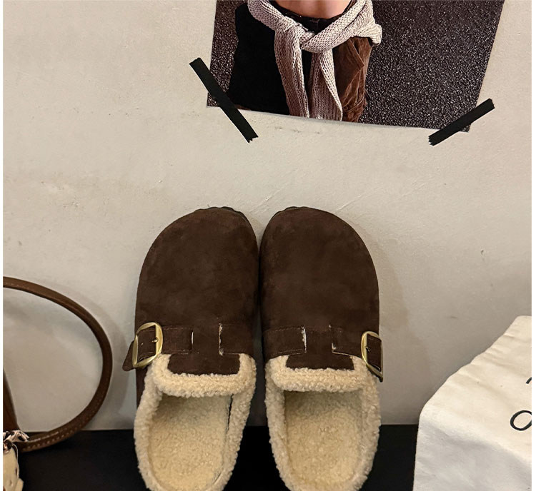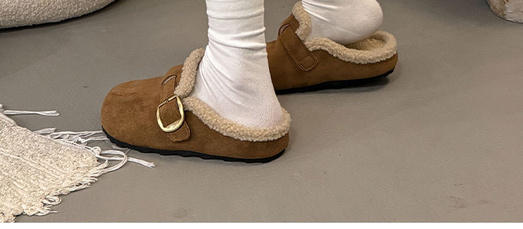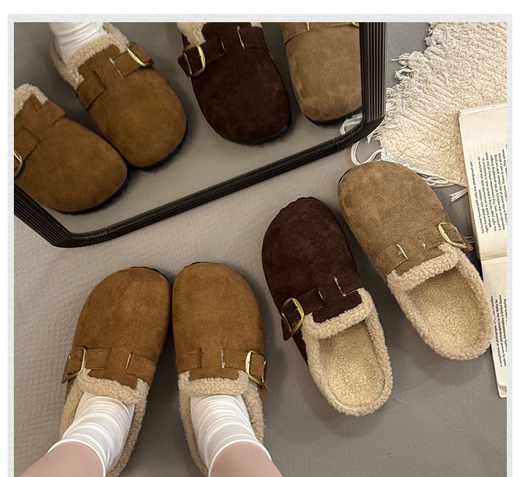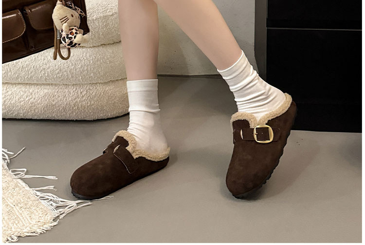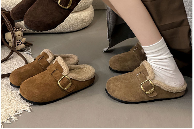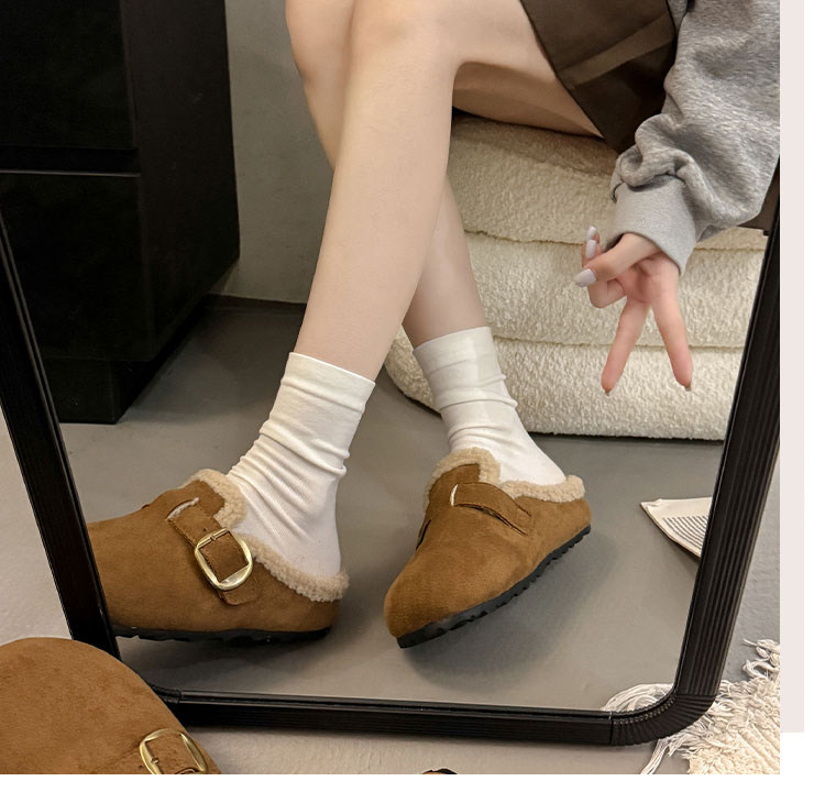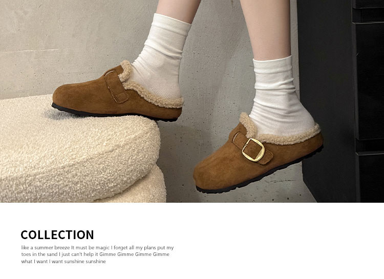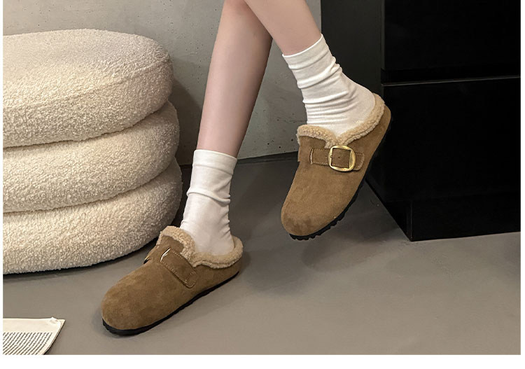 加絨勃肯鞋毛毛鞋女外穿2025新款秋冬季一腳蹬包頭半拖鞋博肯棉鞋