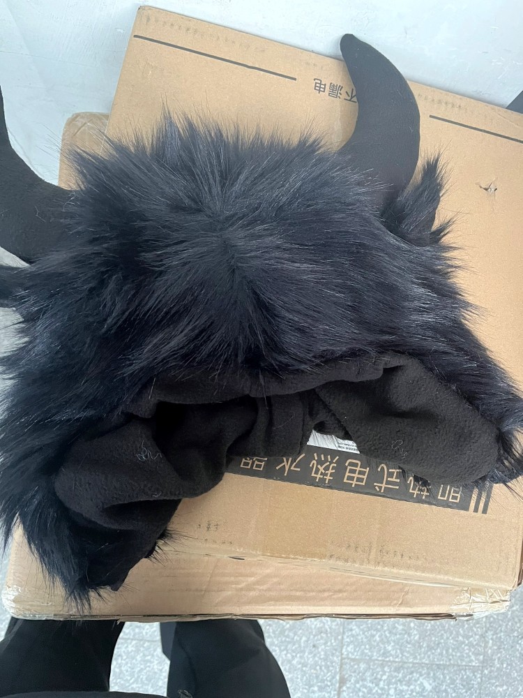 秋冬ins潮人暗黑牛魔王仿皮草護耳帽防風保暖顯臉小牛角毛毛帽