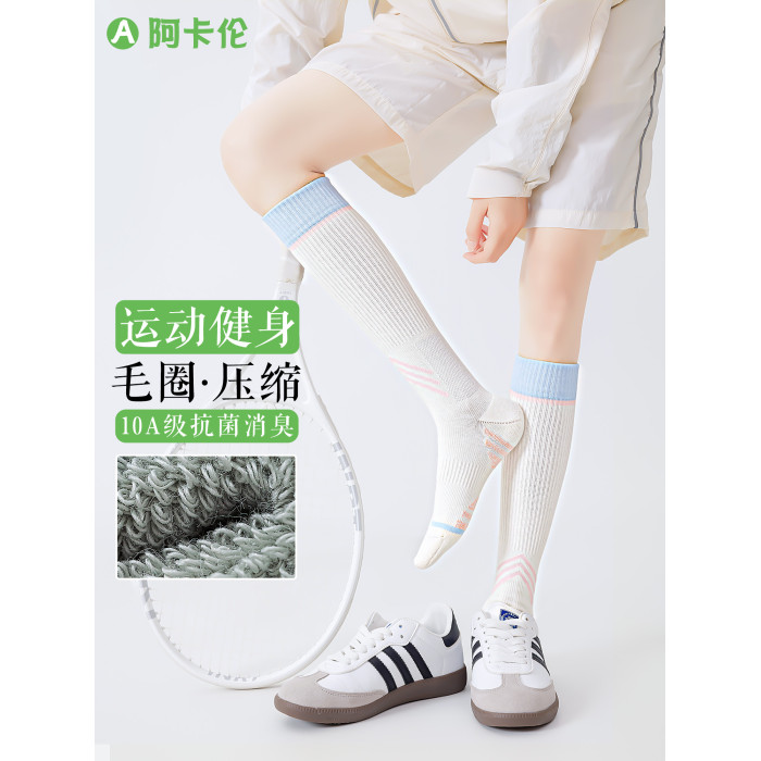 運動壓力襪子女長筒襪毛巾底防滑專業馬拉松跑步襪戶外登山小腿襪