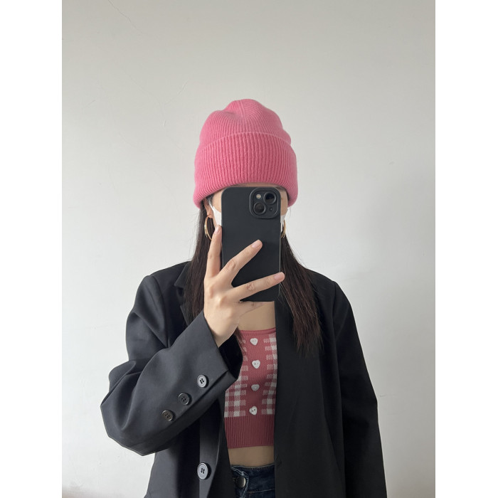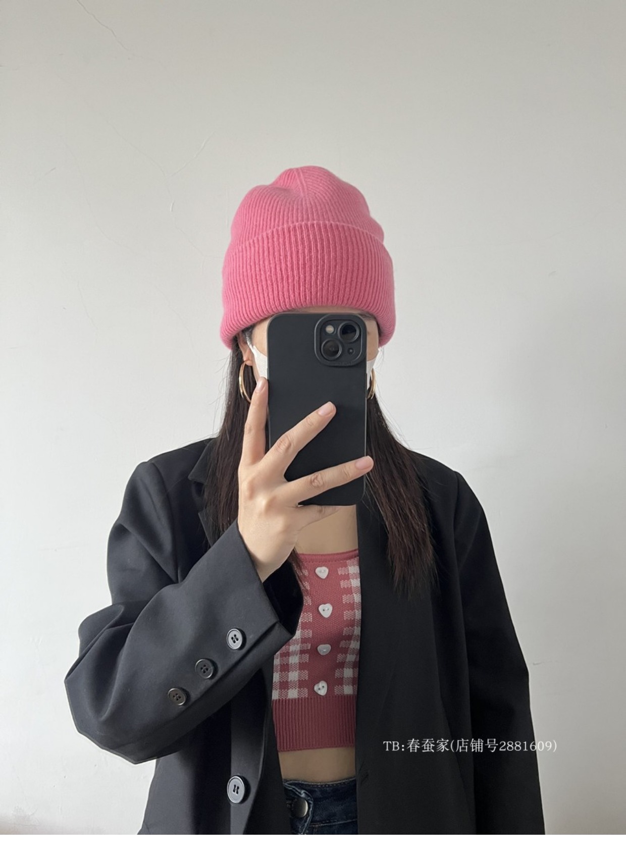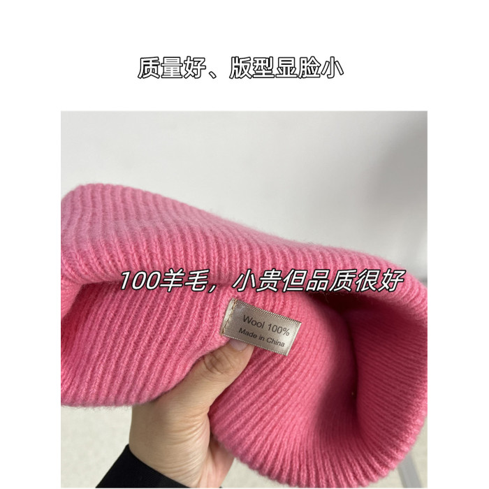 出口日本高品質100綿羊毛帽子女秋冬保暖護耳針織帽大頭圍顯臉小