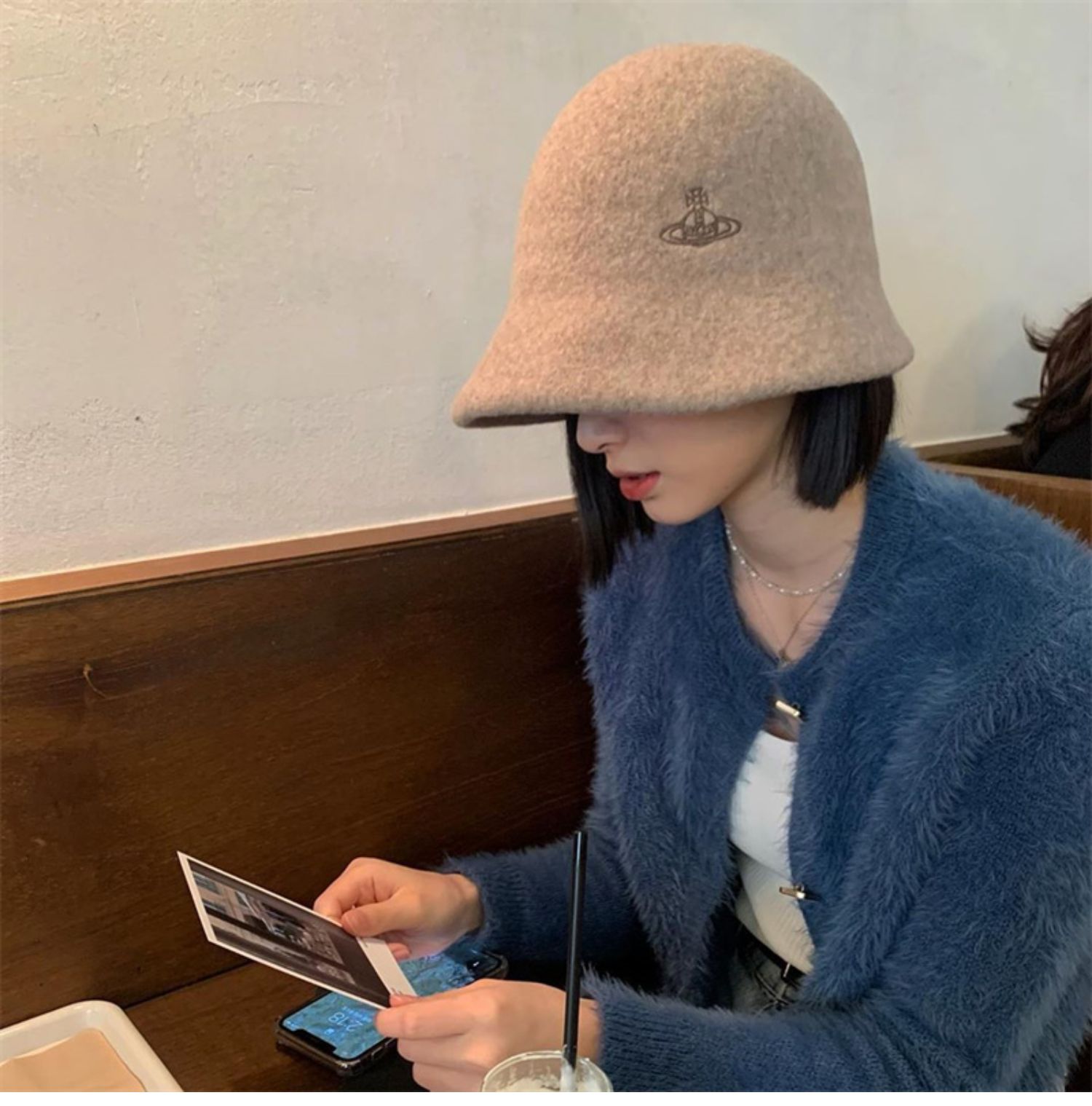 日本西太後漁夫女帽漁夫帽秋冬土星刺綉羊毛帽子復古顯臉小盆帽潮