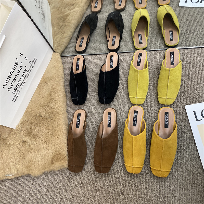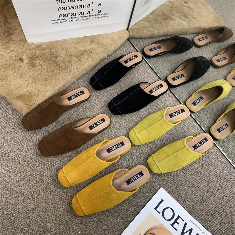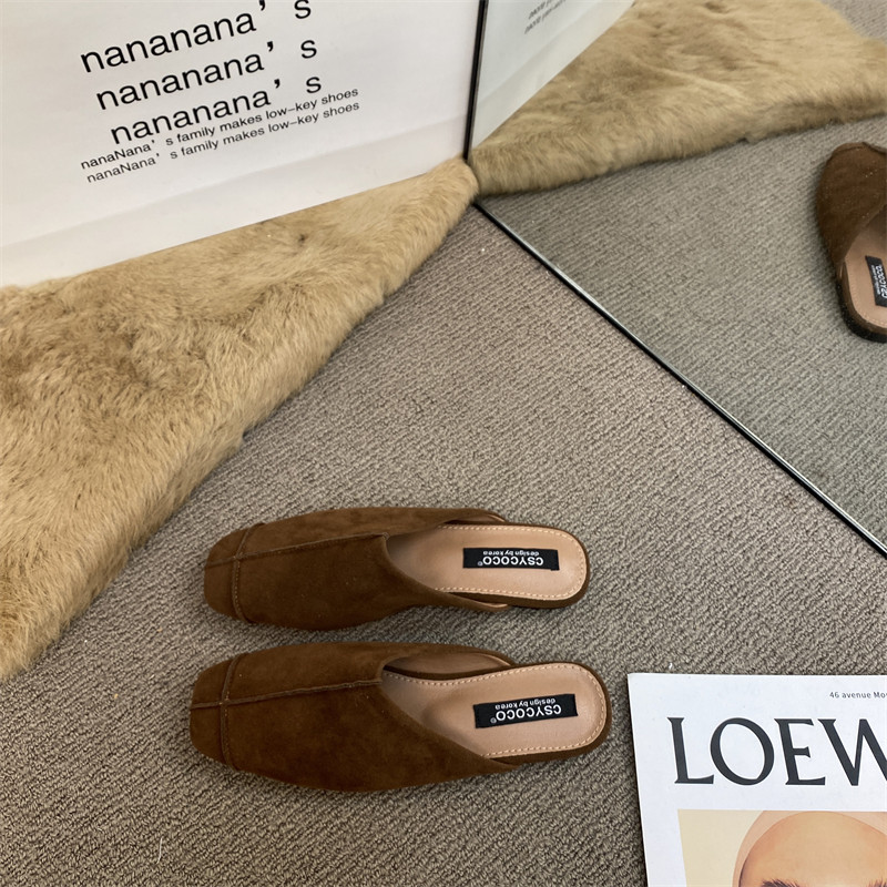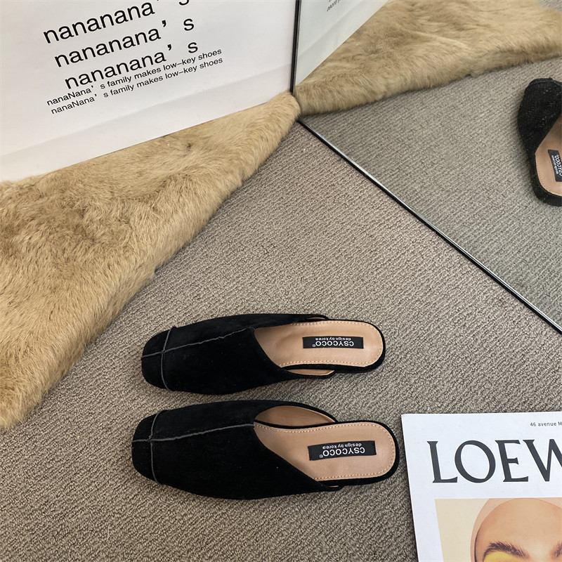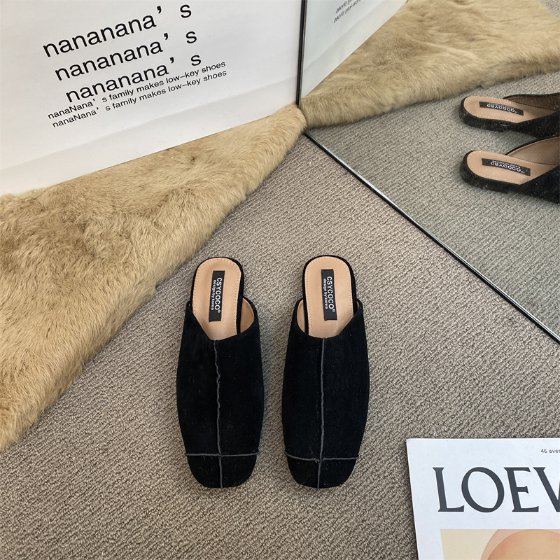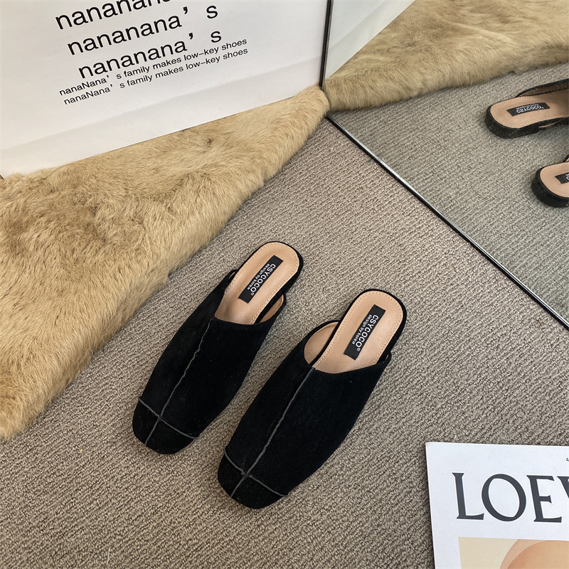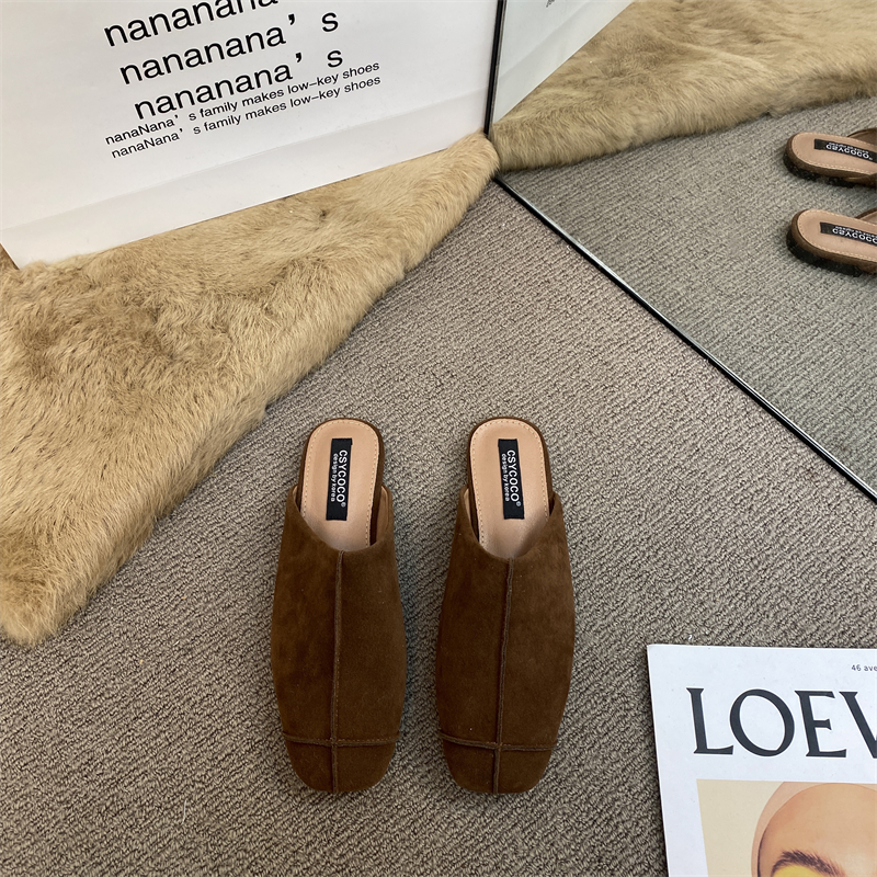 法式氣質包頭半拖鞋外穿女鞋2025新款絨面軟平底配裙子懶人穆勒鞋
