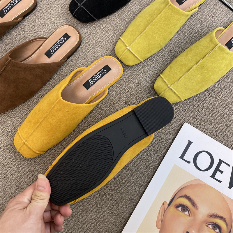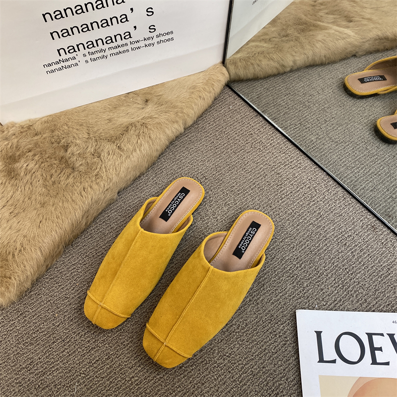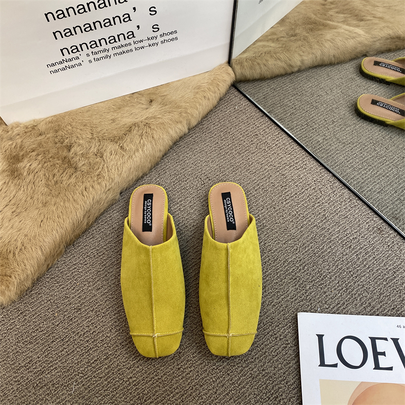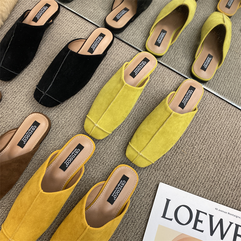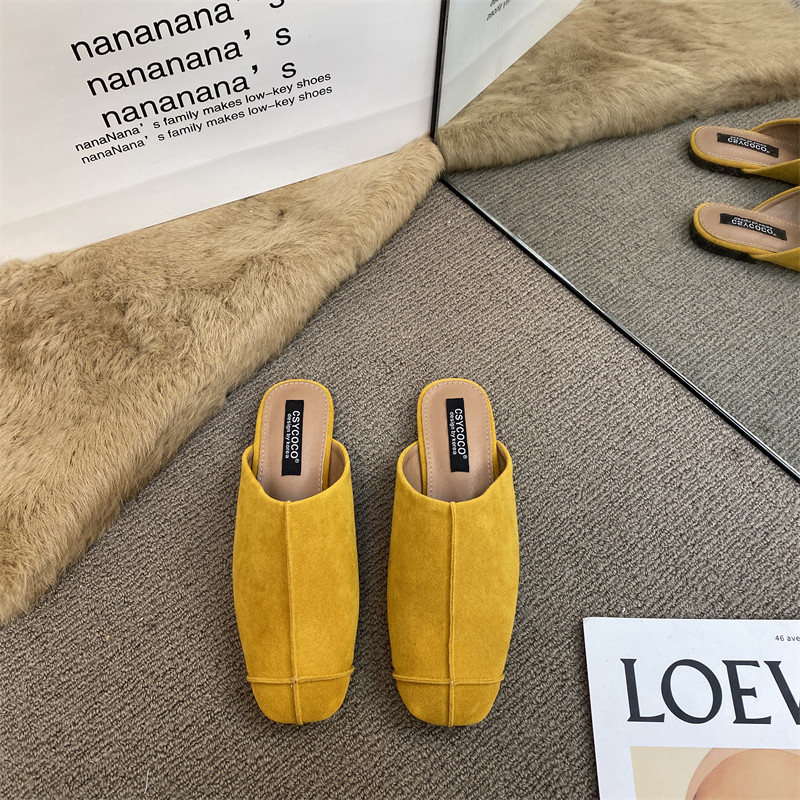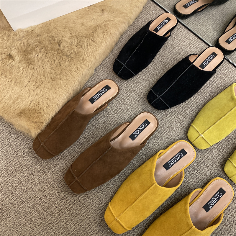 法式氣質包頭半拖鞋外穿女鞋2025新款絨面軟平底配裙子懶人穆勒鞋