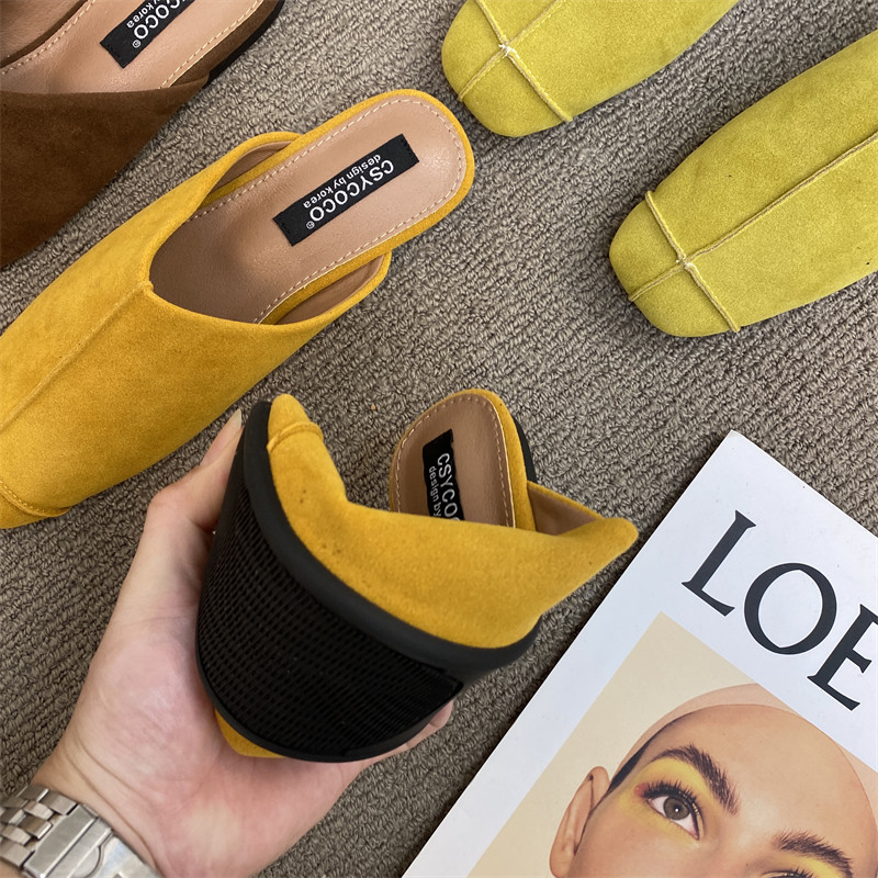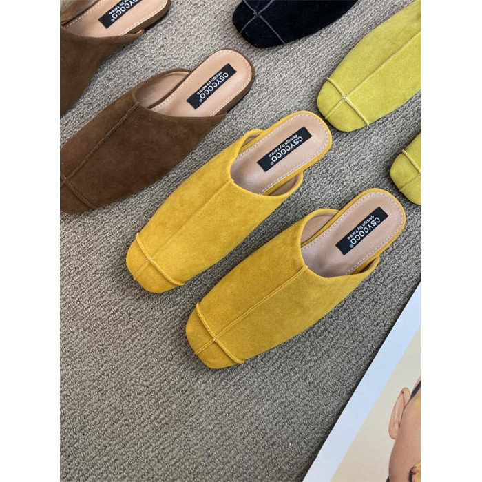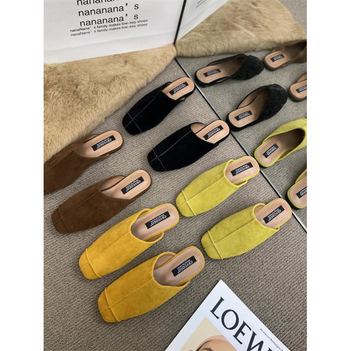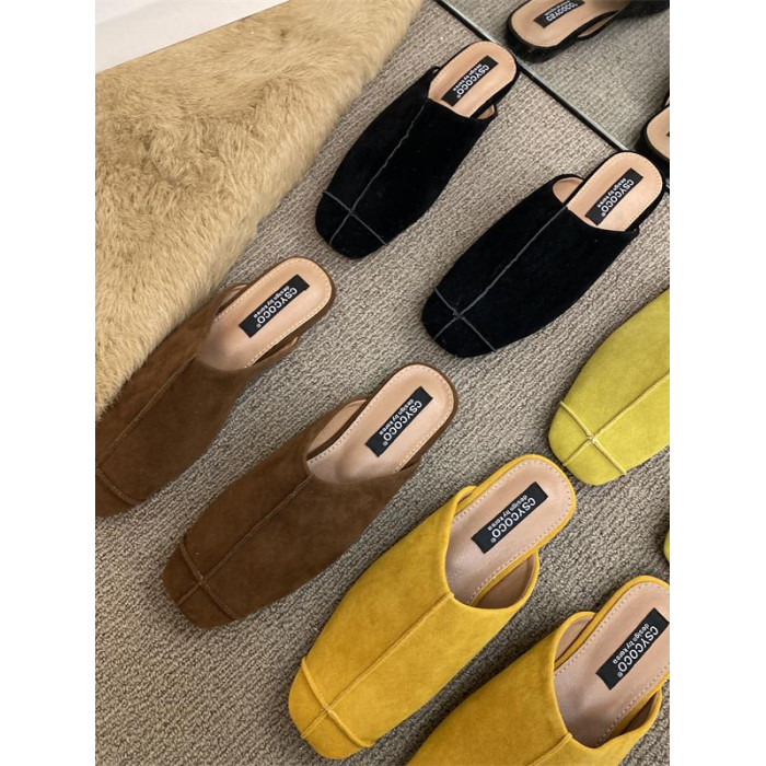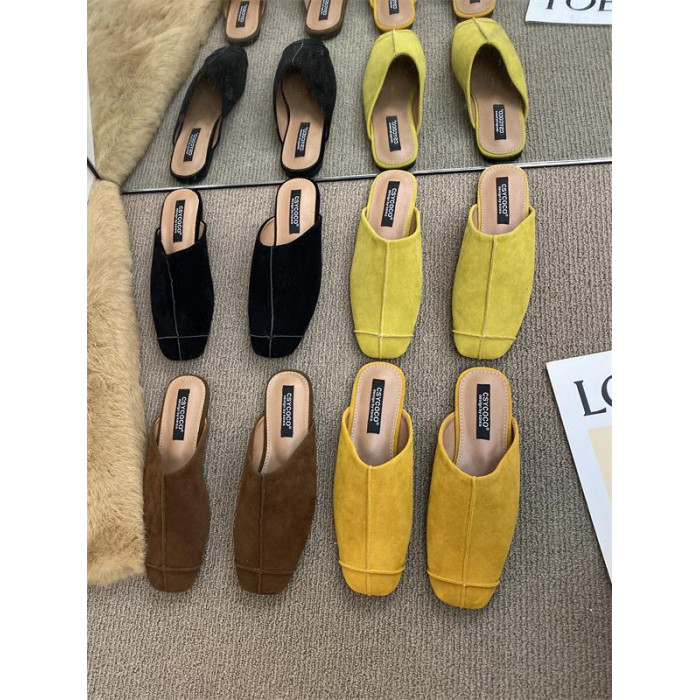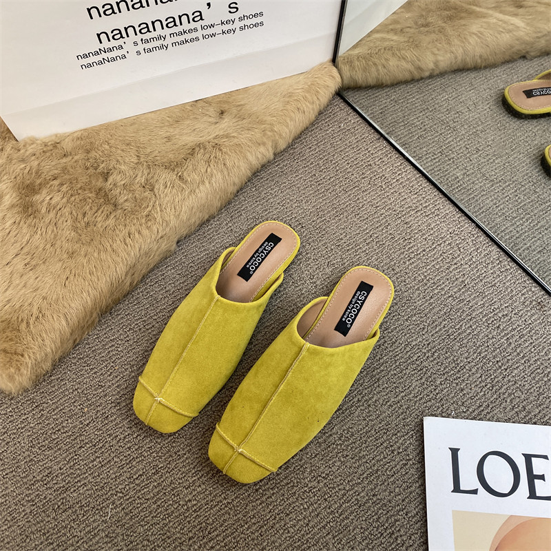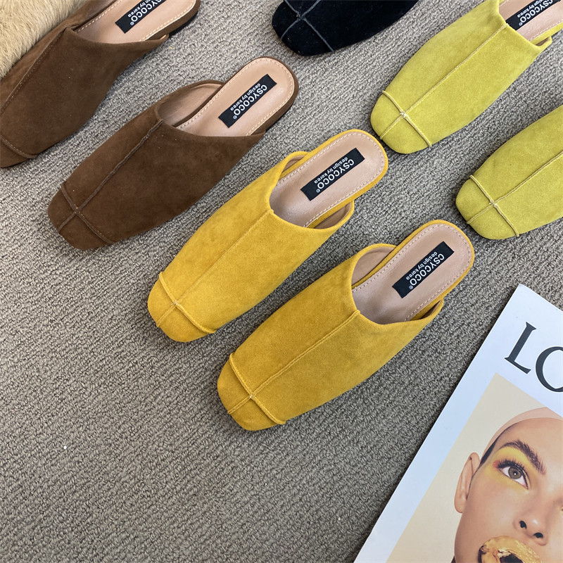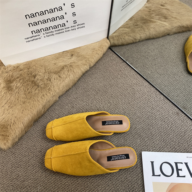 法式氣質包頭半拖鞋外穿女鞋2025新款絨面軟平底配裙子懶人穆勒鞋
