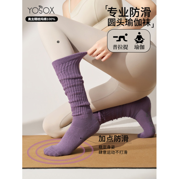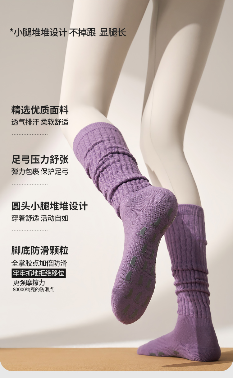 2025新款冬瑜珈襪子防滑專業女普拉提中筒堆堆襪訓練室內運動健身
