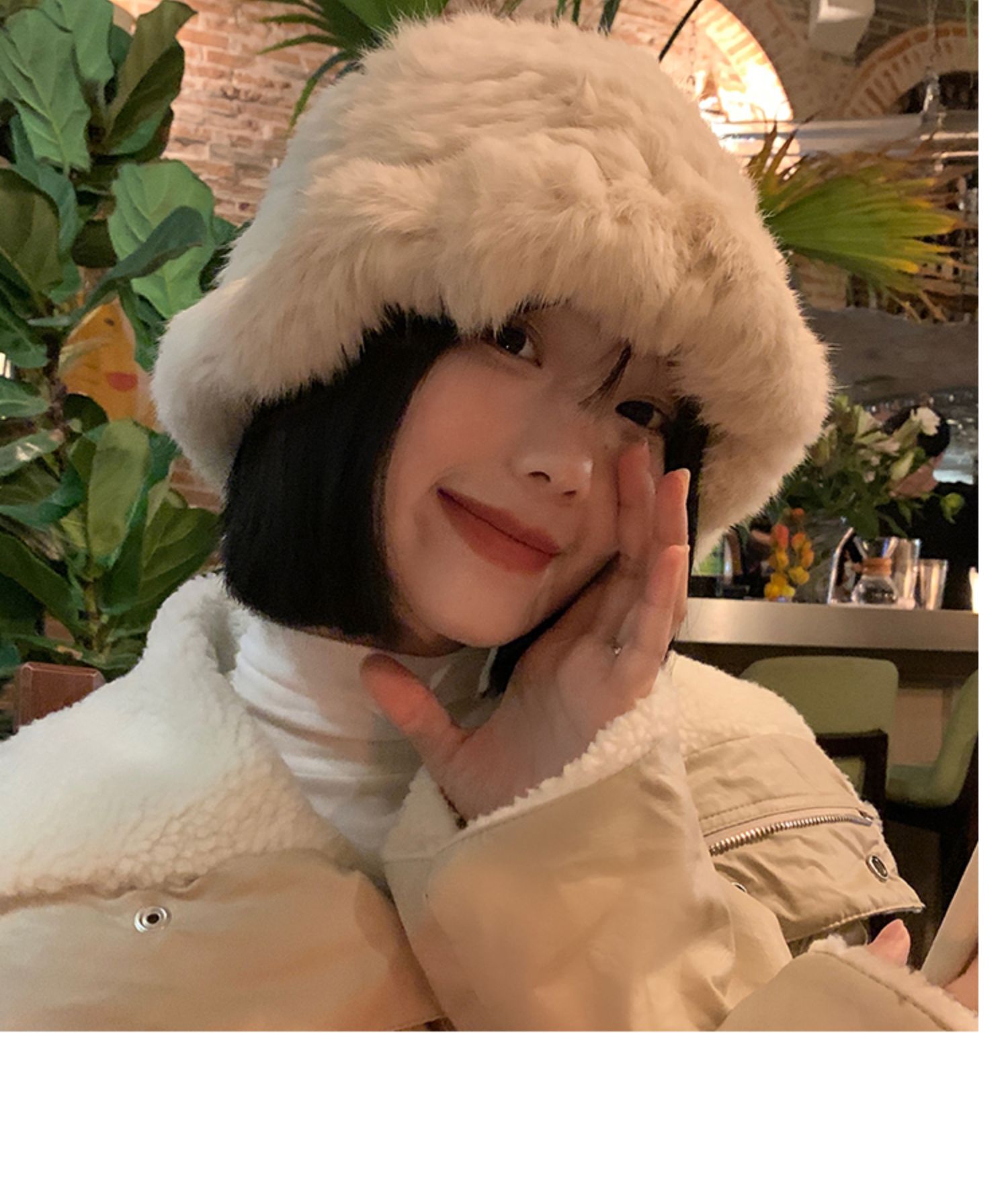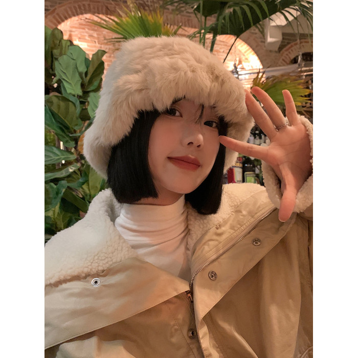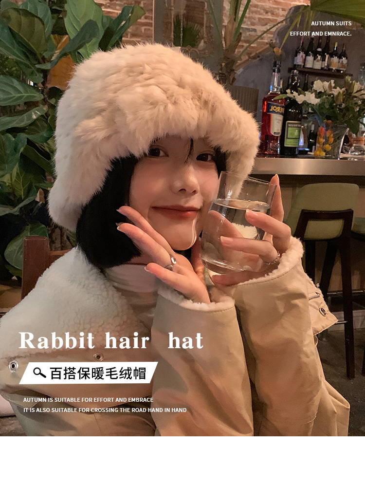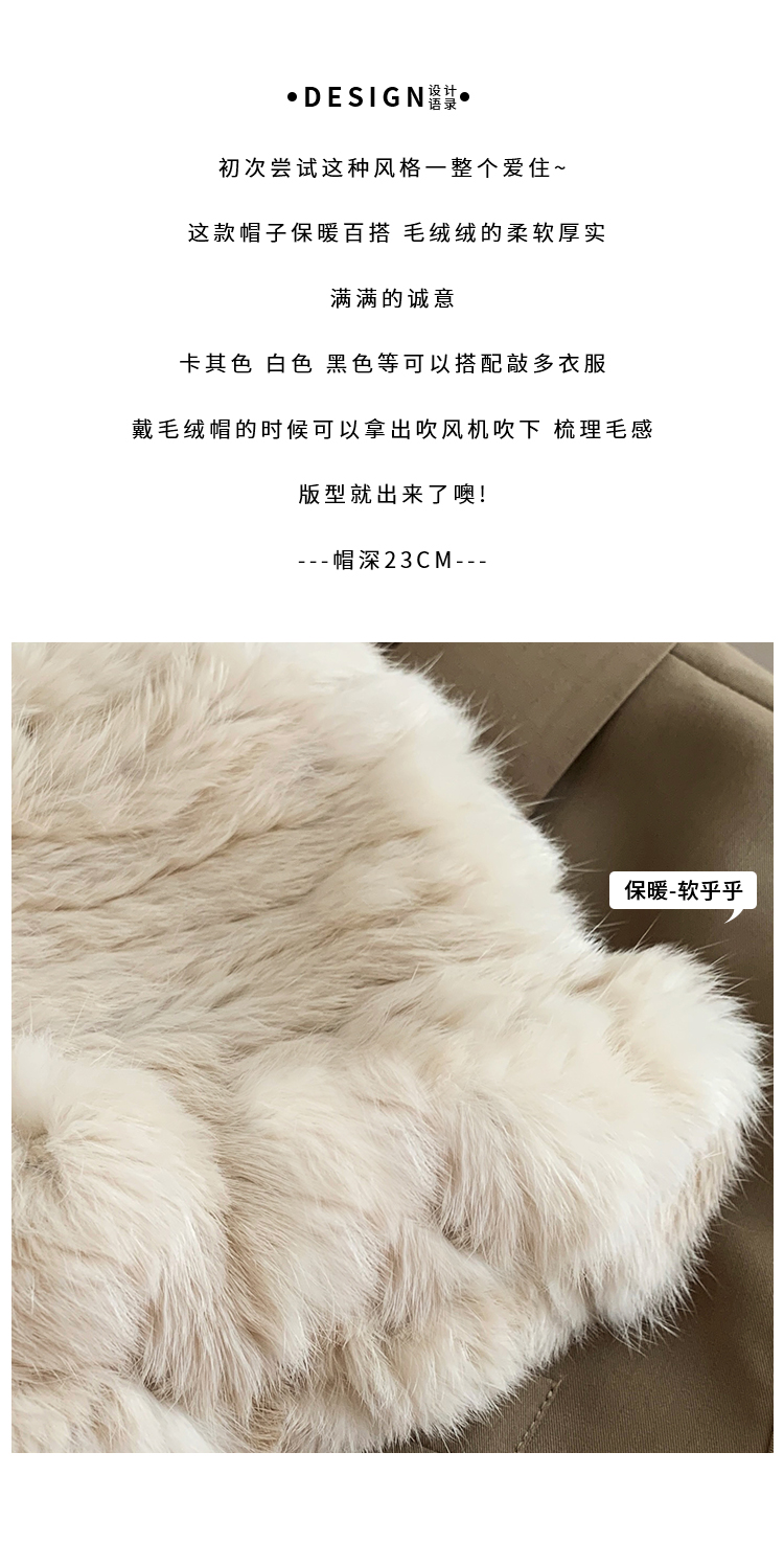 毛絨帽女兔毛漁夫帽2025冬季新款毛毛帽子保暖大頭圍顯臉小毛茸茸