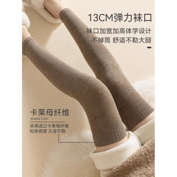 長筒護膝襪套女秋冬新款加絨加厚腿套仿羊絨大腿襪保暖加長襪孕婦