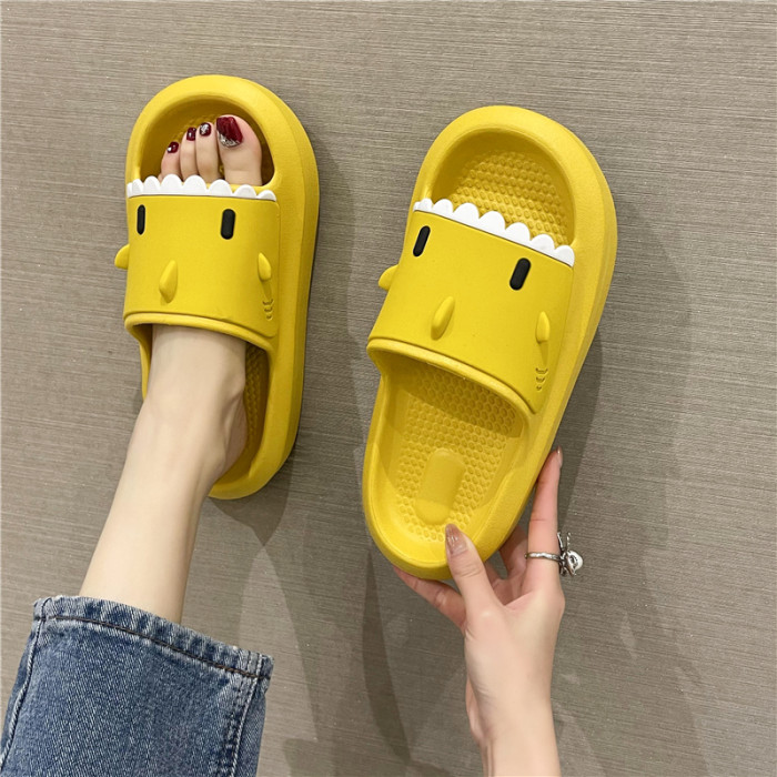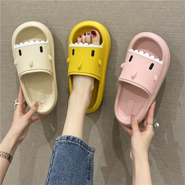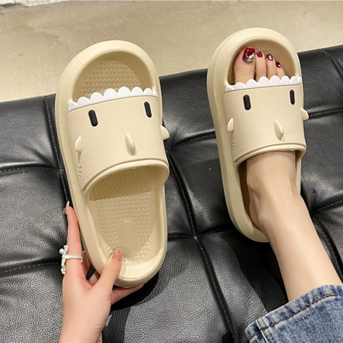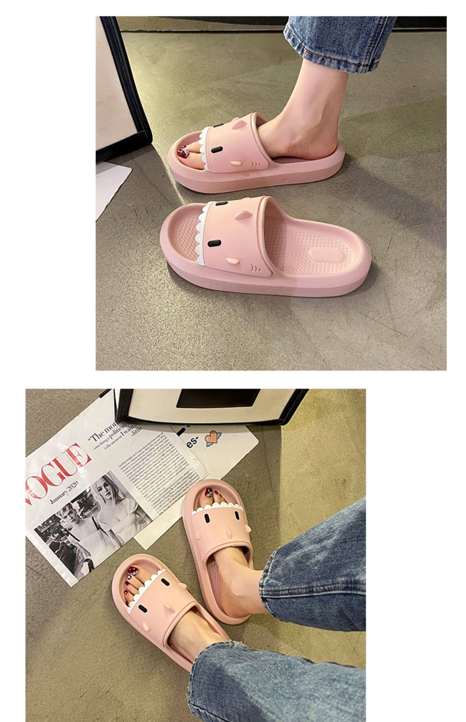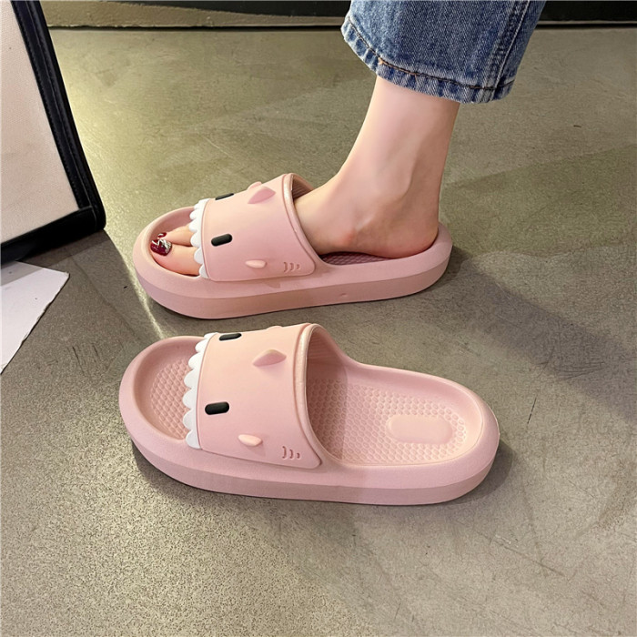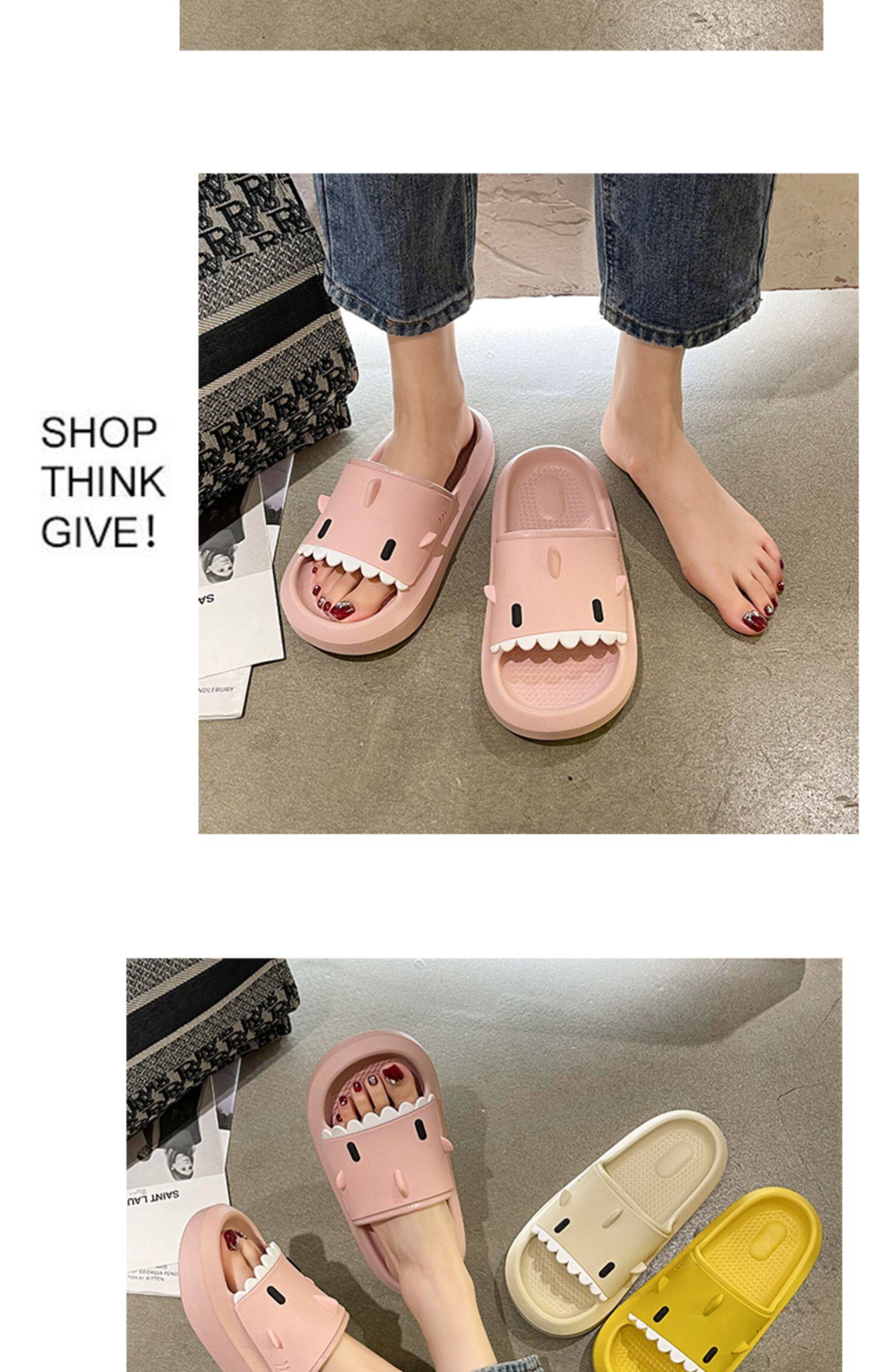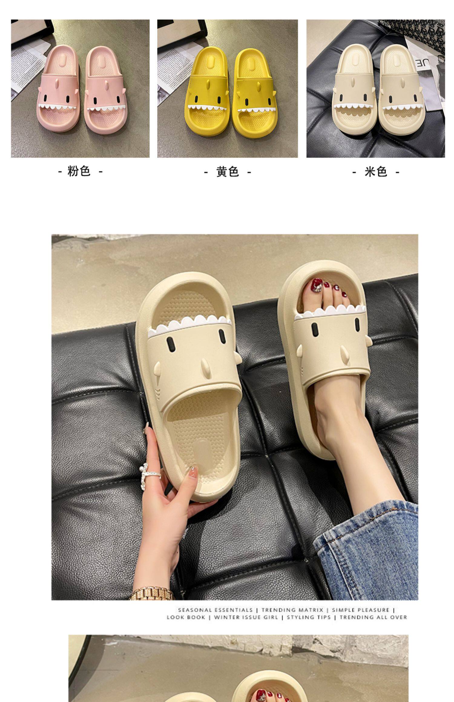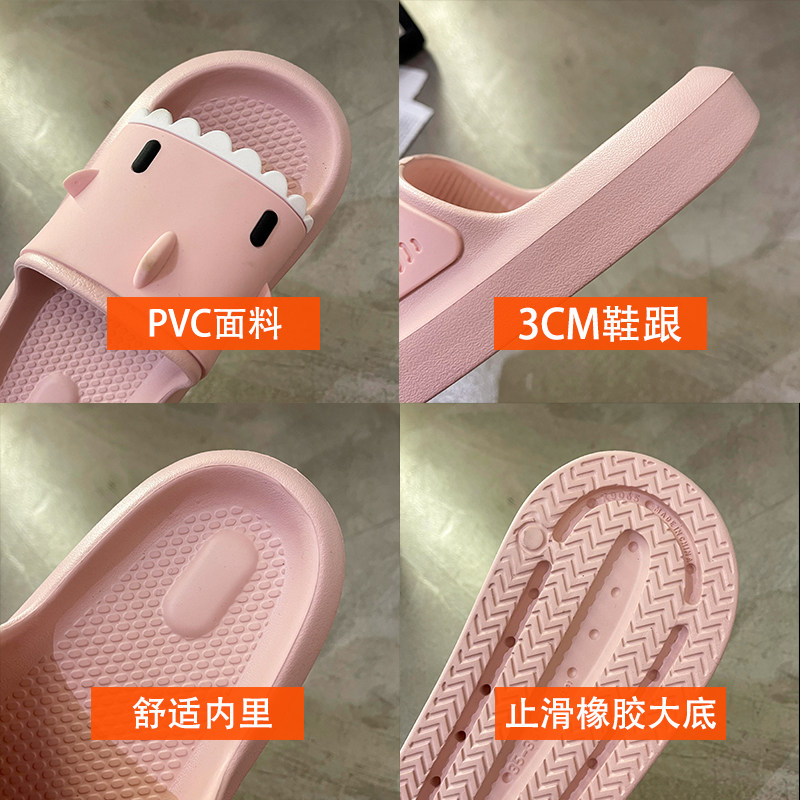 踩屎感居家可愛鯊魚拖鞋女夏時尚外穿厚底室內卡通防滑沙灘涼拖鞋