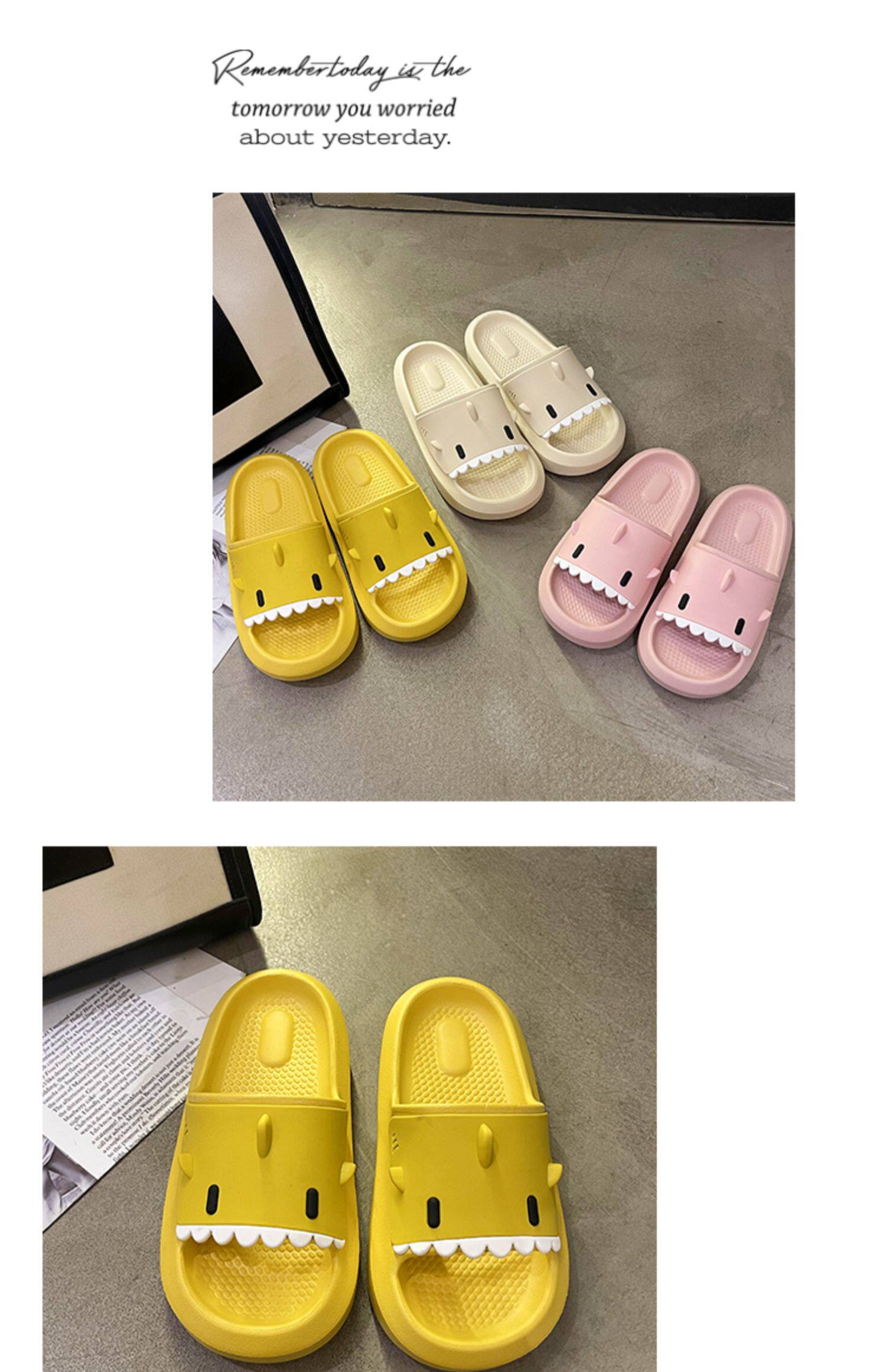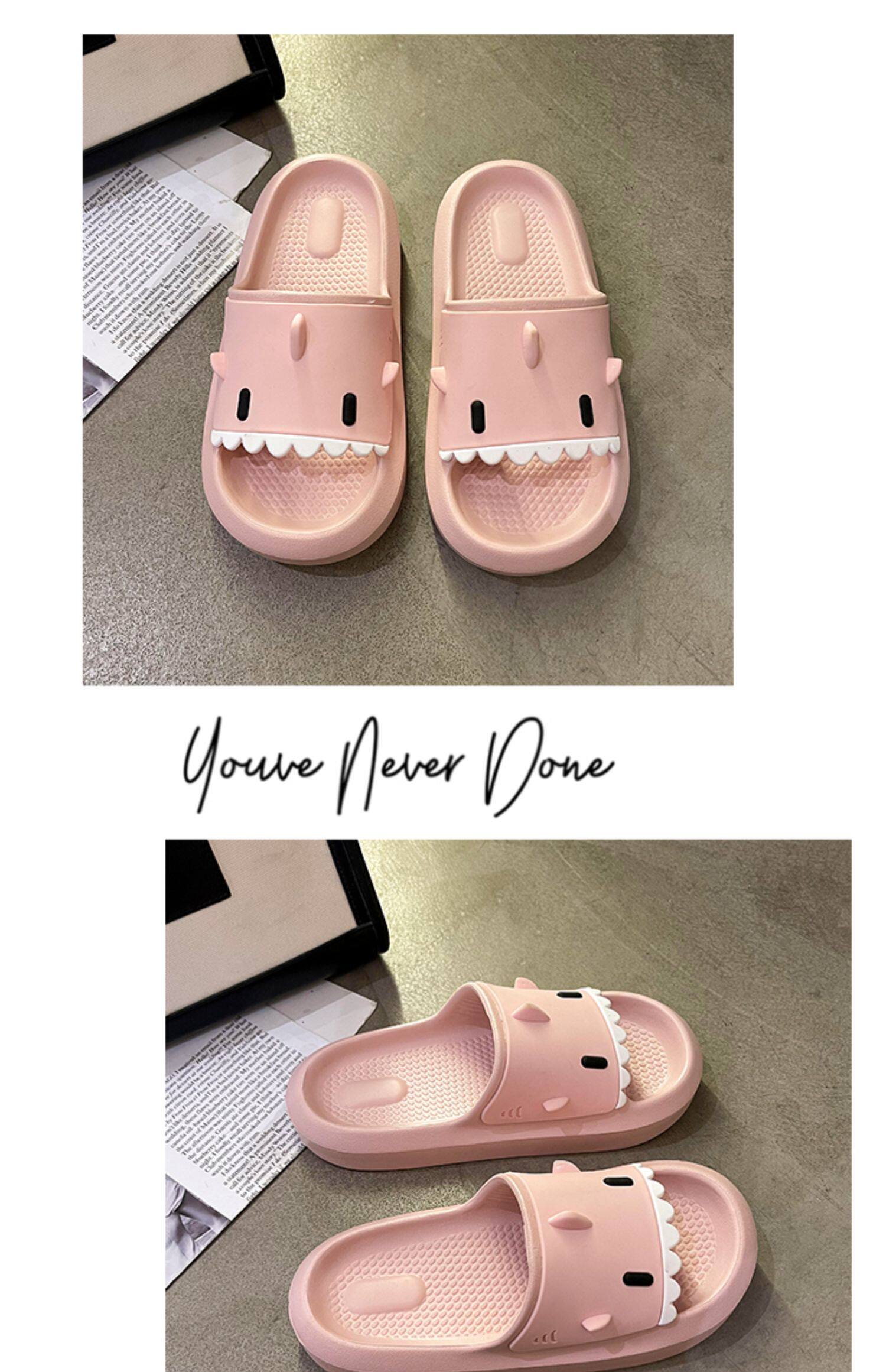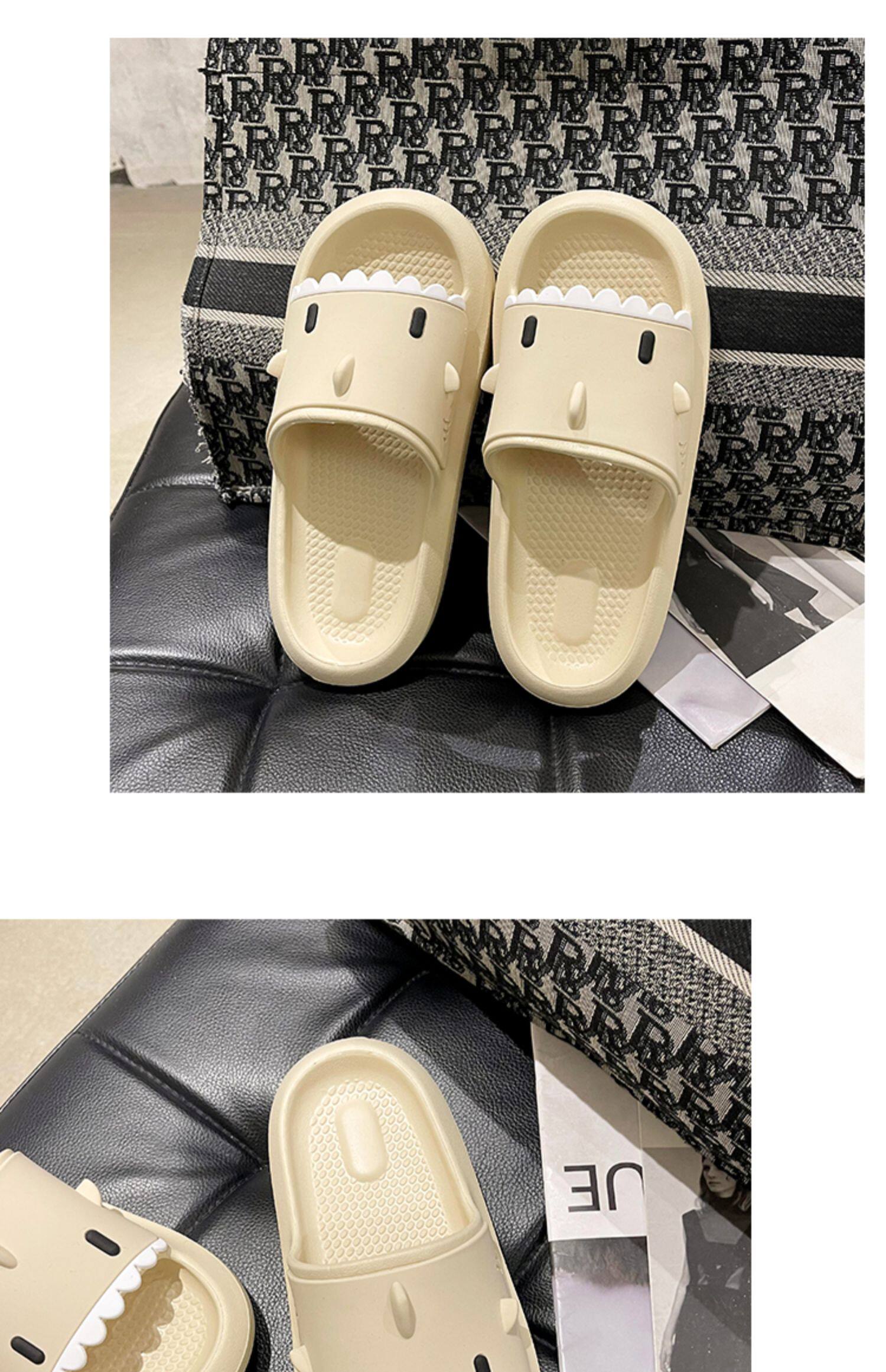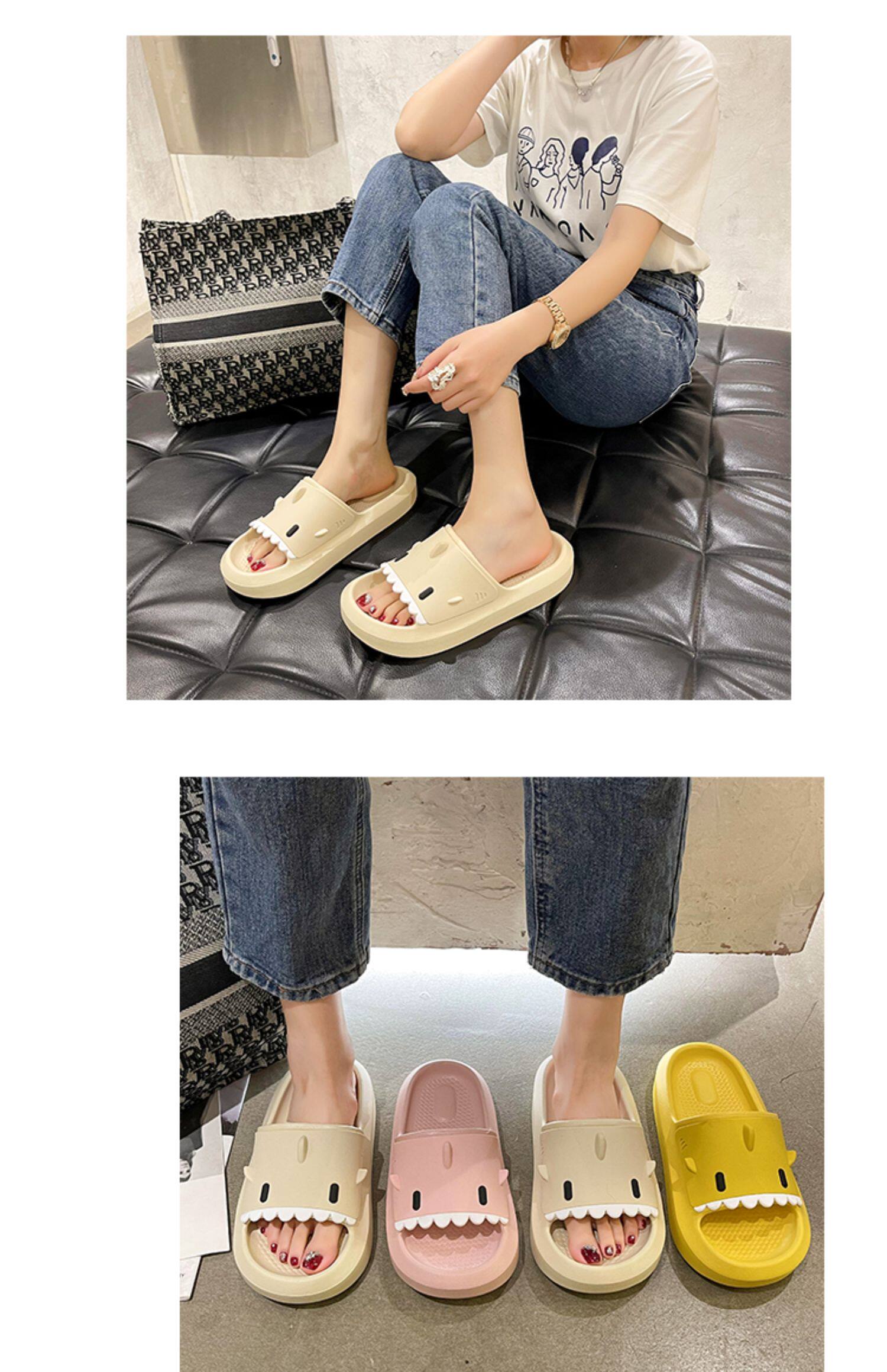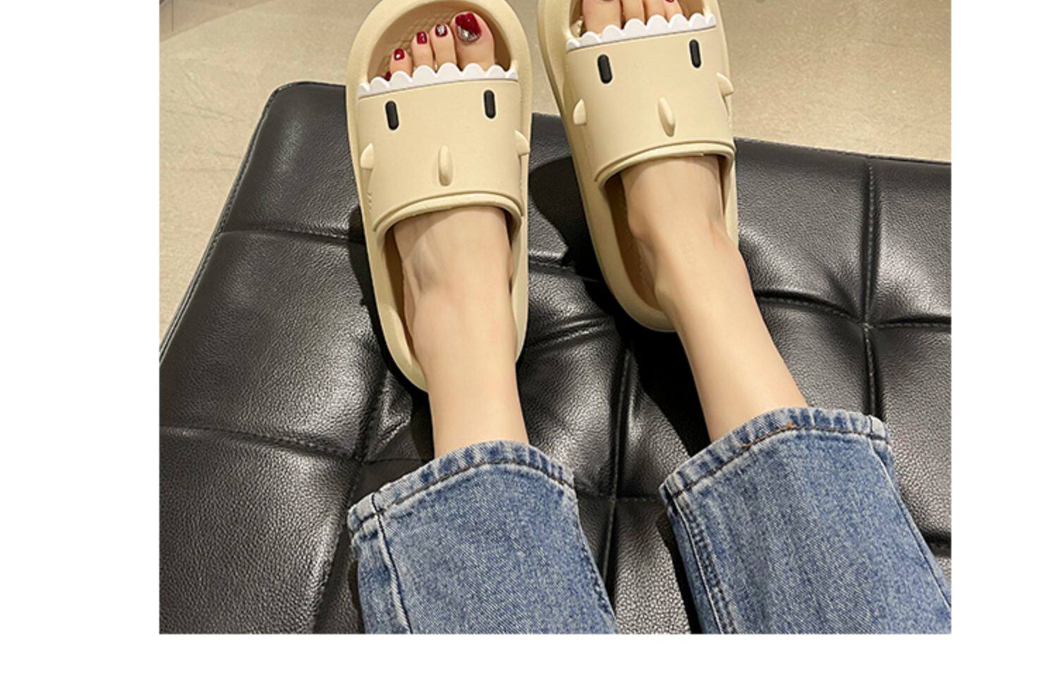 踩屎感居家可愛鯊魚拖鞋女夏時尚外穿厚底室內卡通防滑沙灘涼拖鞋