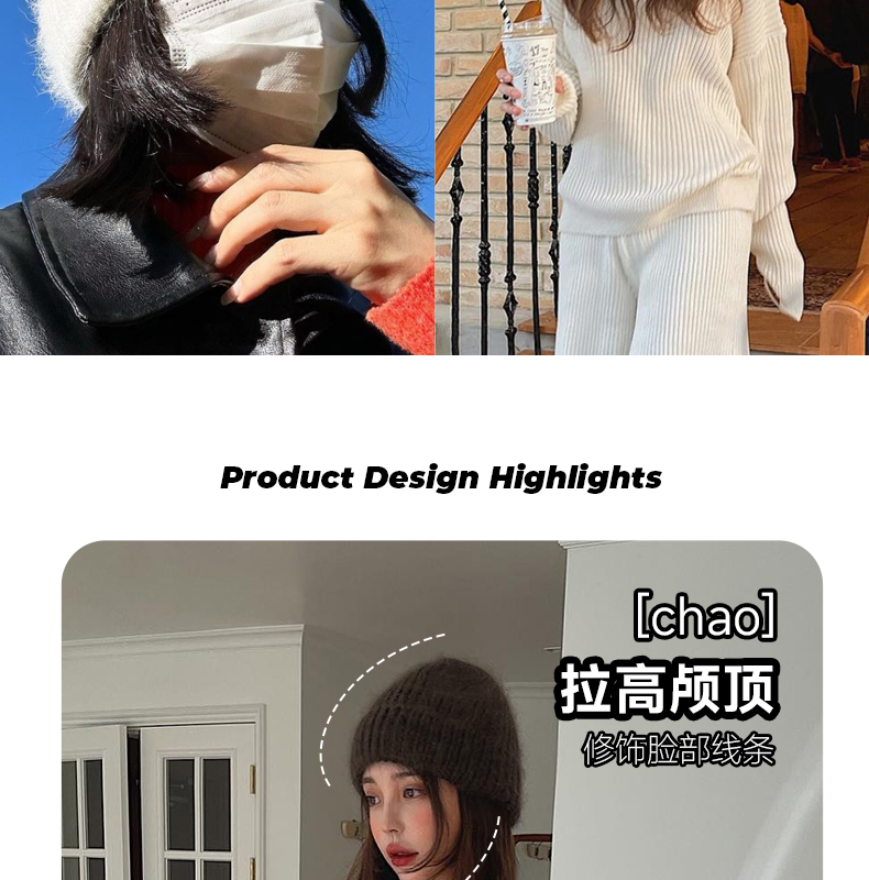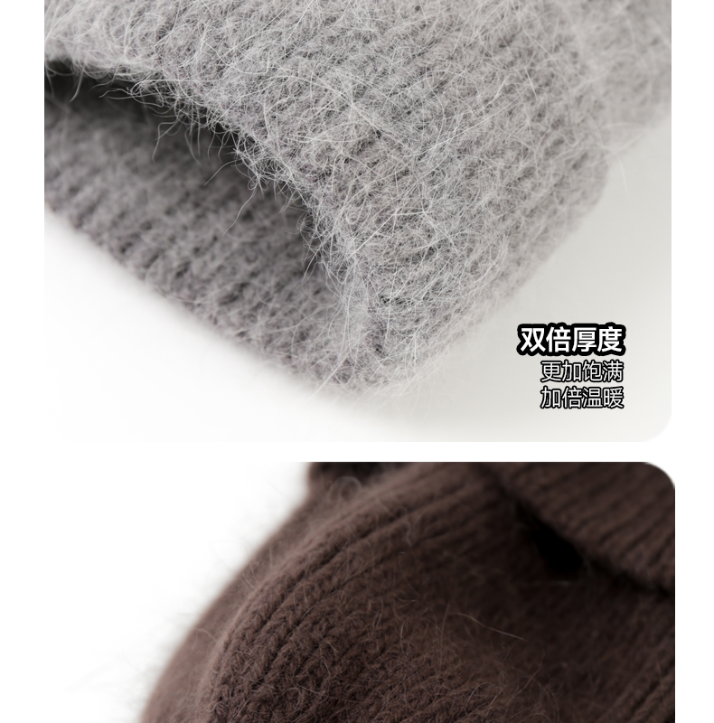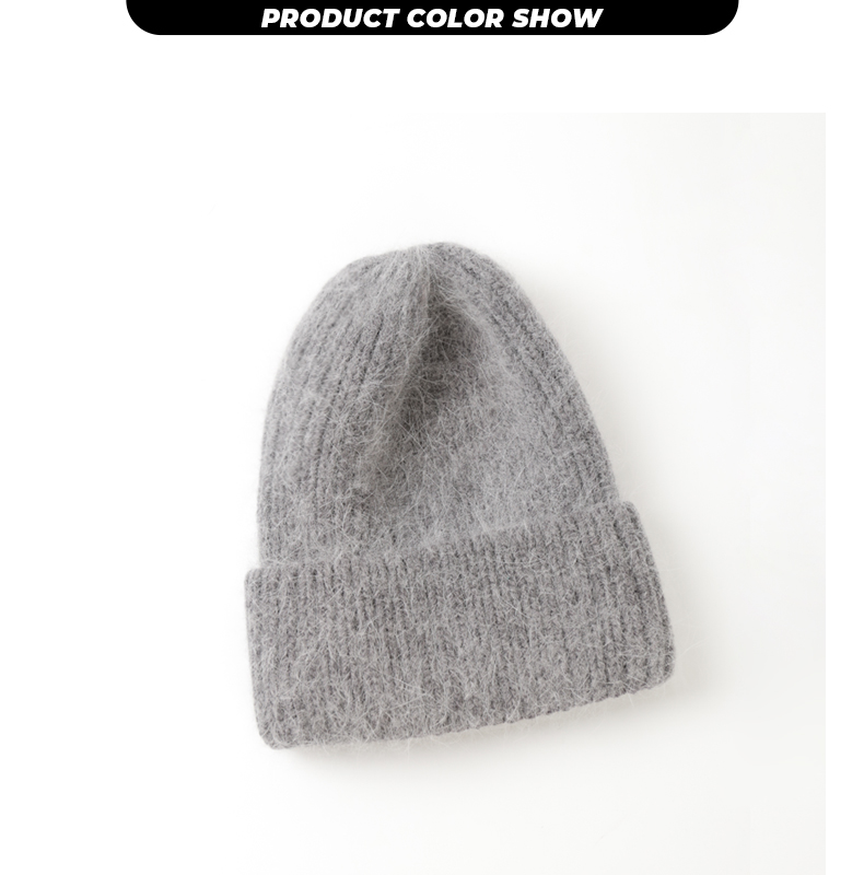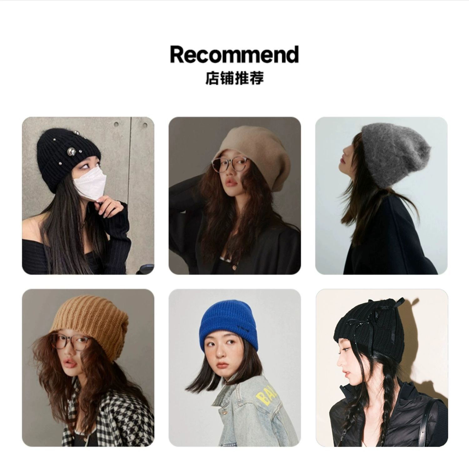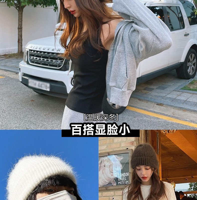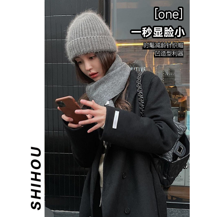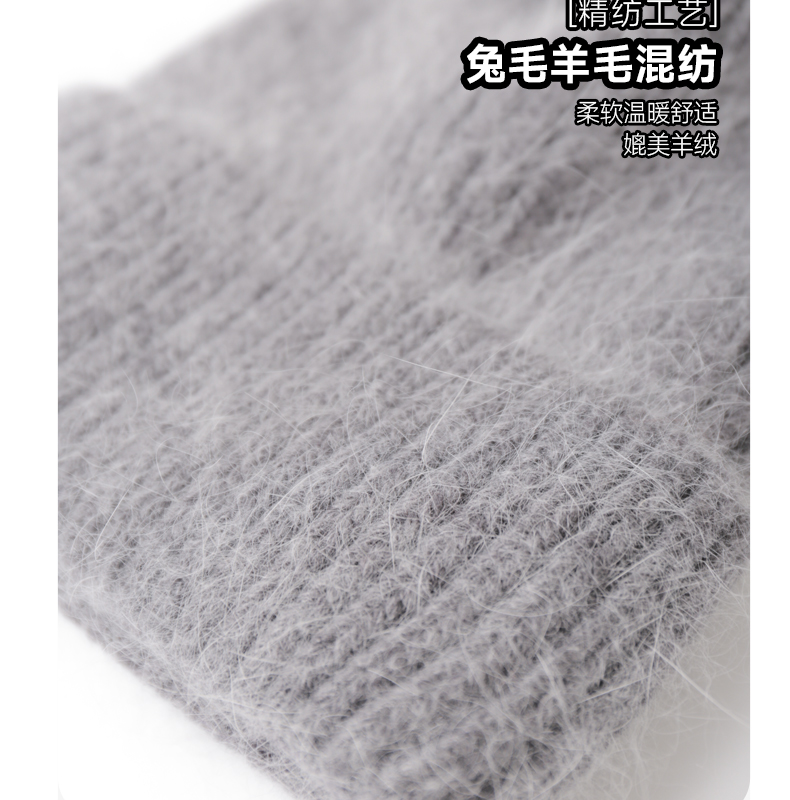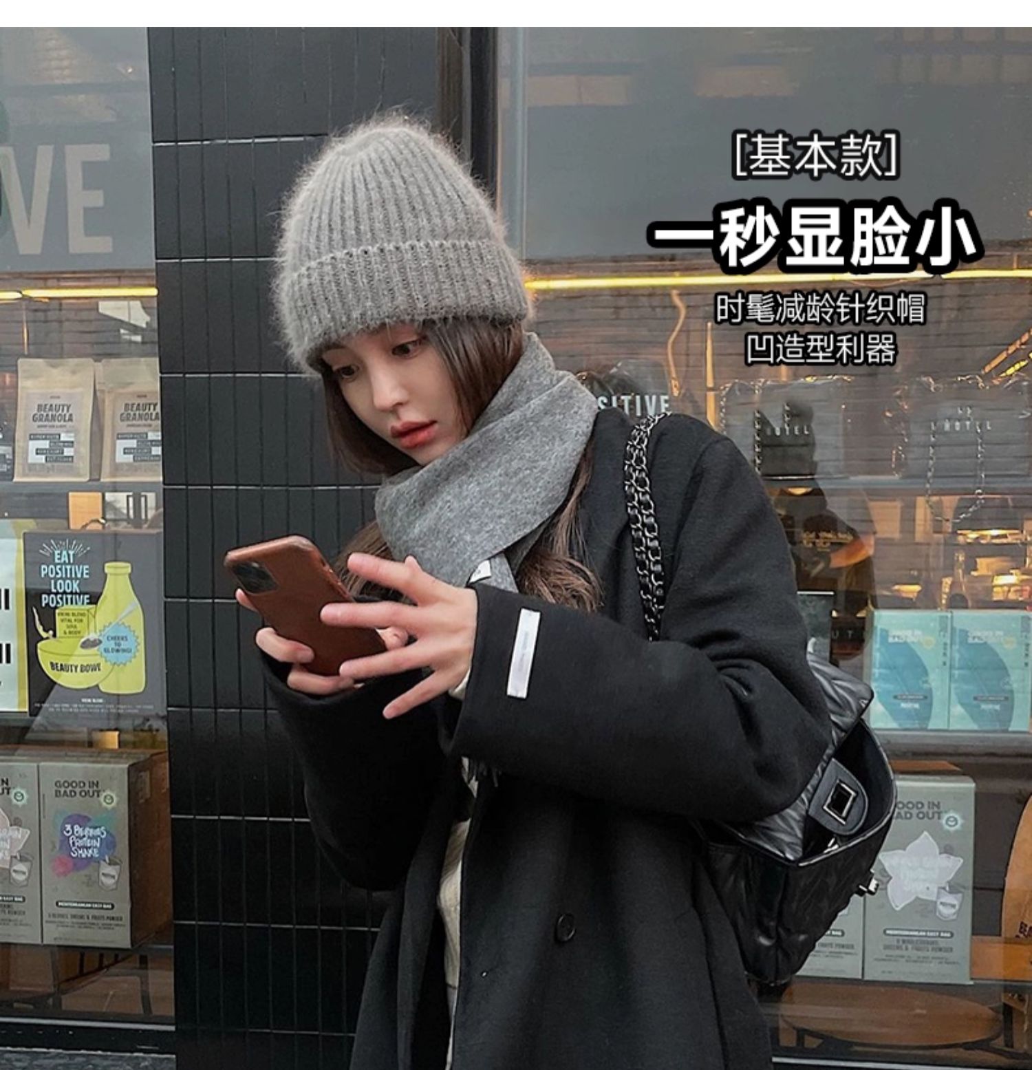 兔毛帽子女冬毛線帽保暖秋款羊毛針織帽大頭圍美式冷帽護耳顯臉小