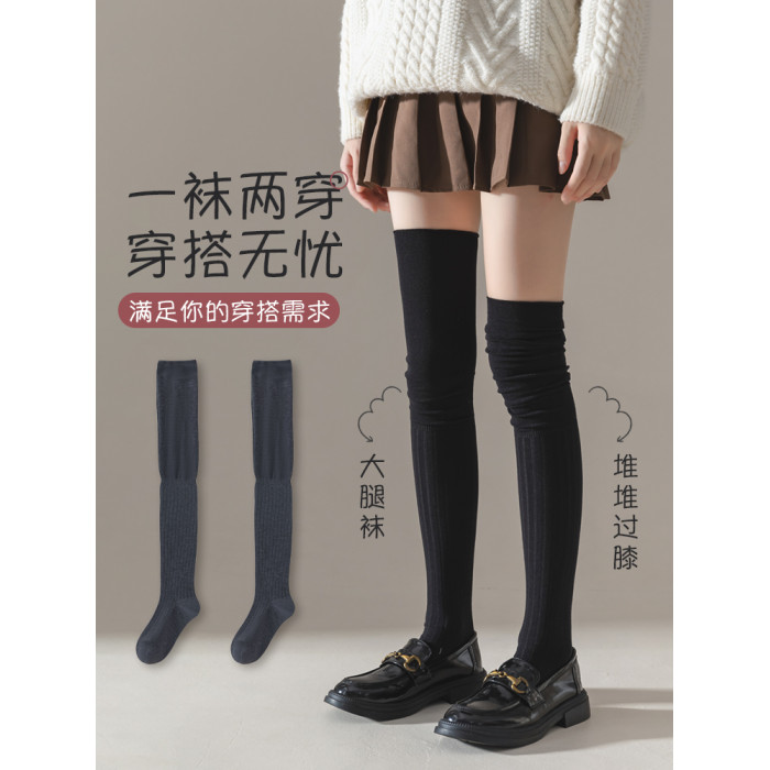長筒堆堆襪女秋冬款純棉長腿襪女士護膝襪jk長襪冬季高筒長靴襪子