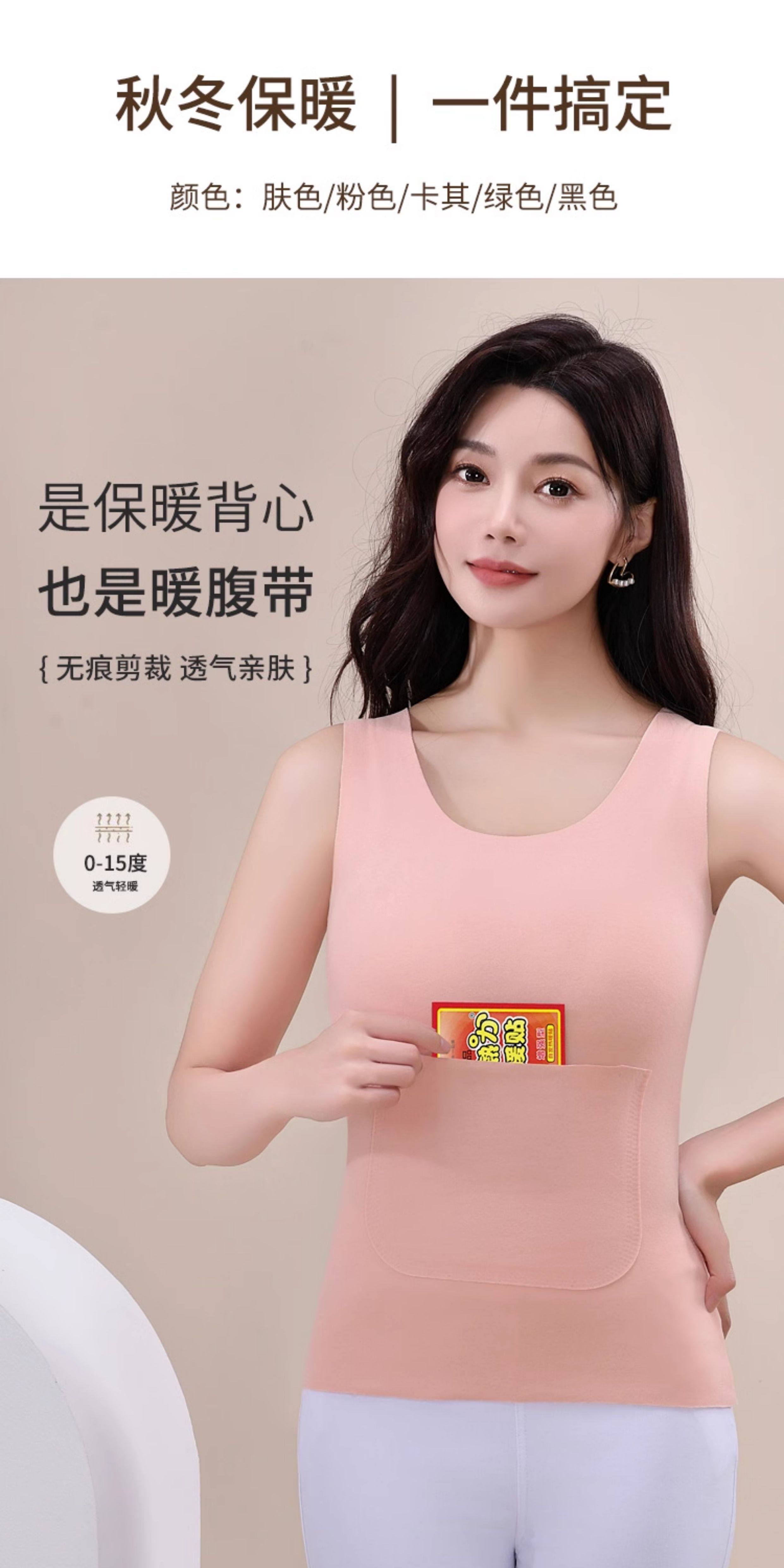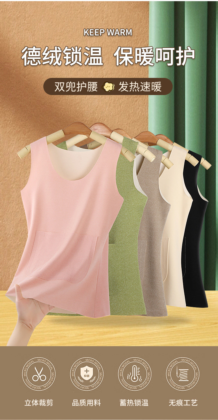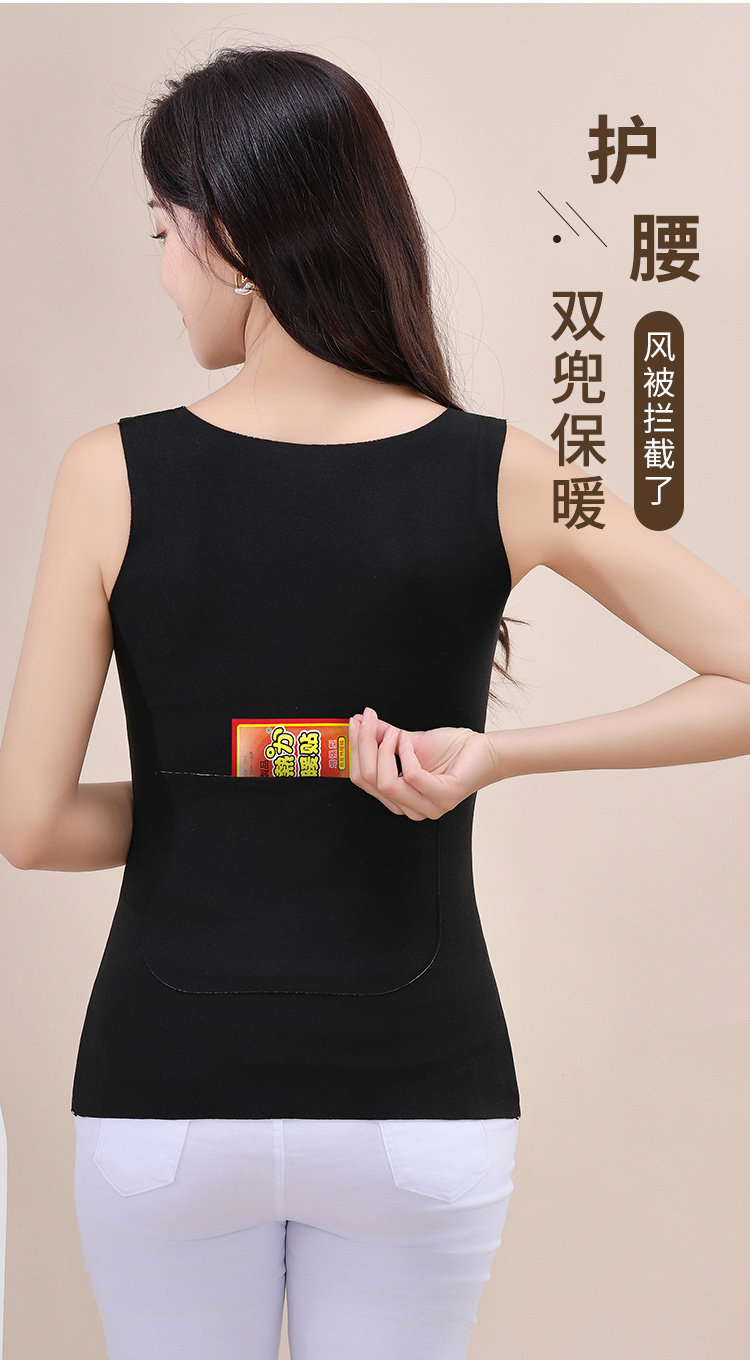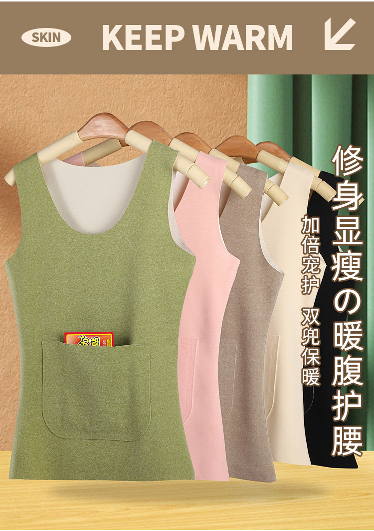 德絨髮熱無痕保暖背心女前後帶口袋雙兜護腰護肚子加絨內衣秋冬季