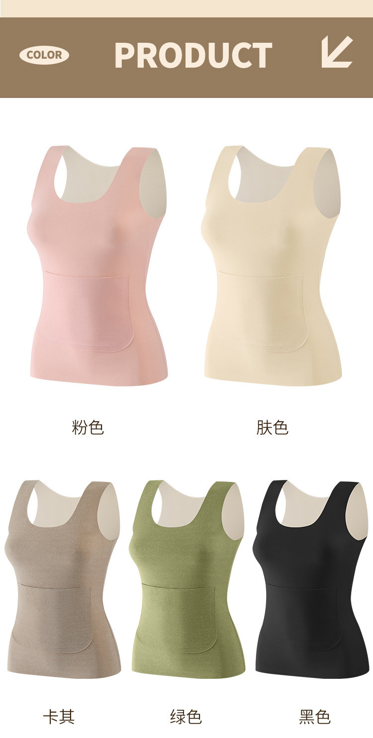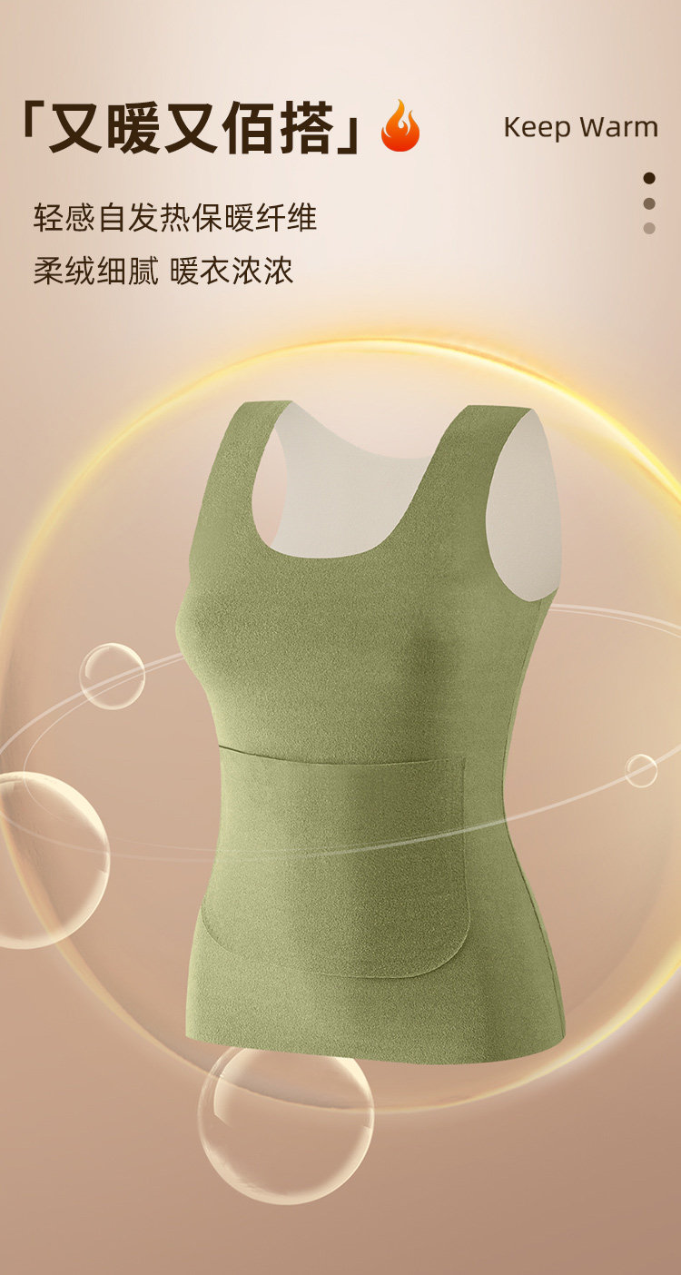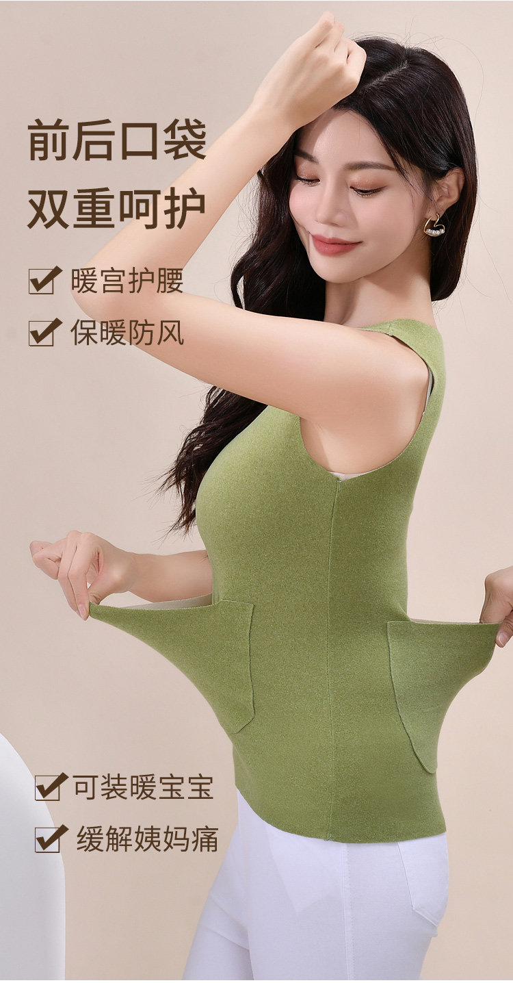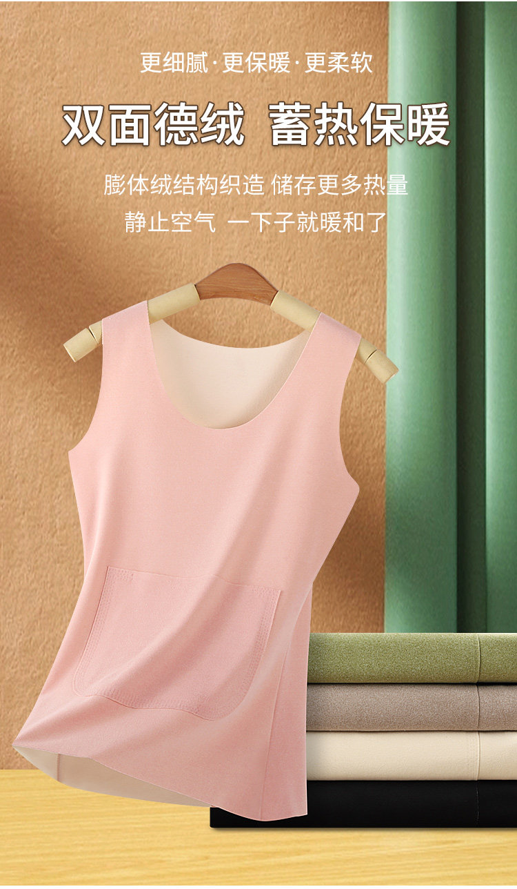 德絨髮熱無痕保暖背心女前後帶口袋雙兜護腰護肚子加絨內衣秋冬季