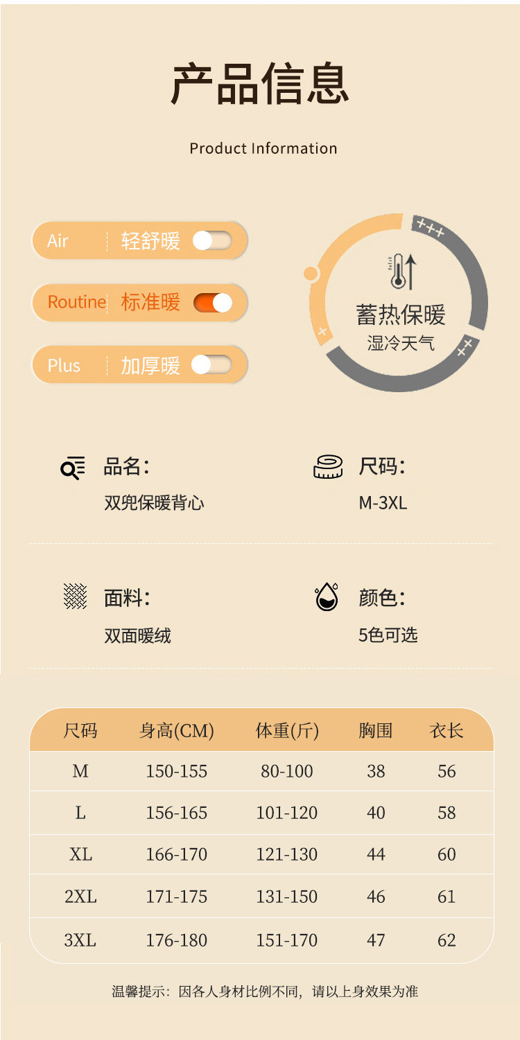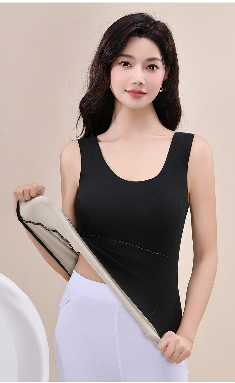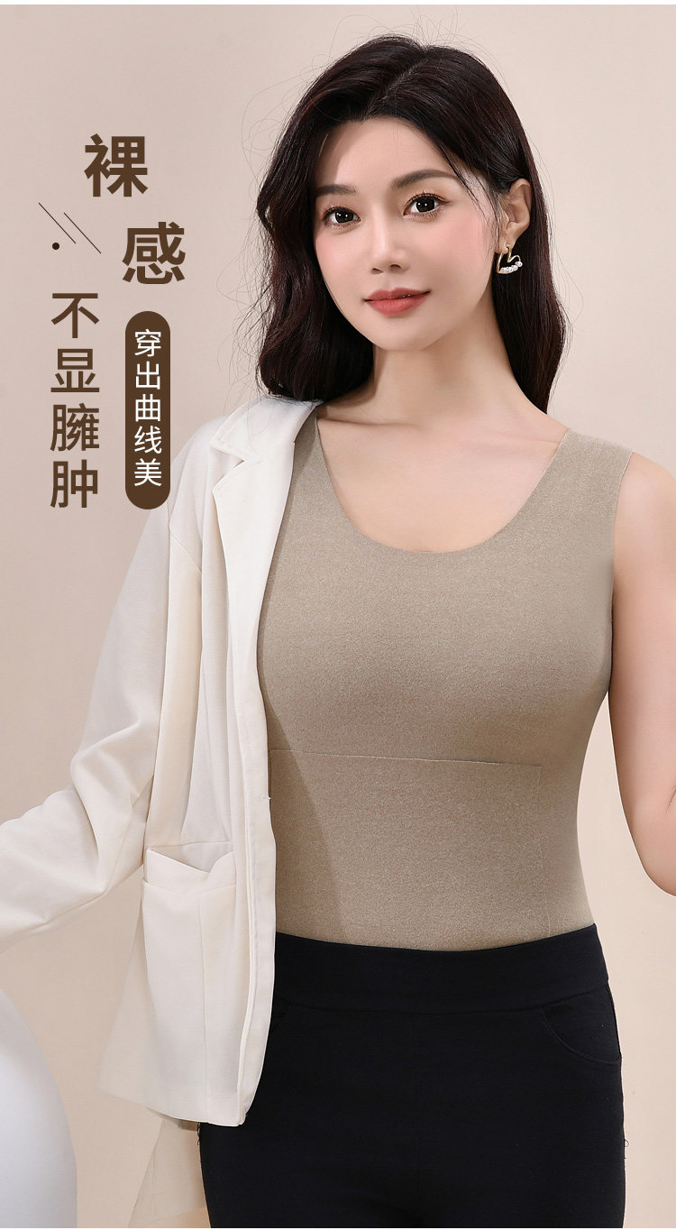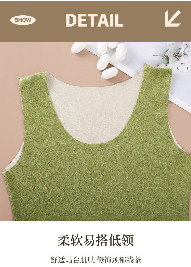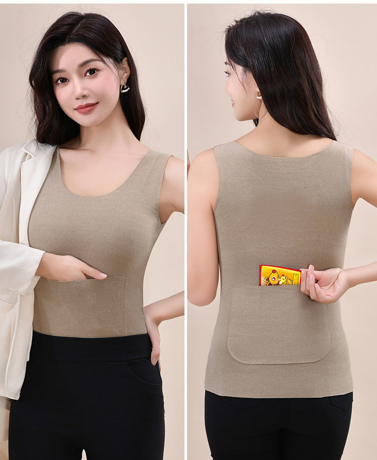 德絨髮熱無痕保暖背心女前後帶口袋雙兜護腰護肚子加絨內衣秋冬季