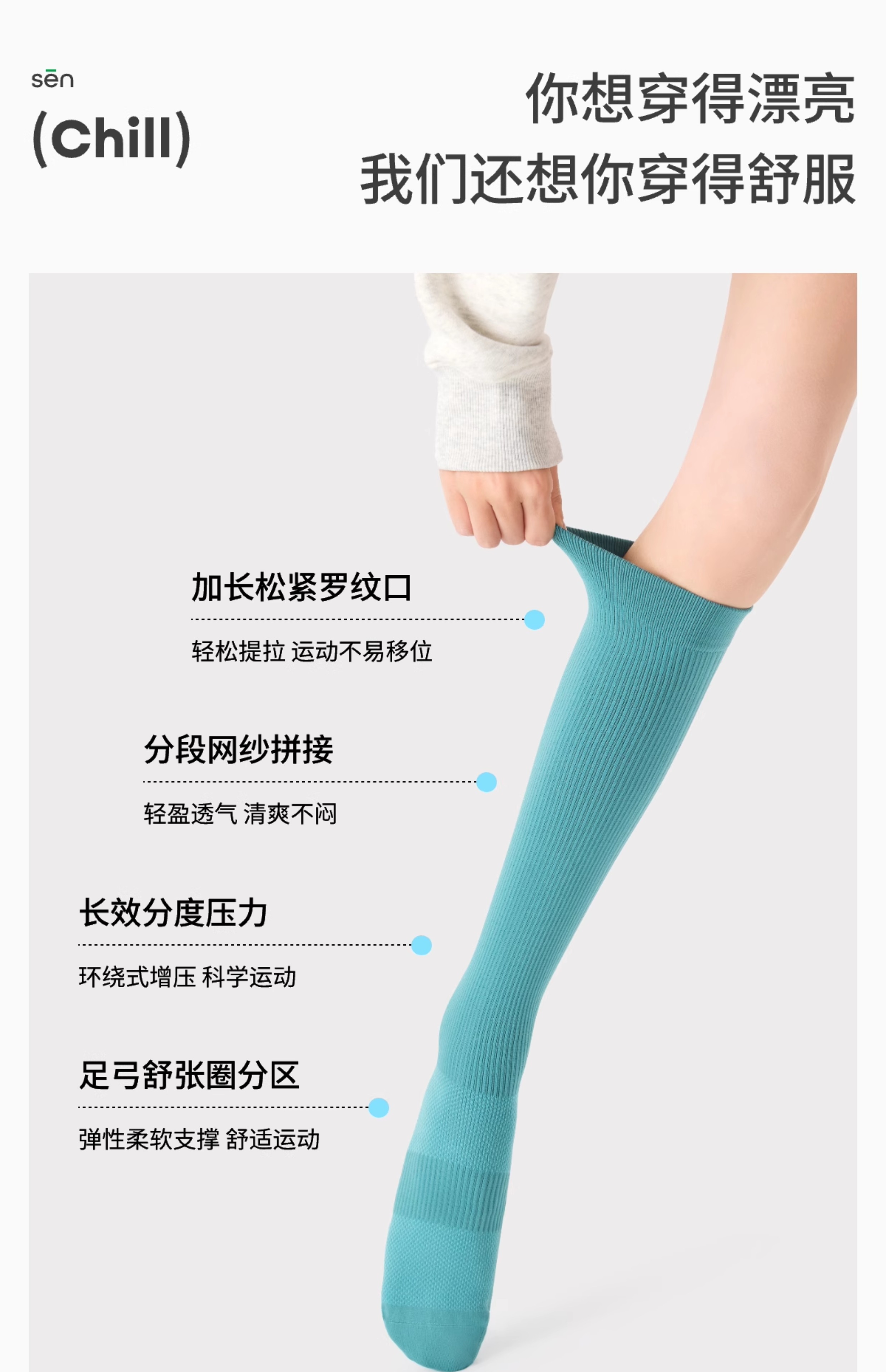 上森橙色壓力襪女瘦腿多巴胺高筒小腿長襪飛機健身飛機壓縮襪登山