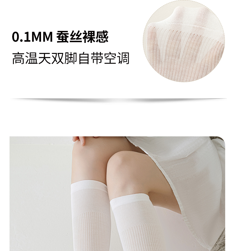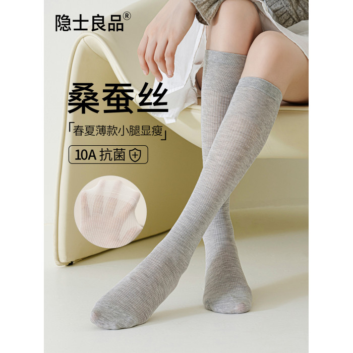 桑蠶絲小腿襪子女夏薄款顯瘦白色長筒襪防下滑女士護膝襪套堆堆襪