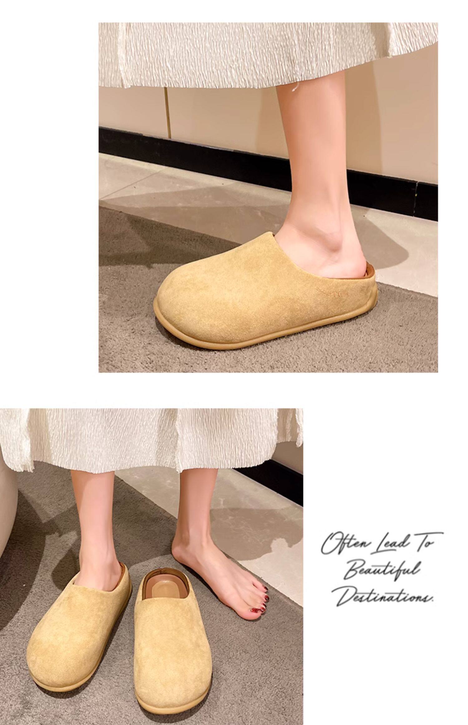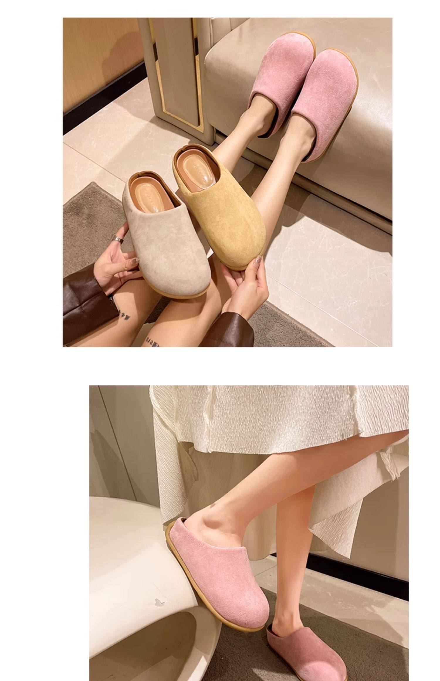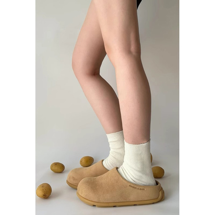 醜萌小土豆勃肯鞋女2025新款秋季外穿厚底懶人鞋一腳蹬包頭半拖鞋