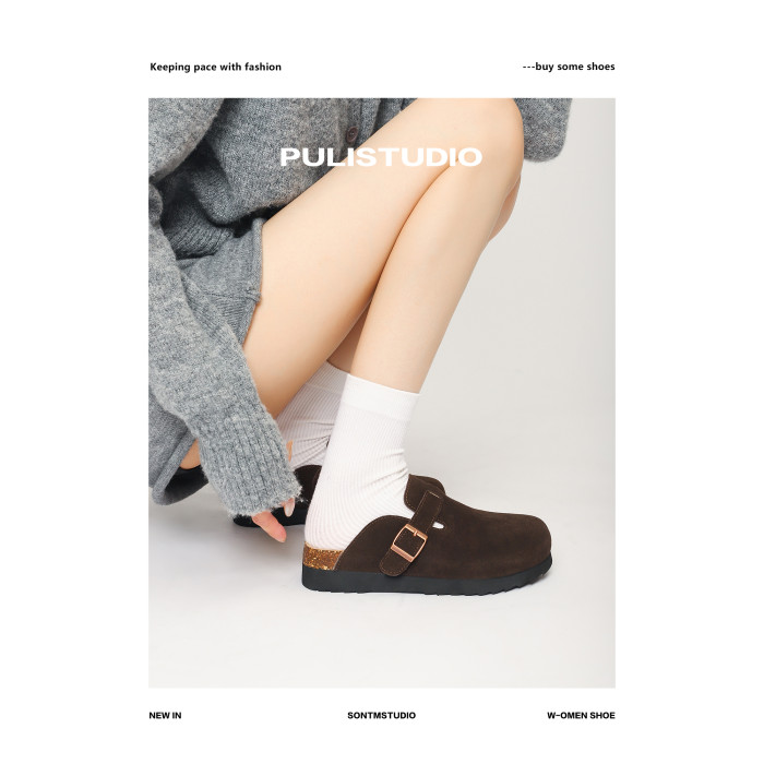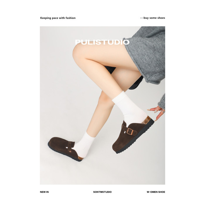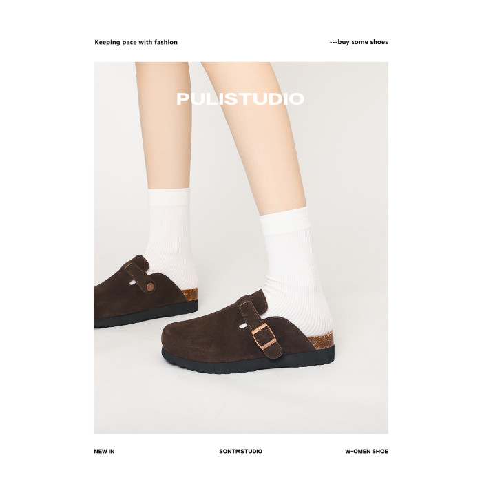 真皮軟木底勃肯鞋女拖鞋外穿大碼男女同款博肯鞋小個子包頭半拖