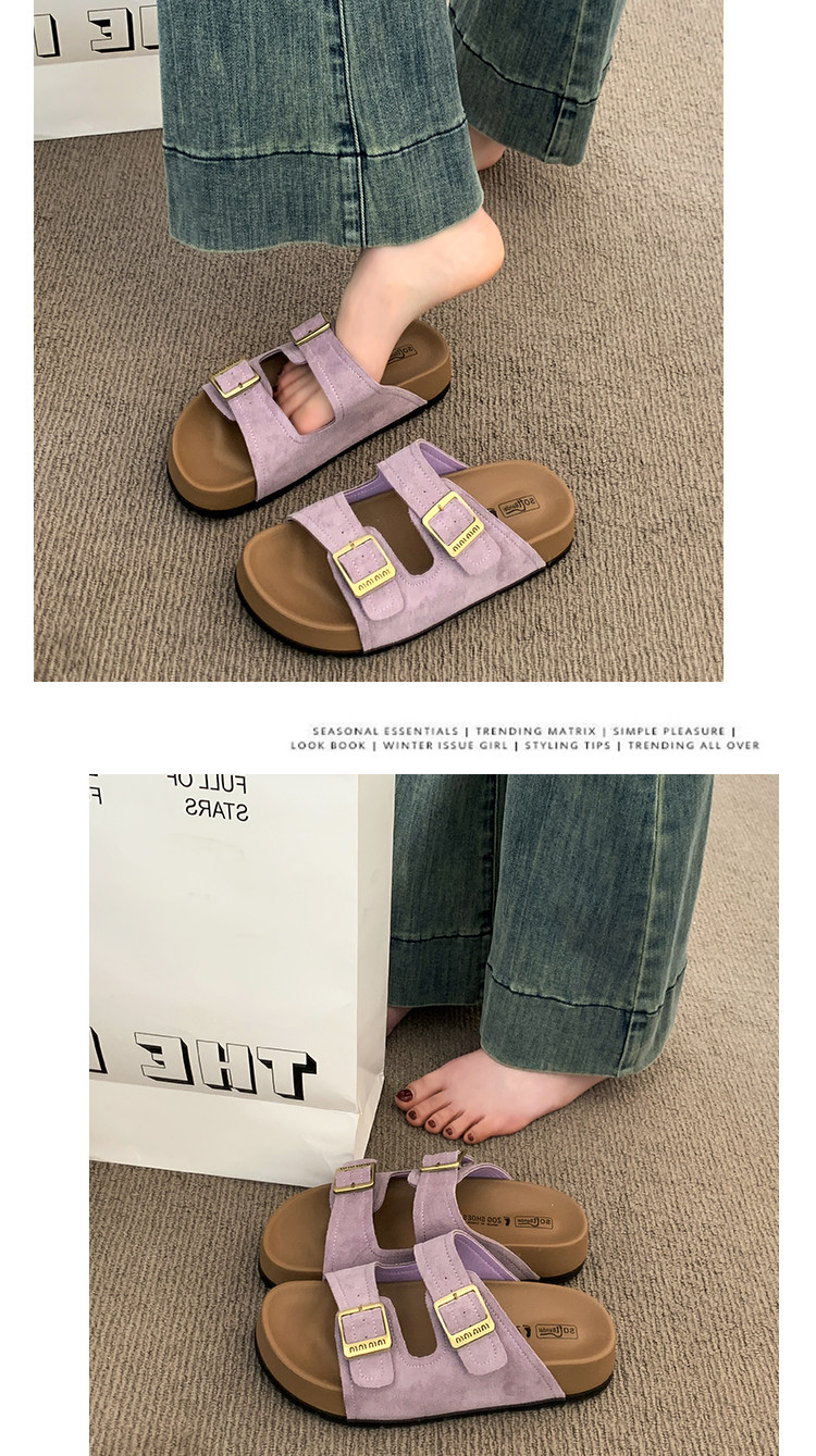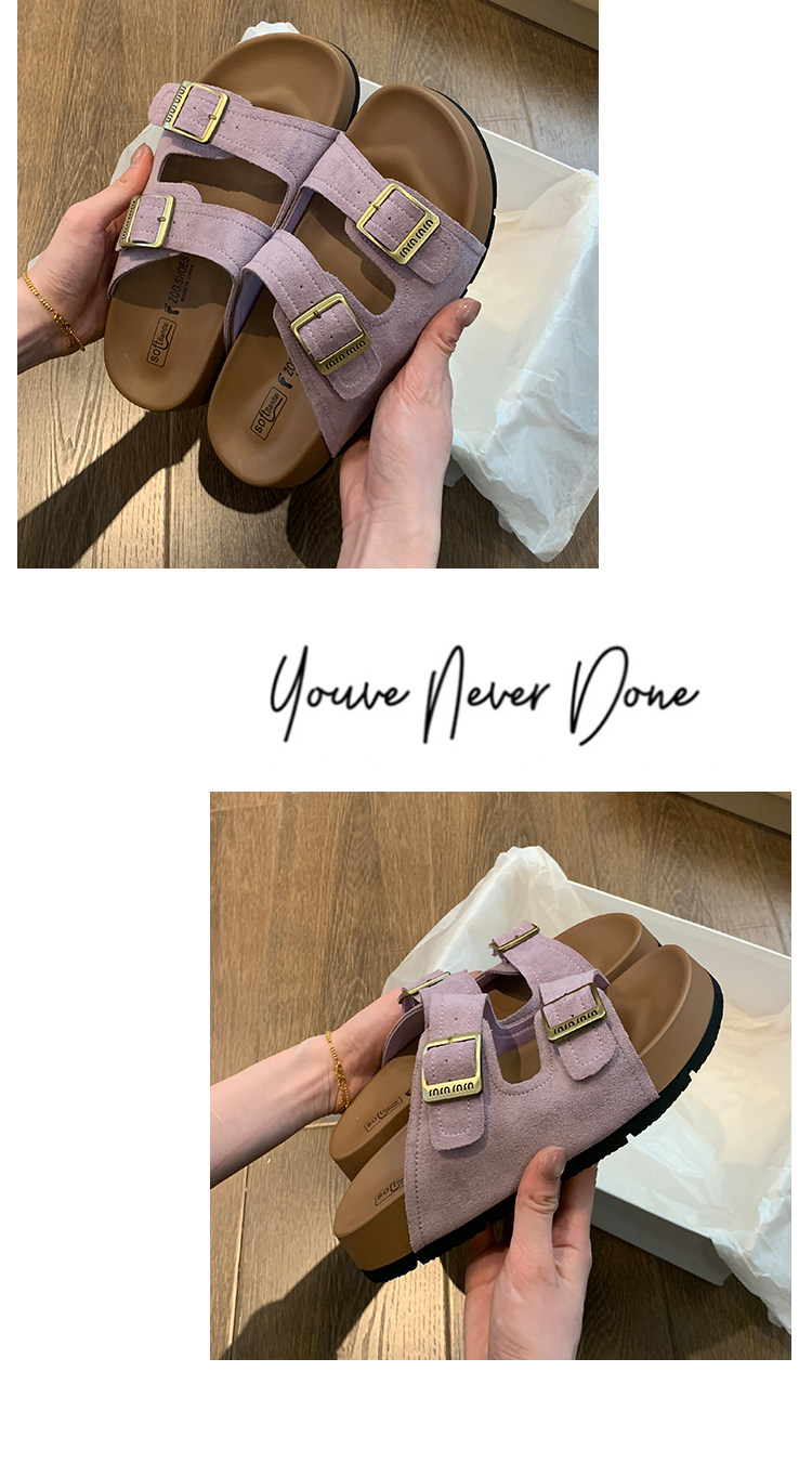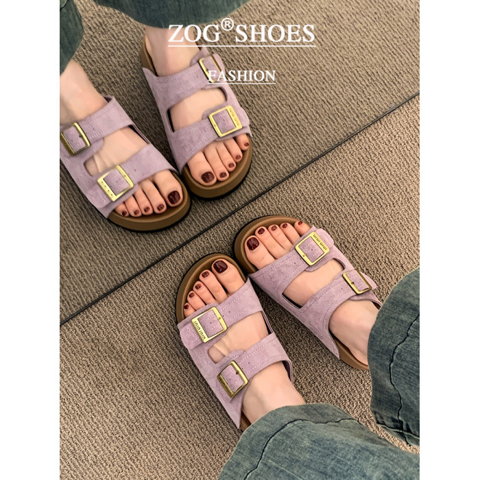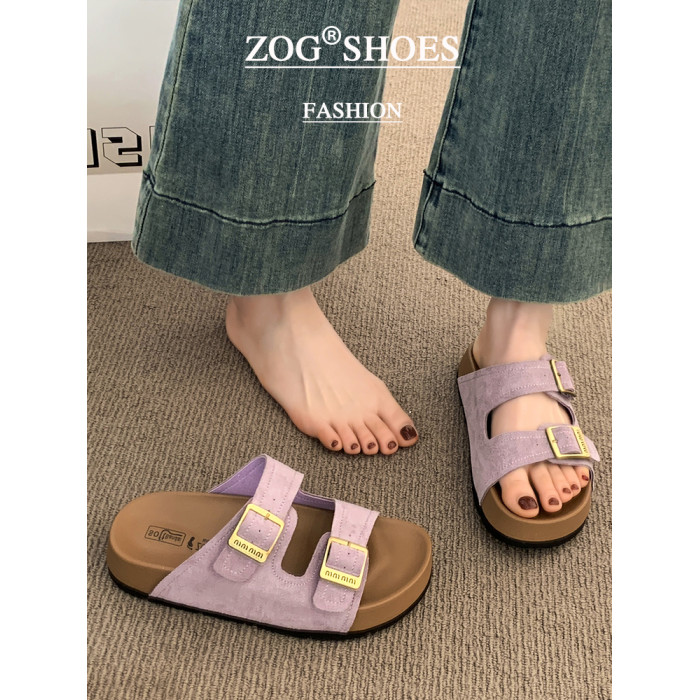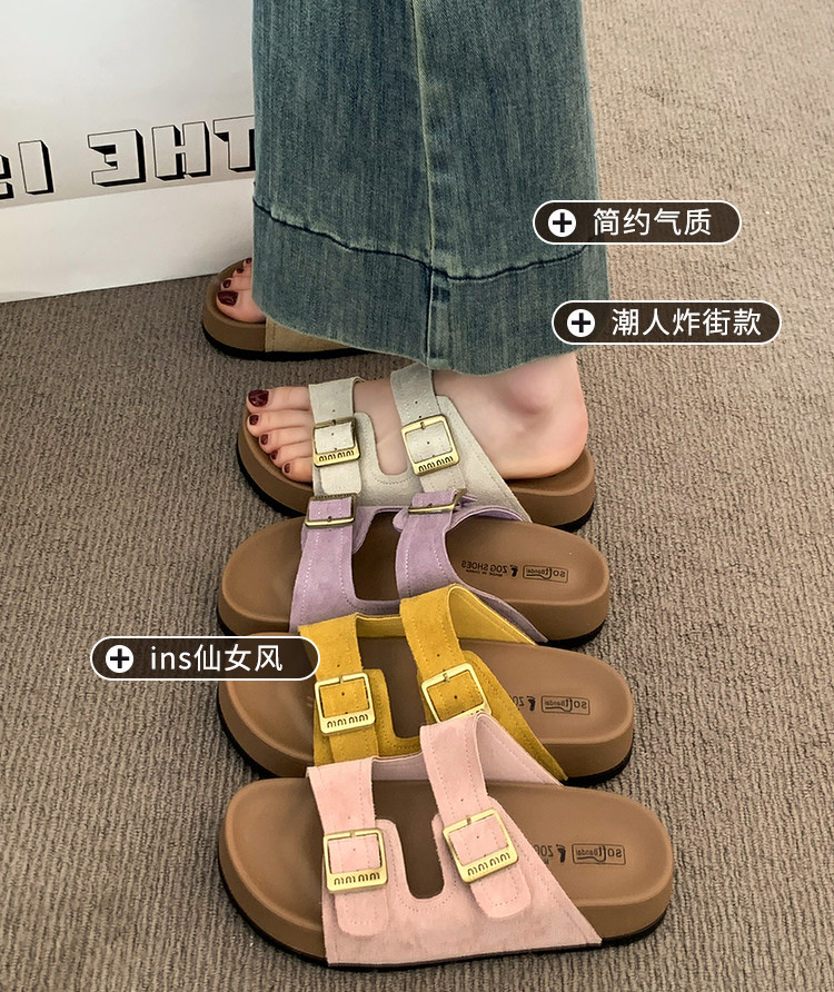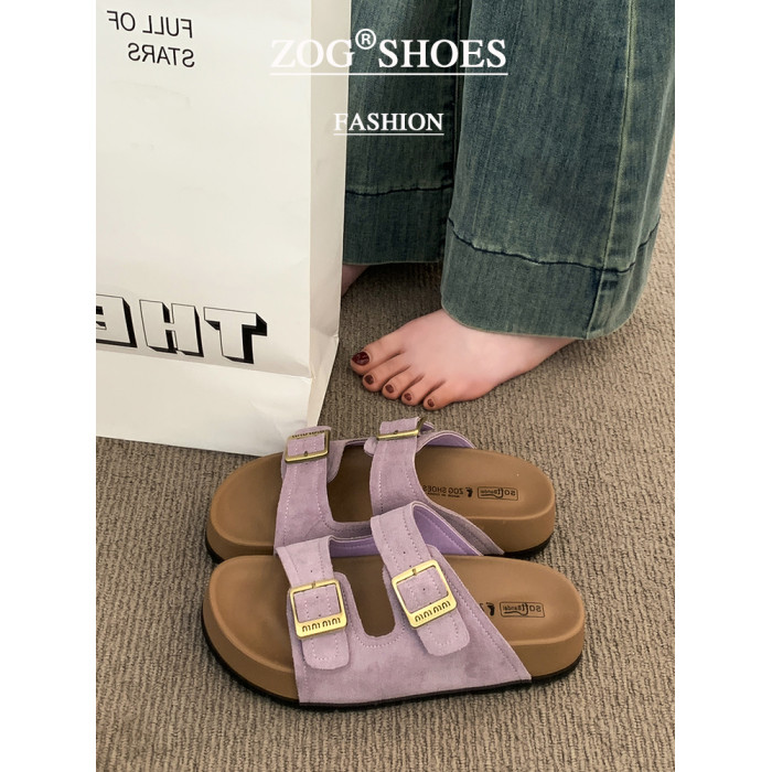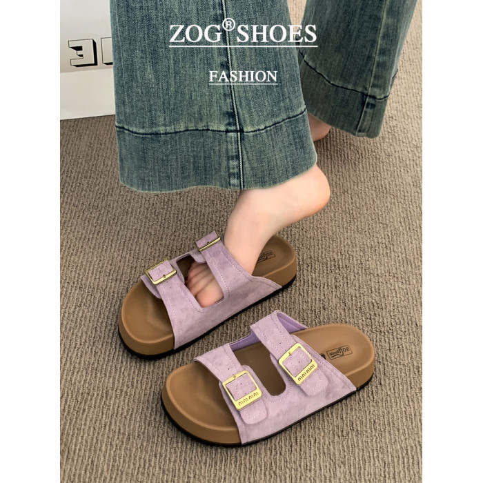 厚底拖鞋女夏外穿2025新款超火高級感沙灘一字拖紫色勃肯鞋涼拖鞋